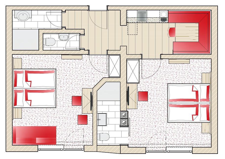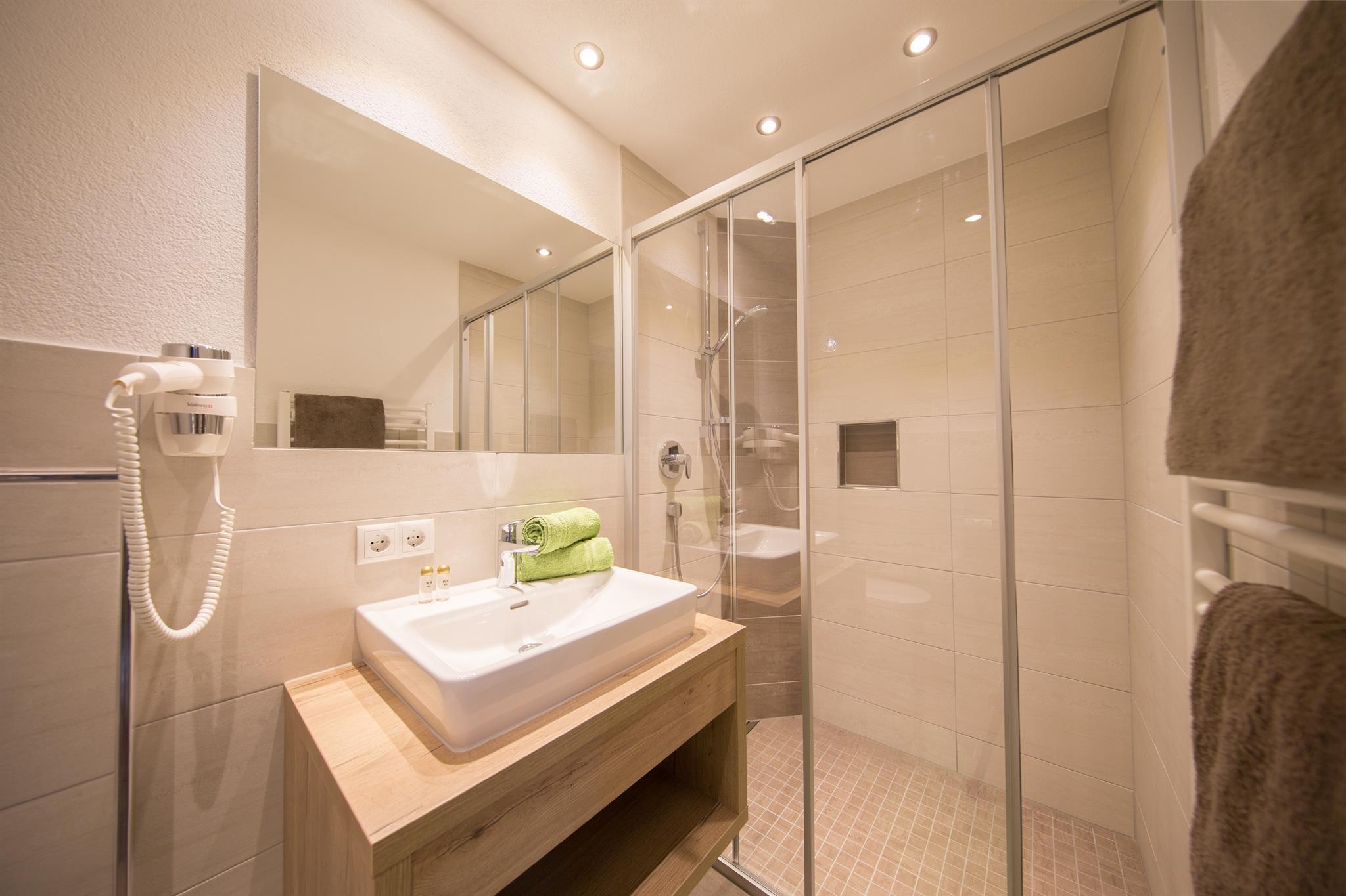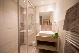 APPARTEMENT V. Unser neu errichtetes Appartement Garten“ besteht aus: 1 Doppelzimmer mit TV und Badezimmer mit Dusche/WC; 1 Doppelzimmer mit TV und Sofa (Schlafsofa für eine weitere Person); voll ausgestattete Küche mit großem Essbereich, Geschirrspüler, Kaffeemaschine, Cerankochfeld, Kühlschrank uvm.; 1 weiteres Badezimmer mit Dusche; separates WC. Genießen Sie die Zeit mit Freunden oder der Familie im Garten. Größe ca. 54 m².
