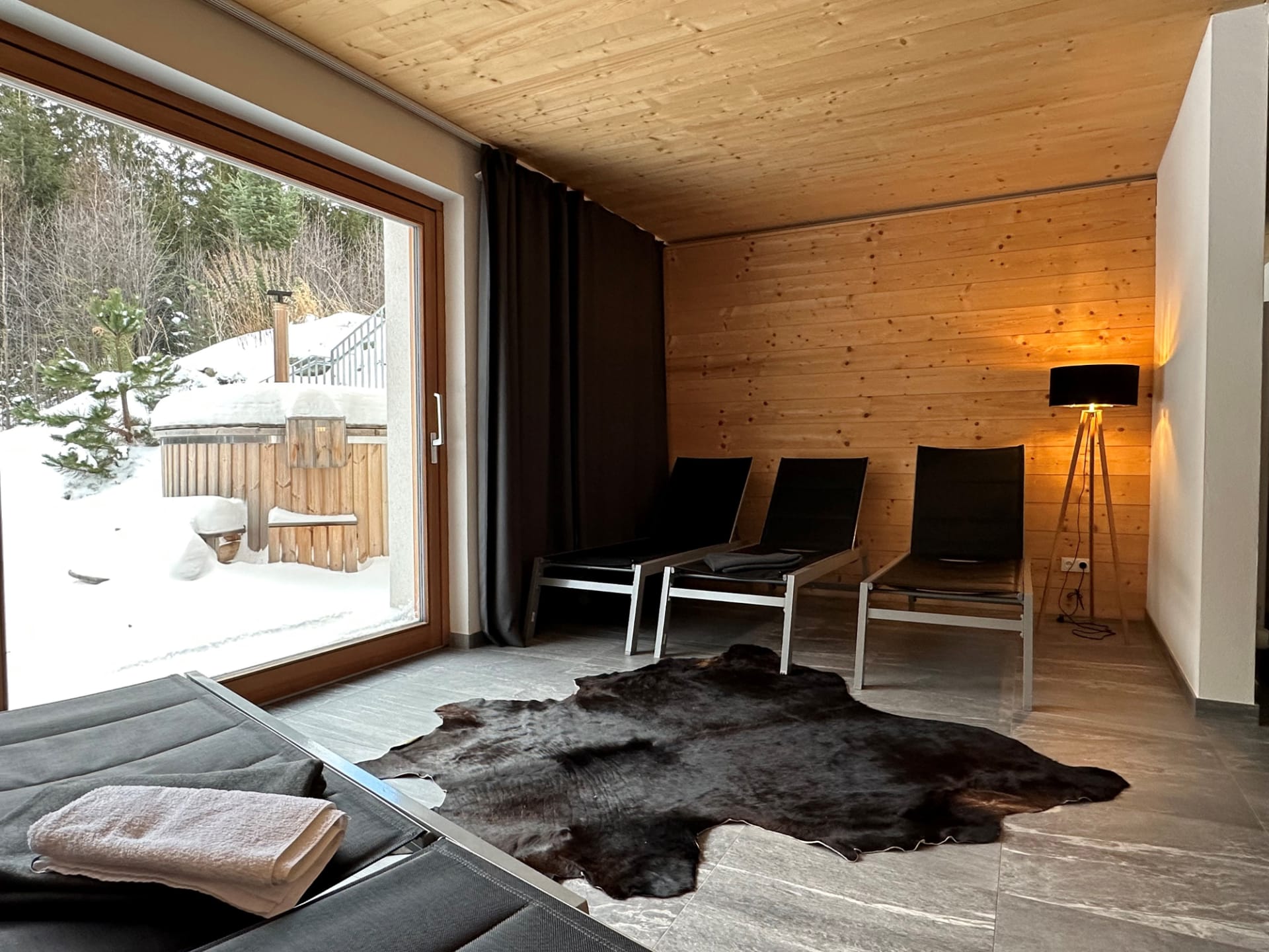 Bettwäsche und Handtücher werden zur Verfügung gestellt. In der unteren Ebene befindet sich eine Sauna mit großzügigem Ruheraum, sowie einem Hot Pot im Außenbereich. Weiters steht Ihnen ein großer Schwimmteich im Anschluss an die Wohnterrasse zur Verfügung. Eingebettet in einem Waldstück mit Aussicht bis weit in das Wiener Becken inmitten der Wexltrails und gleich in der Nähe der Wexlarena mit zahlreichen Attraktionen im Sommer wie im Winter.