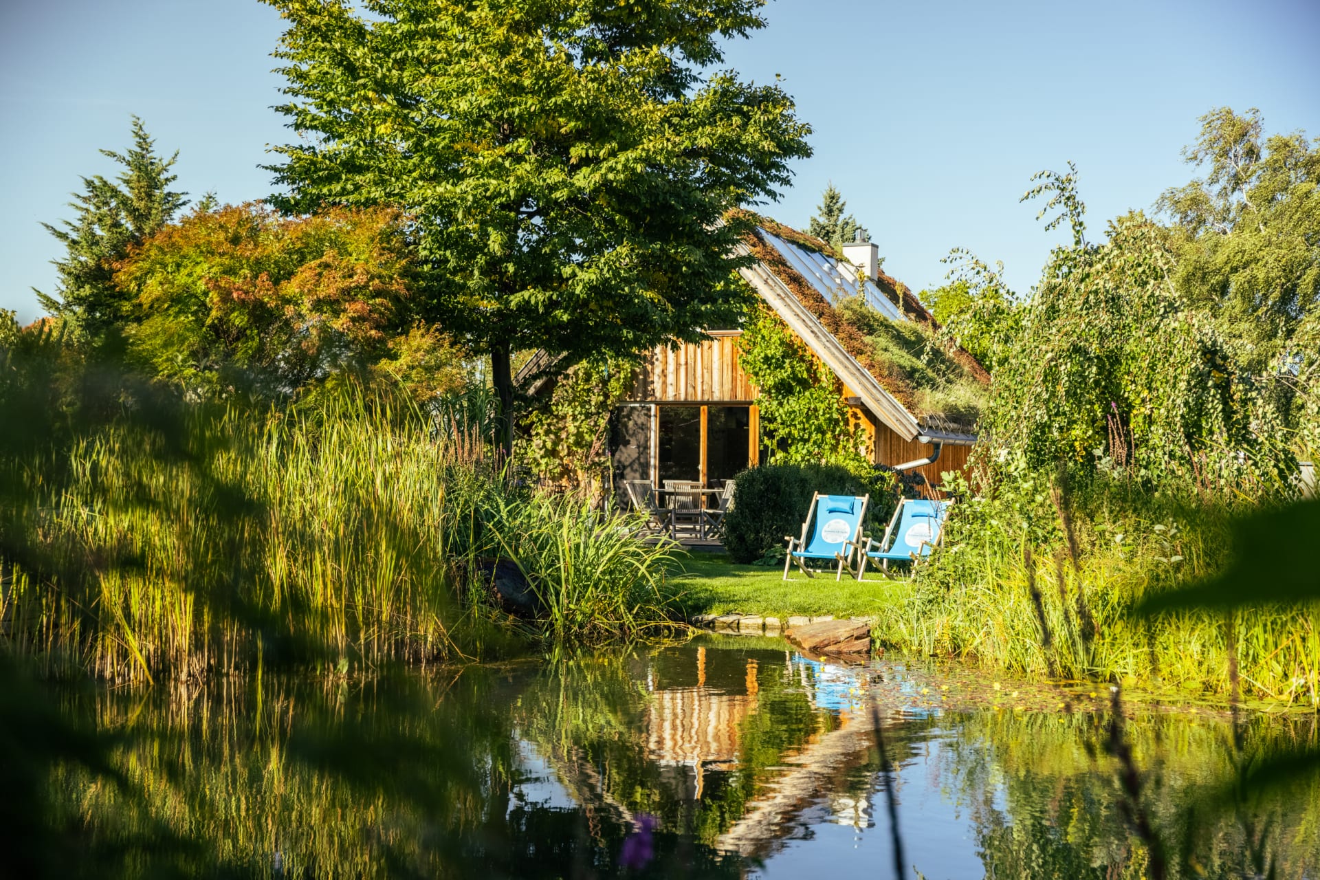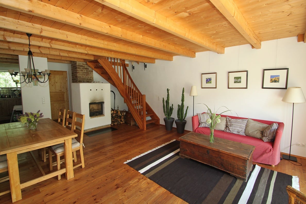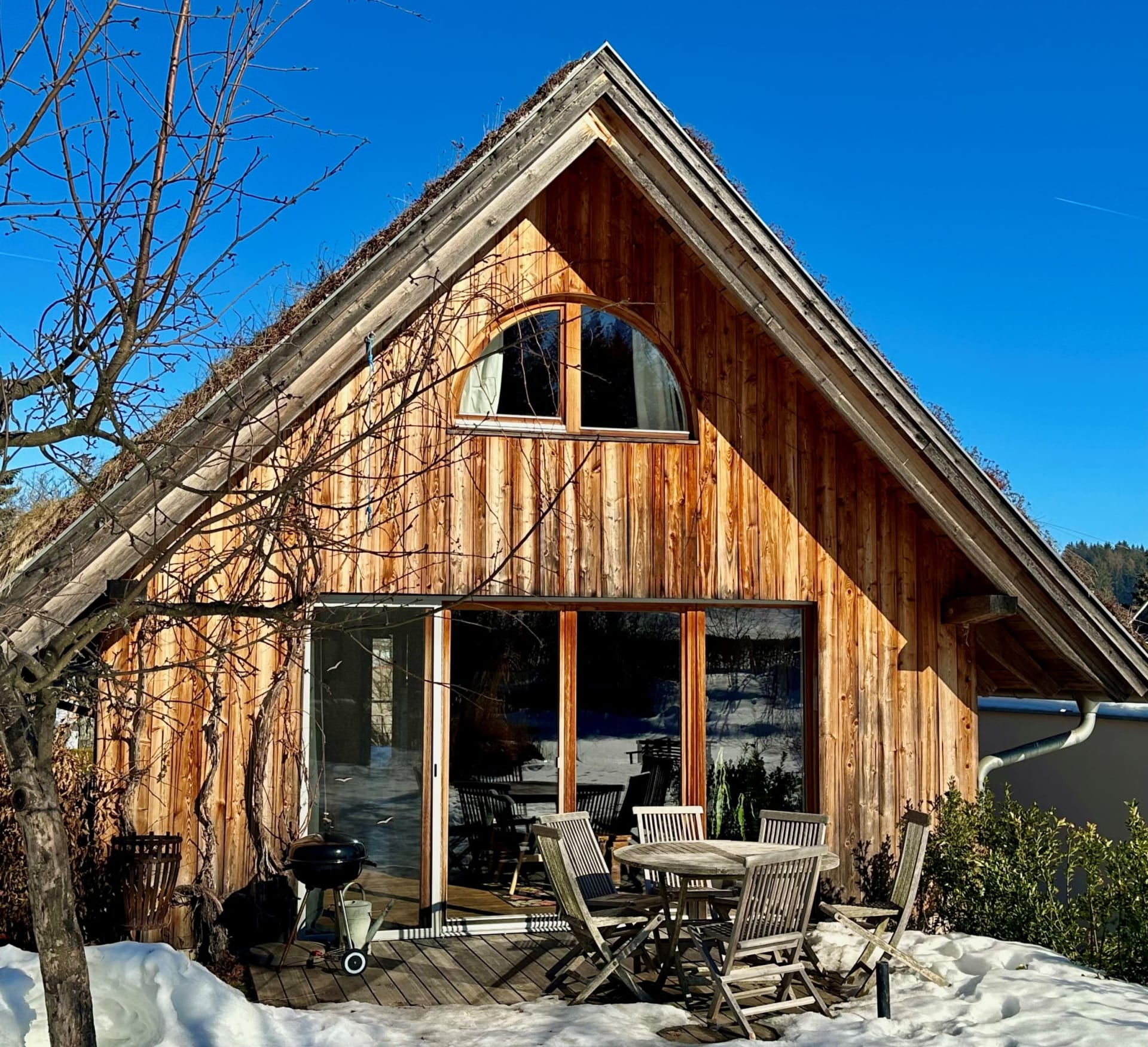 Romantisches Holzhaus mit gediegender Ausstattung - Küche, Badezimmer mit Badewanne/WC, Wohnstube mit Kamin, 2 Schlafzimmer (1 Zimmer mit Doppelbett, 1 Zimmer mit 4 Einzelbetten), Internet, Terrasse und Garten, großer Schwimmteich, sonnige Lage am Ortsrand- gleich neben Kinderschiland. Seit 2014 gehört unser Ferienhaus zu den Genießerzimmern NÖ dazu.