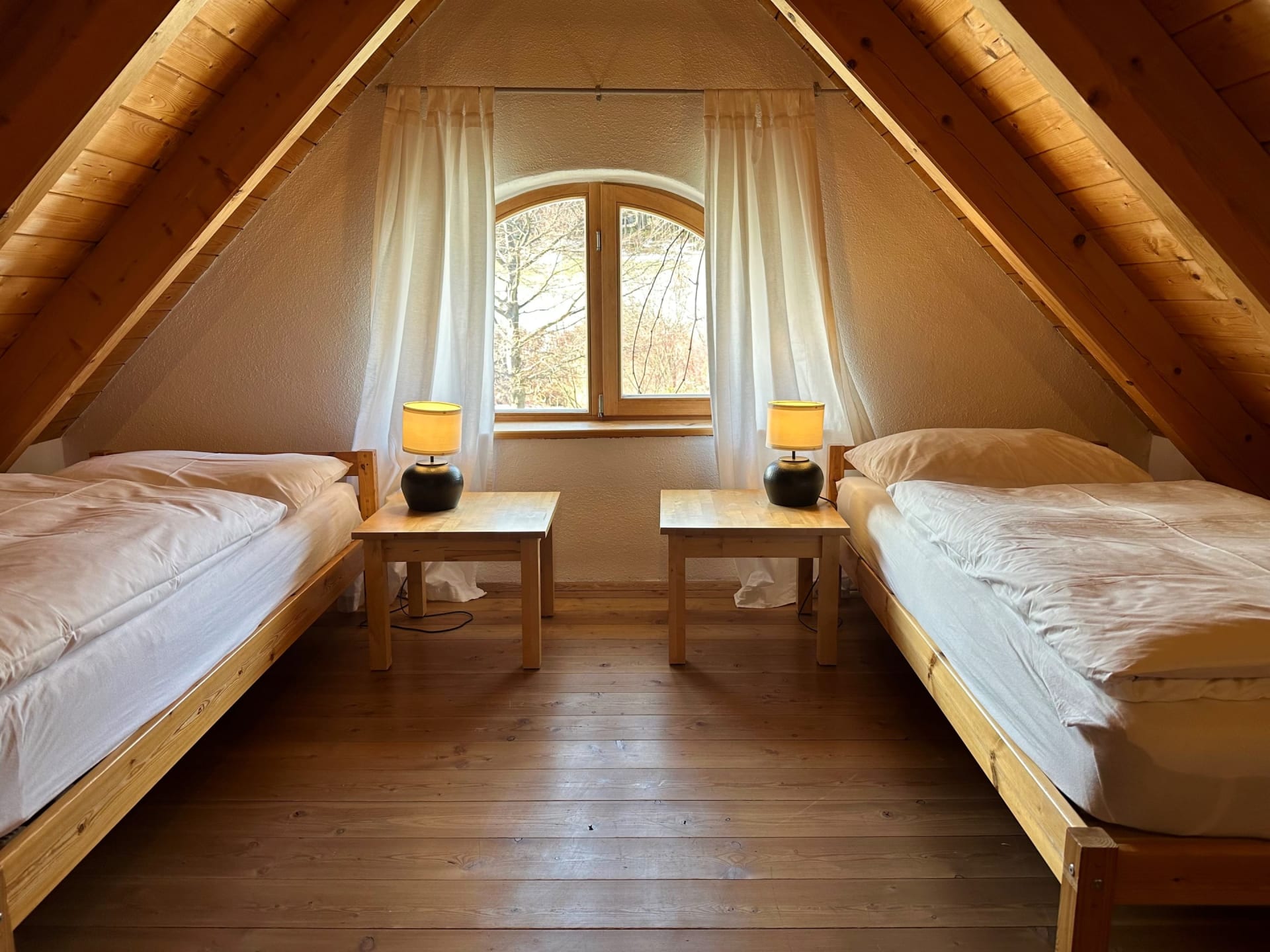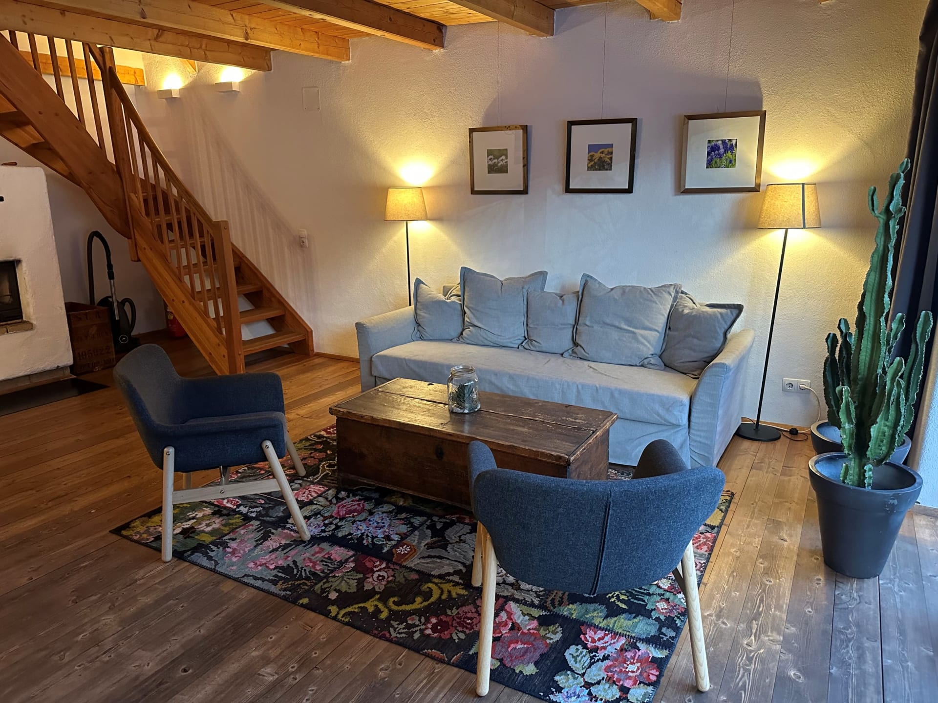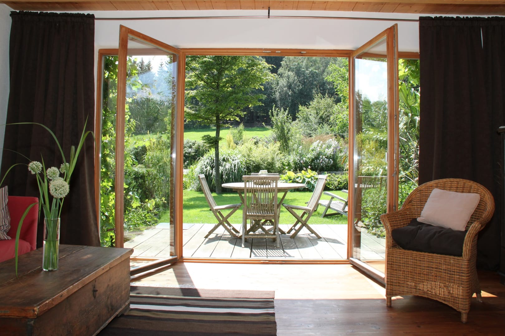 Romantisches Holzhaus mit gediegender Ausstattung - Küche, Badezimmer mit Badewanne/WC, Wohnstube mit Kamin, 2 Schlafzimmer (1 Zimmer mit Doppelbett, 1 Zimmer mit 4 Einzelbetten), Internet, Terrasse und Garten, großer Schwimmteich, sonnige Lage am Ortsrand- gleich neben Kinderschiland. Seit 2014 gehört unser Ferienhaus zu den Genießerzimmern NÖ dazu.