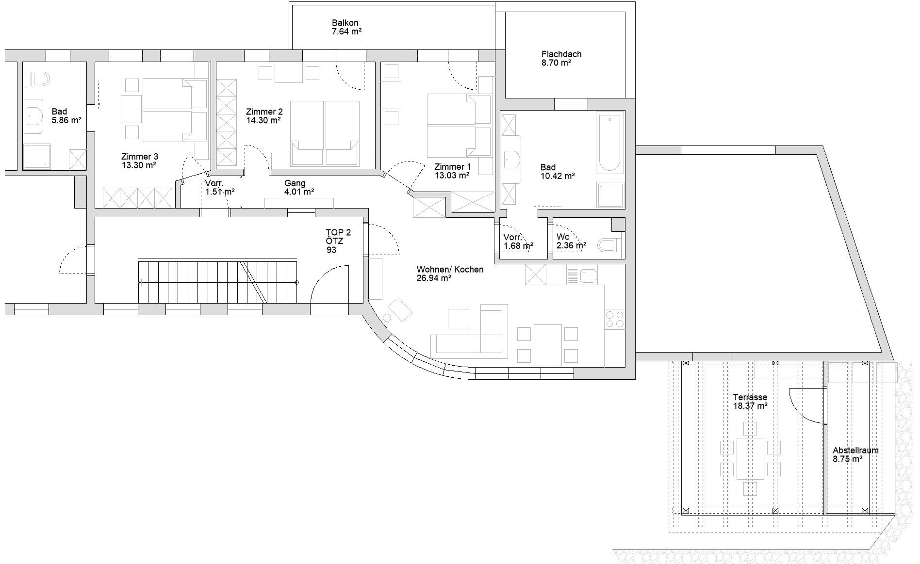APART JOVE-Ötz (ca. 94m²) besteht aus 3 Doppelzimmern eines davon mit Dusche/WC, einem Badezimmer mit Dusche, Badewanne und Doppelwaschtisch, 1 separates WC,  voll ausgestattete Wohnküche (4-Plattenherd, Backofen, Geschirrspülmaschine inkl. Tabs, Kühl- und Gefrierschrank, Wasserkocher, Eierkocher, Toaster, Hand- und Stabmixer, Kaffeevollautomat und Geschirrtücher.), Sat-TV. Unser Holzkohlegrill lädt auf der überdachten Terrasse und der kleinen südseitig, gelegenen Liegewiese zu Grillabenden ein.
