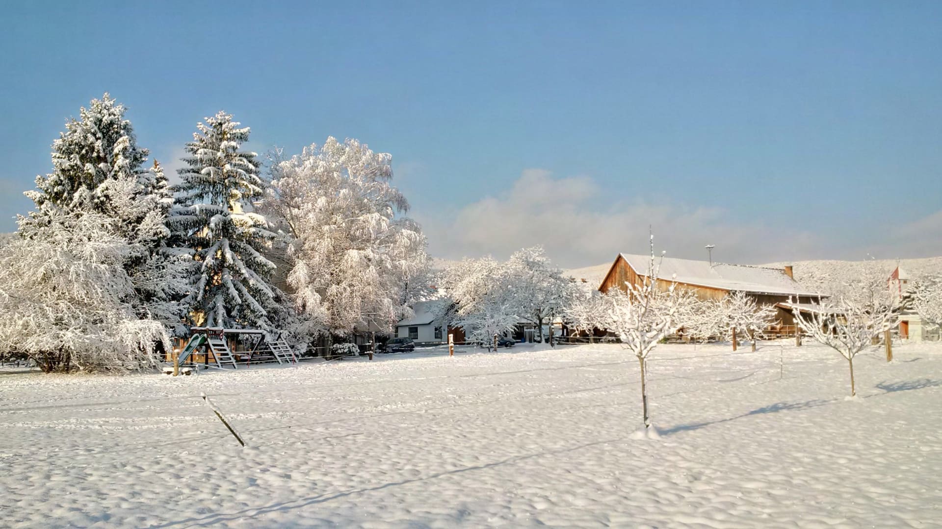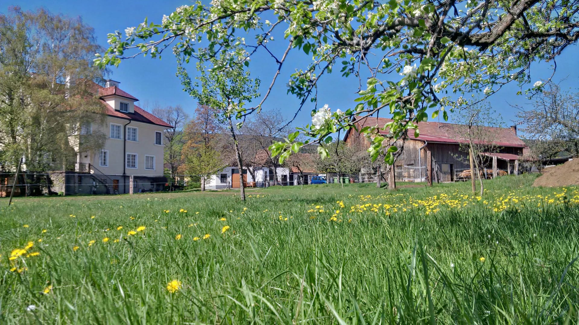 Unser Hof liegt zentral im Ort und ist von Wiesen und Gärten umgeben.