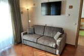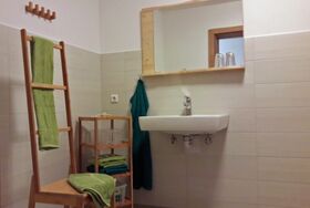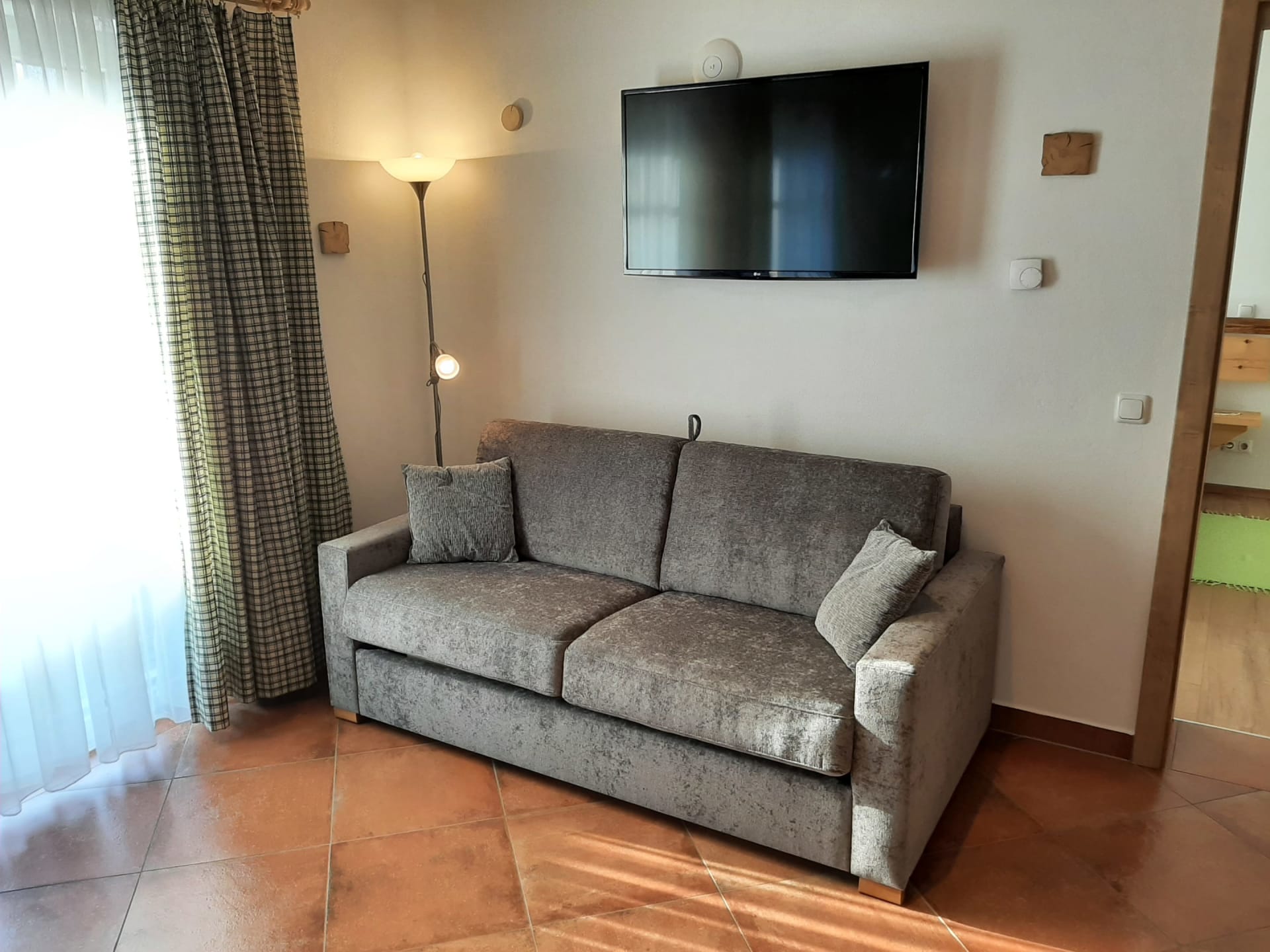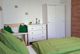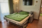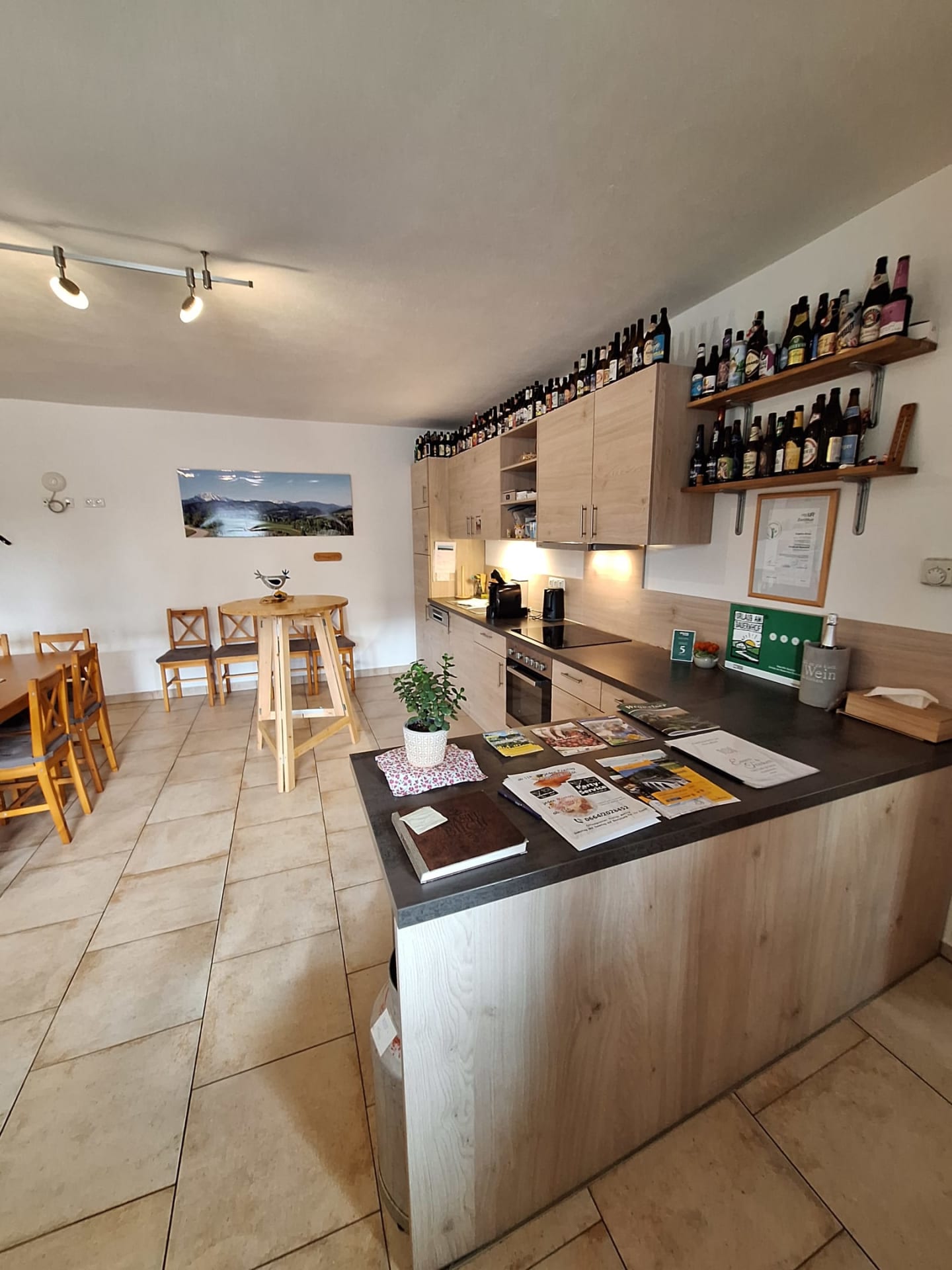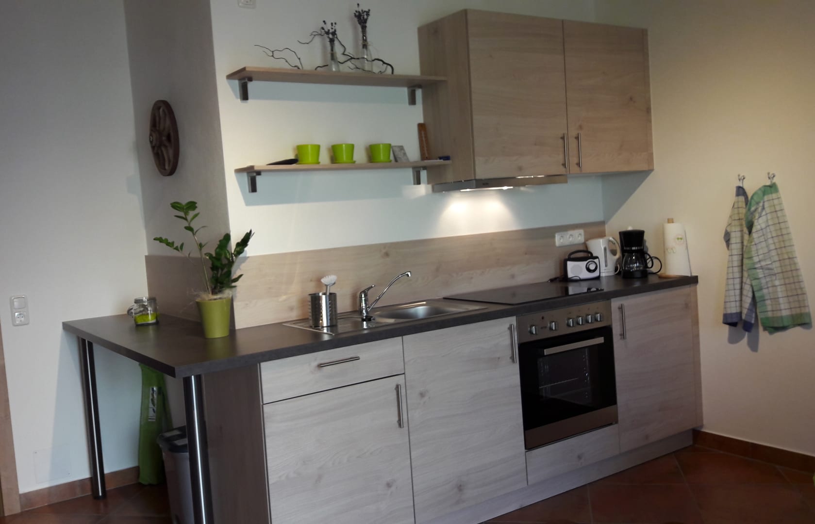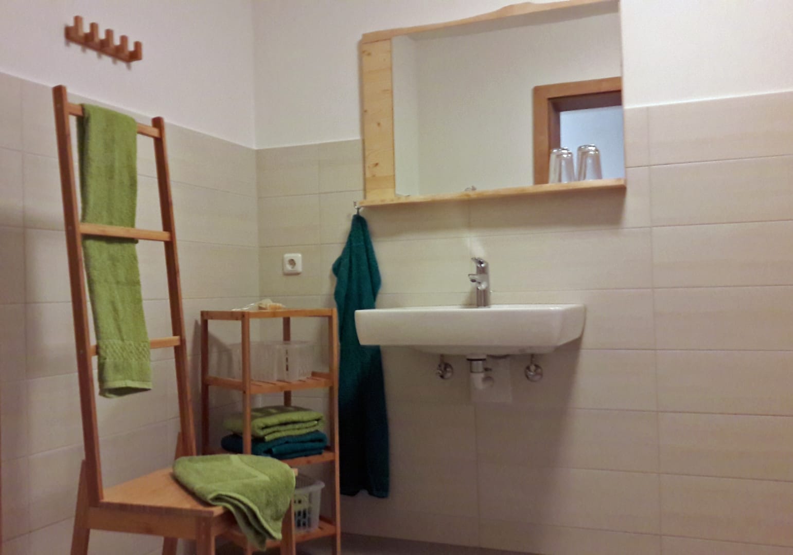 Ausgestattet mit Vorraum, WC und Bad getrennt und barrierefrei, Wohnraum mit Küchenblock (Unterbau-Kühlschrank mit Gefrierfach , E-Herd mit Backrohr, Kaffeemaschine, Teekocher, Abwasch) Sitzecke, ausziehbares Sofa, TV und Wlan, Schlafzimmer mit Doppelbett. Die Arbeitsflächen und Ausstattung der Küche befinden sich aber in Normalhöhe (Ausnahme Kühlschrank).