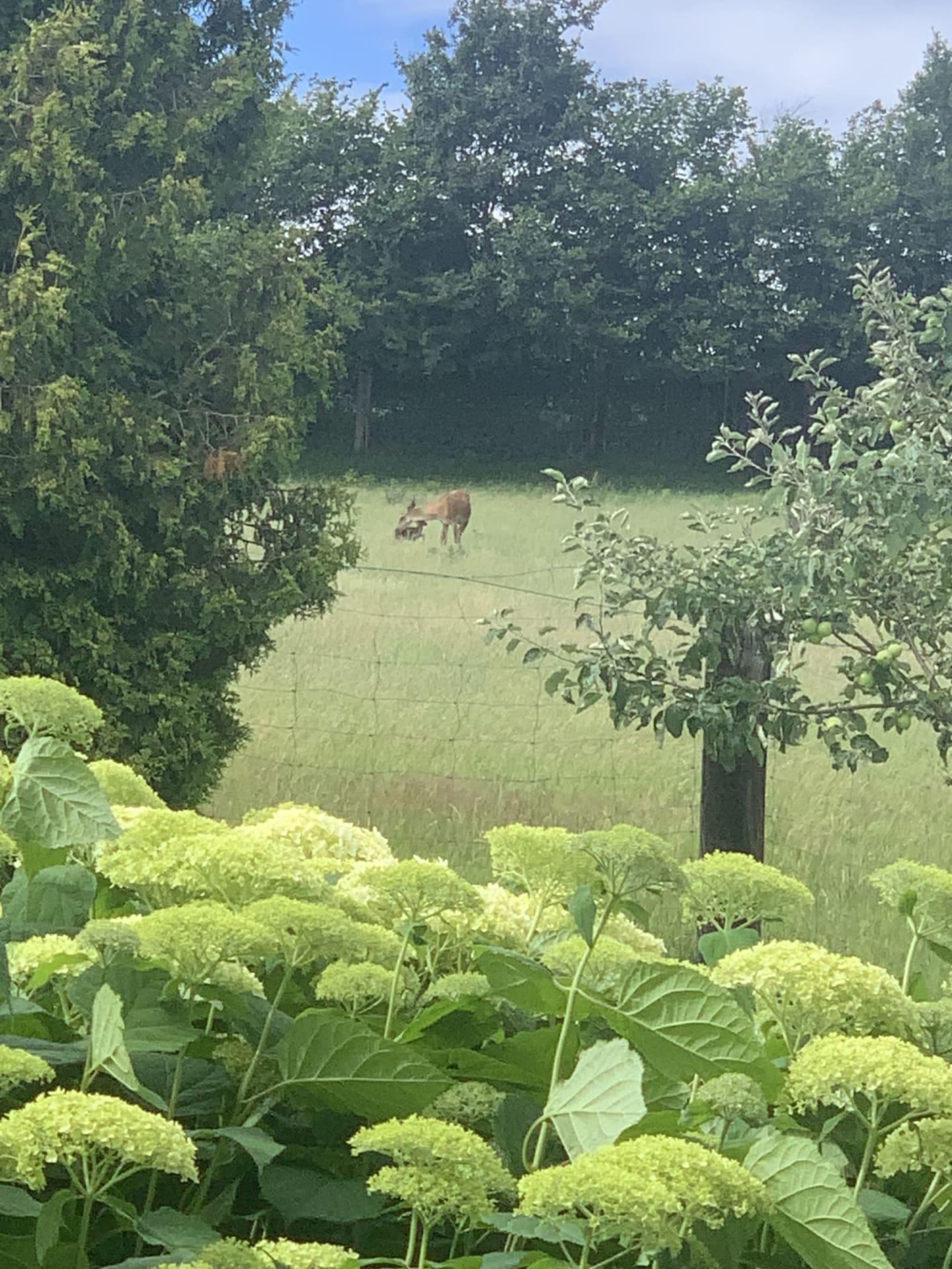 Der Hof liegt sehr idyllisch umgeben von Wald und Wiesen. Bei Ihrer Ankunft werden Sie gleich die Dam-und Rothirschgehege sehen oder es begrüßt Sie schon unsere Laufentenschar.