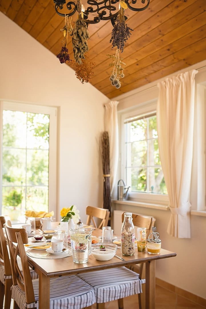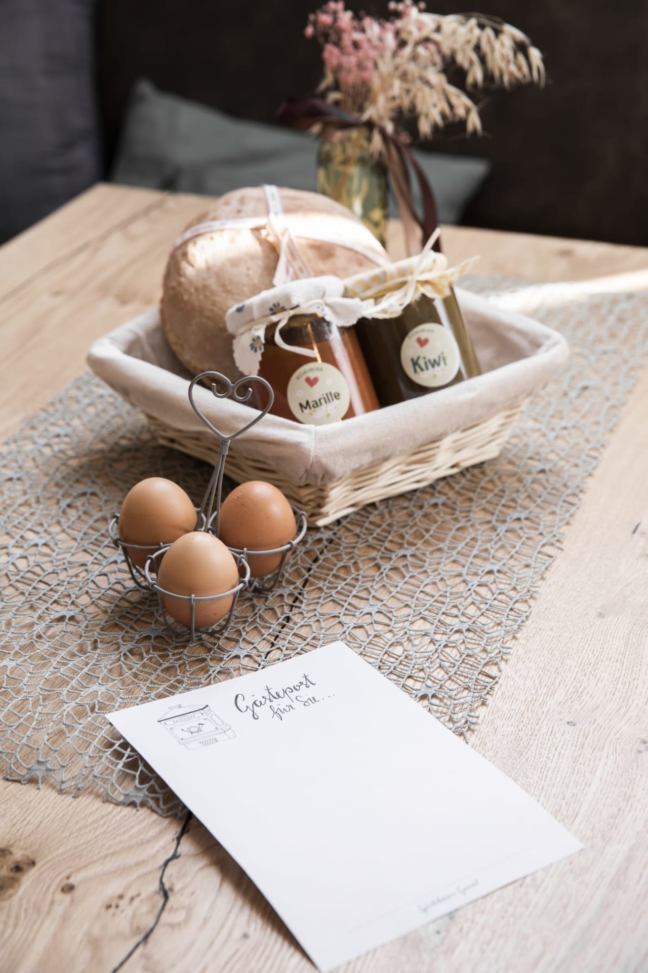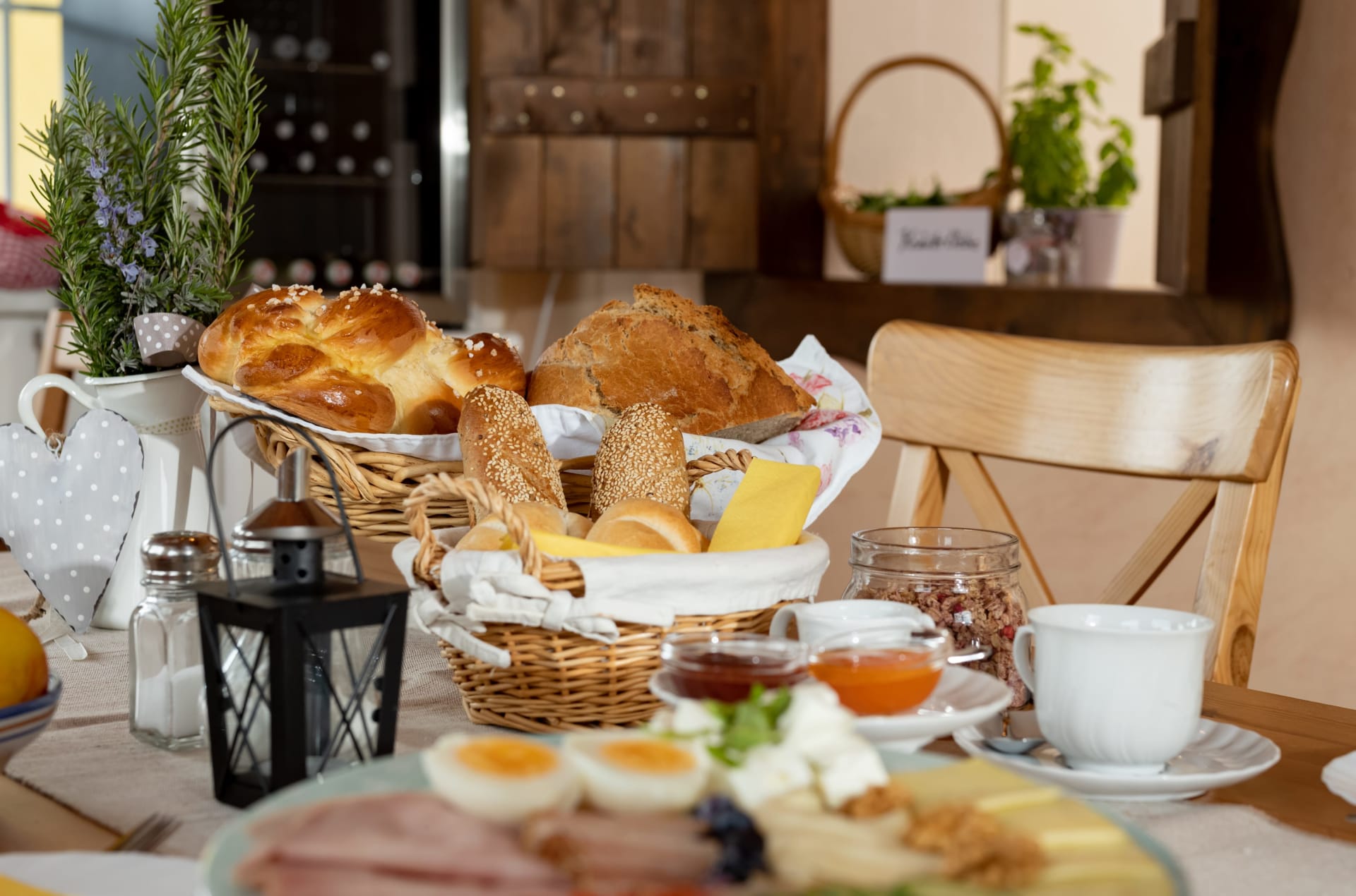 An einem schön gedeckten Tisch, nach dem Motto das Auge isst mit, kann der Tag für Sie gleich angenehm beginnen. Gerne sind wir bereit auf Ihre Frühstücksvorlieben einzugehen, natürlich auch vegetarisch oder vegan. Wir verwenden Produkte aus der Region, je nach Saison bzw. vom eigenen Hof.