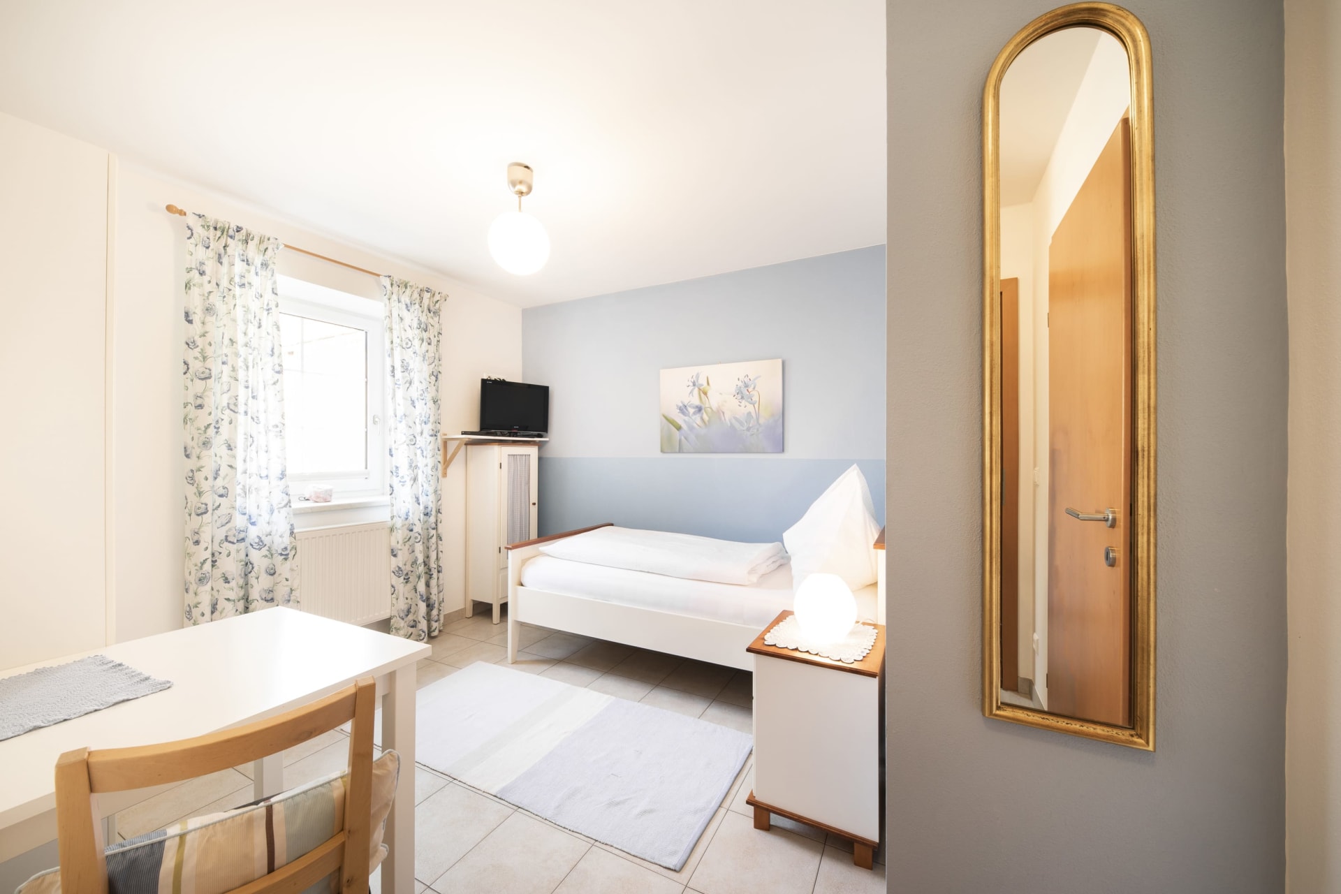 schönes geräumiges, ruhiges Einzelzimmer mit DU/WC, Sat-TV, der Ausblick richtet sich in den Innenhof