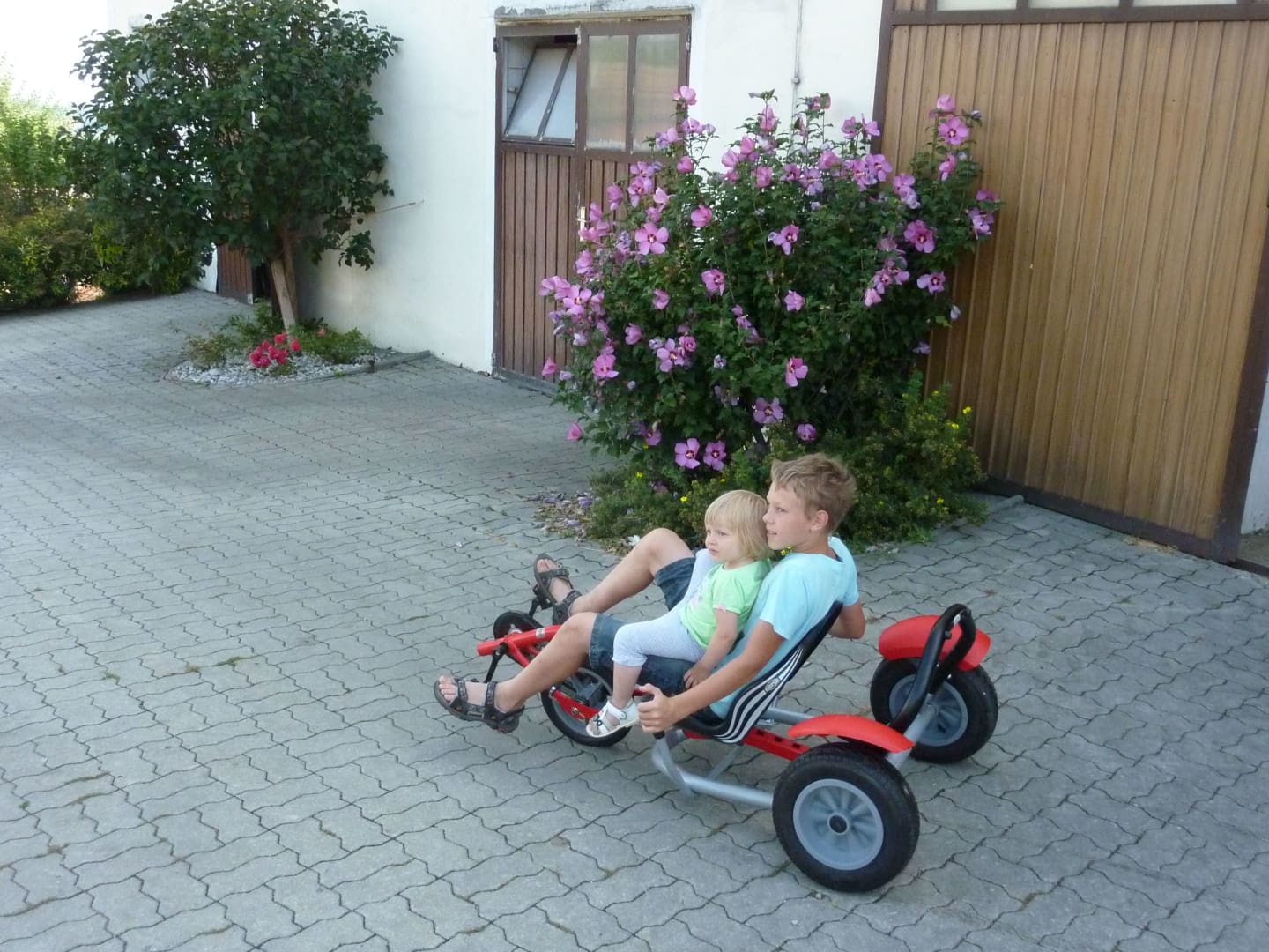 Kinder haben bei uns am Hof einen neuen Spielplatz mit Schaukel, Rutsche, Sandkiste, Federwippe und Trettraktor sowie ein Trampolin, Dreirad und ein Balance Bike für Kinder ab 8 Jahre. Eine Fahrt mit einem großen Traktor ist für jedes Kind etwas besonderes.