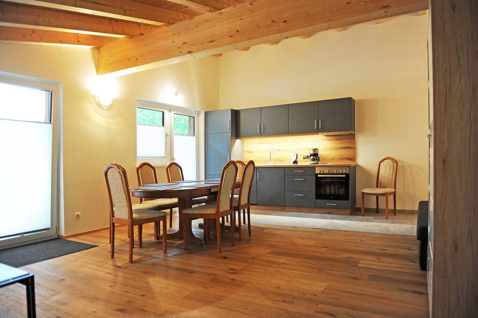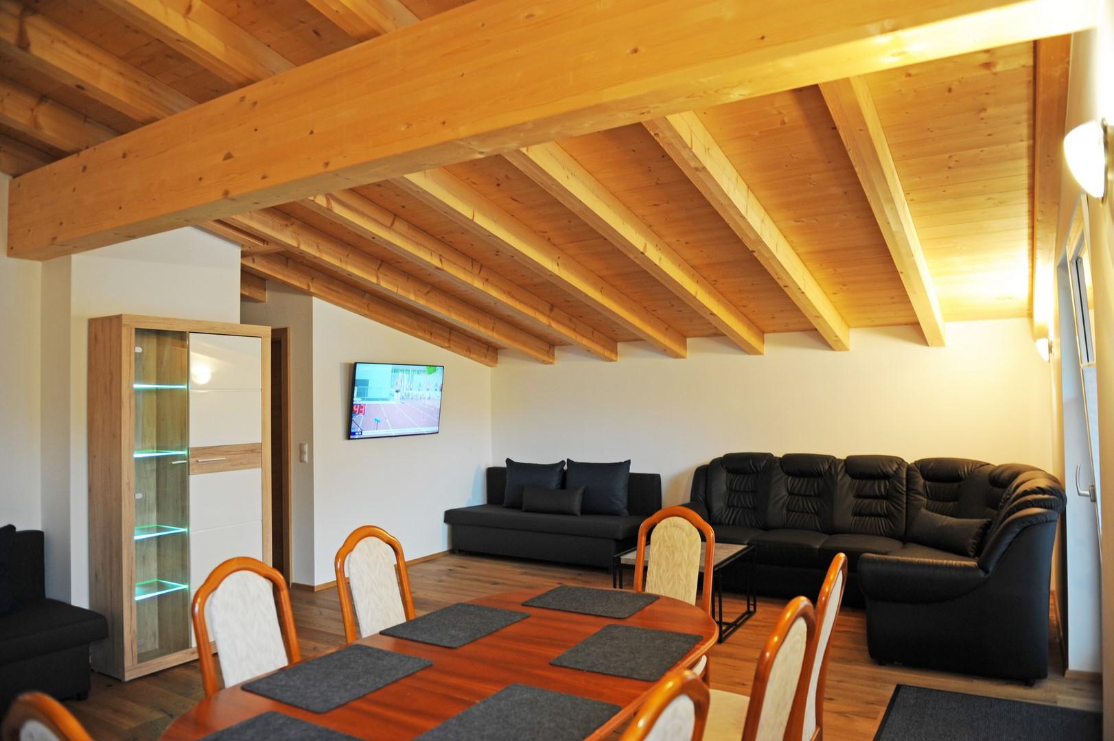 Die Ferienwohnung mit ca. 40 m² befindet sich im 2. Stock und verfügt über: Wohnküche mit mit Kochnische (inkl. Kühlschrank, Mikrowelle, Kaffeemaschine, 2-Plattenherd uvm.) ausziehbares Schlafsofa für 3. und 4. Person; Essbereich; Flachbild TV; 1 separates Doppelzimmer; 1 Badezimmer mit Badewanne und WC; Balkon mit Bergblick