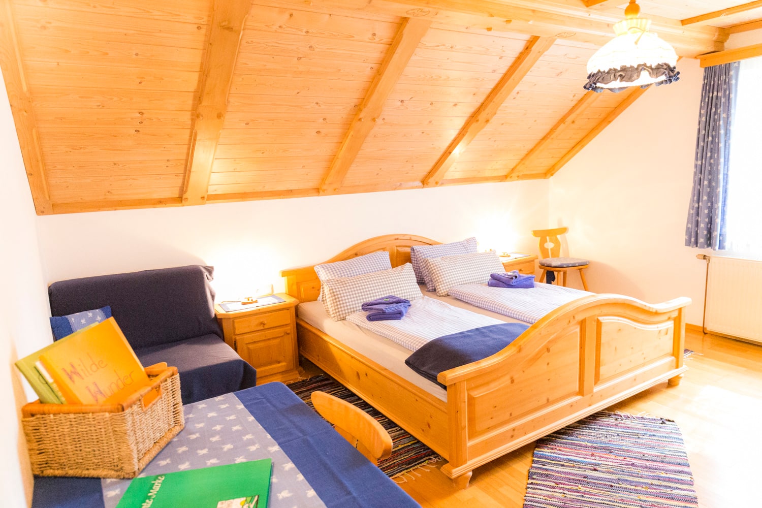Unsere Holzmögel bringen den Charakter des Bauernhauses zur Geltung und laden zur Erholung ein. Um den Eltern auch etwas Ruhe zu ermöglichen bieten wir zusätzlich ein Zimmer mit fließend Warm- und Kaltwasser an, das für Kinder und Jugendliche gerne gebucht werden kann.