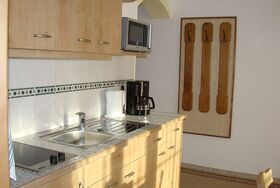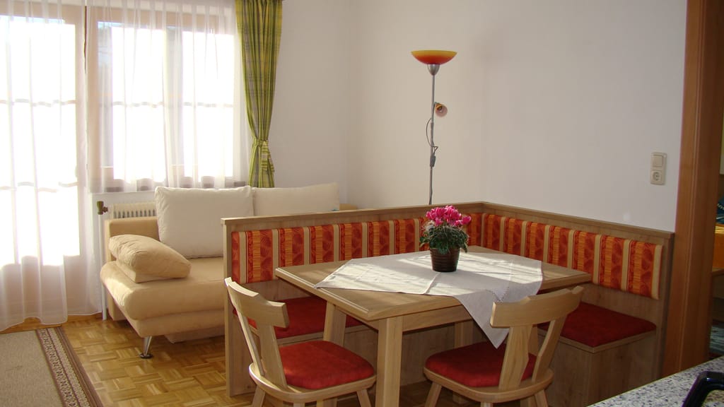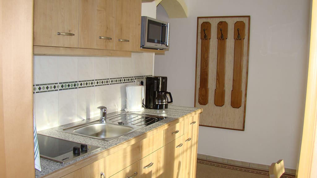 Liebevoll neu eingerichtete 45m2 große Ferienwohnung mit gemütlicher Wohnküche gut ausgestattete Küchenzeile , Schlafzimmer mit Couch , Bad mit abgerennten WC und Balkon gratis W-lan