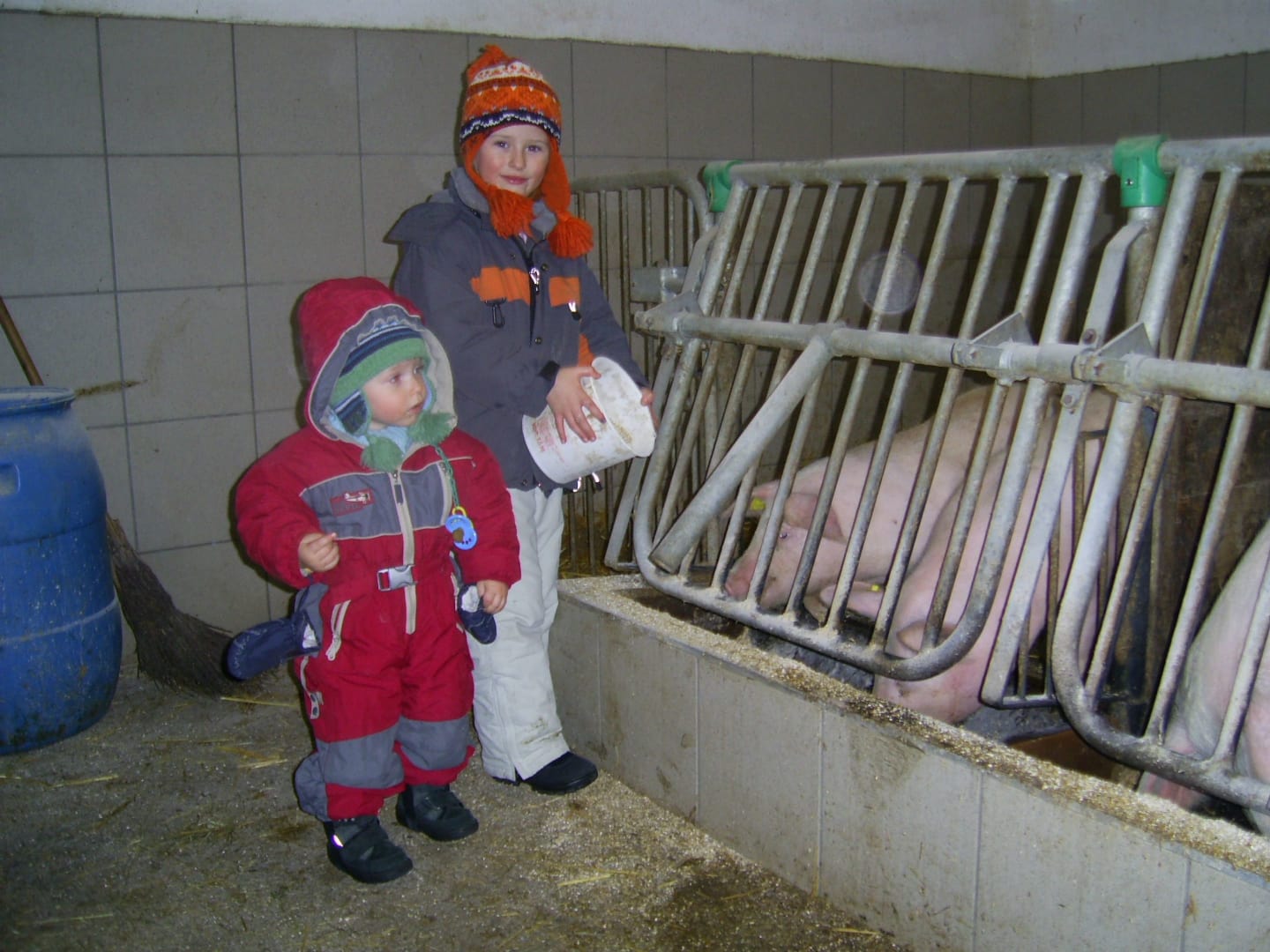 Auf unserem Hof leben Kühe, Kälber, Schweine und Katzen die über jede Streicheleinheit sehr dankbar sind. Unsere Gäste ob Groß oder Klein dürfen sehr gerne beim Füttern der Tiere mithelfen oder das Melken einer Kuh erlernen. (Wo die kleinen Feriengäste mit einer kleinen Überraschung ausgezeichnet werden)