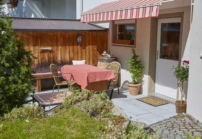 Das barrierefreie, liebevoll eingerichtete Terrassenappartement (ca. 55 m²) mit eigenem Eingang besteht aus 1 Doppelzimmer, 1 Zweibettzimmer,
