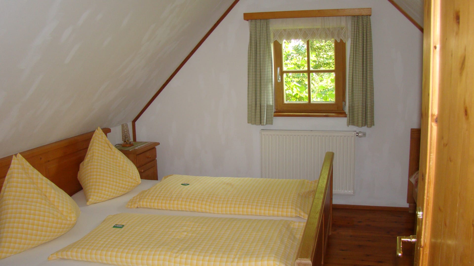 1. Stock: Vorraum Bad/WC, 2 Schlafzimmer mit jeweils 3 Betten.