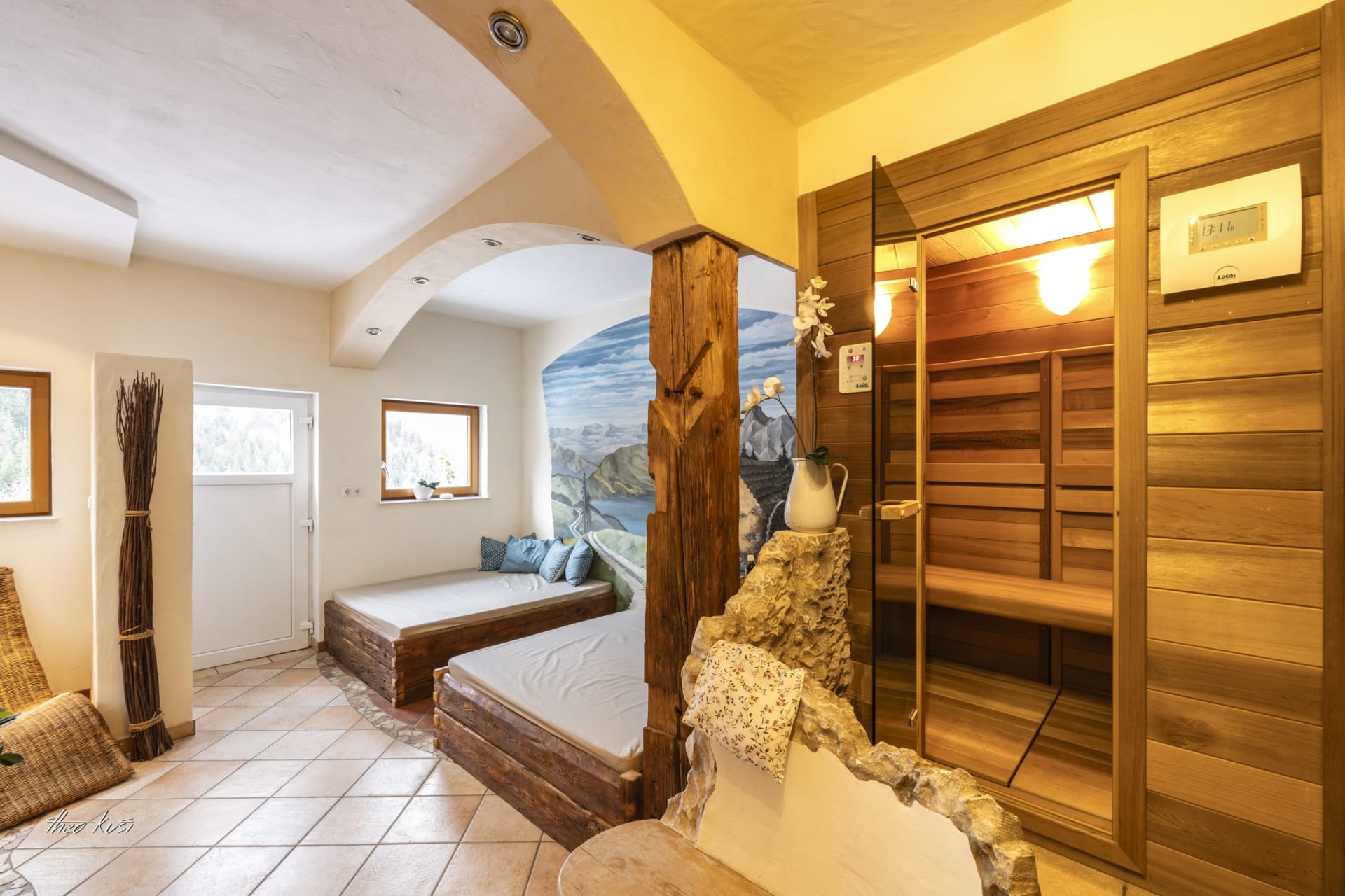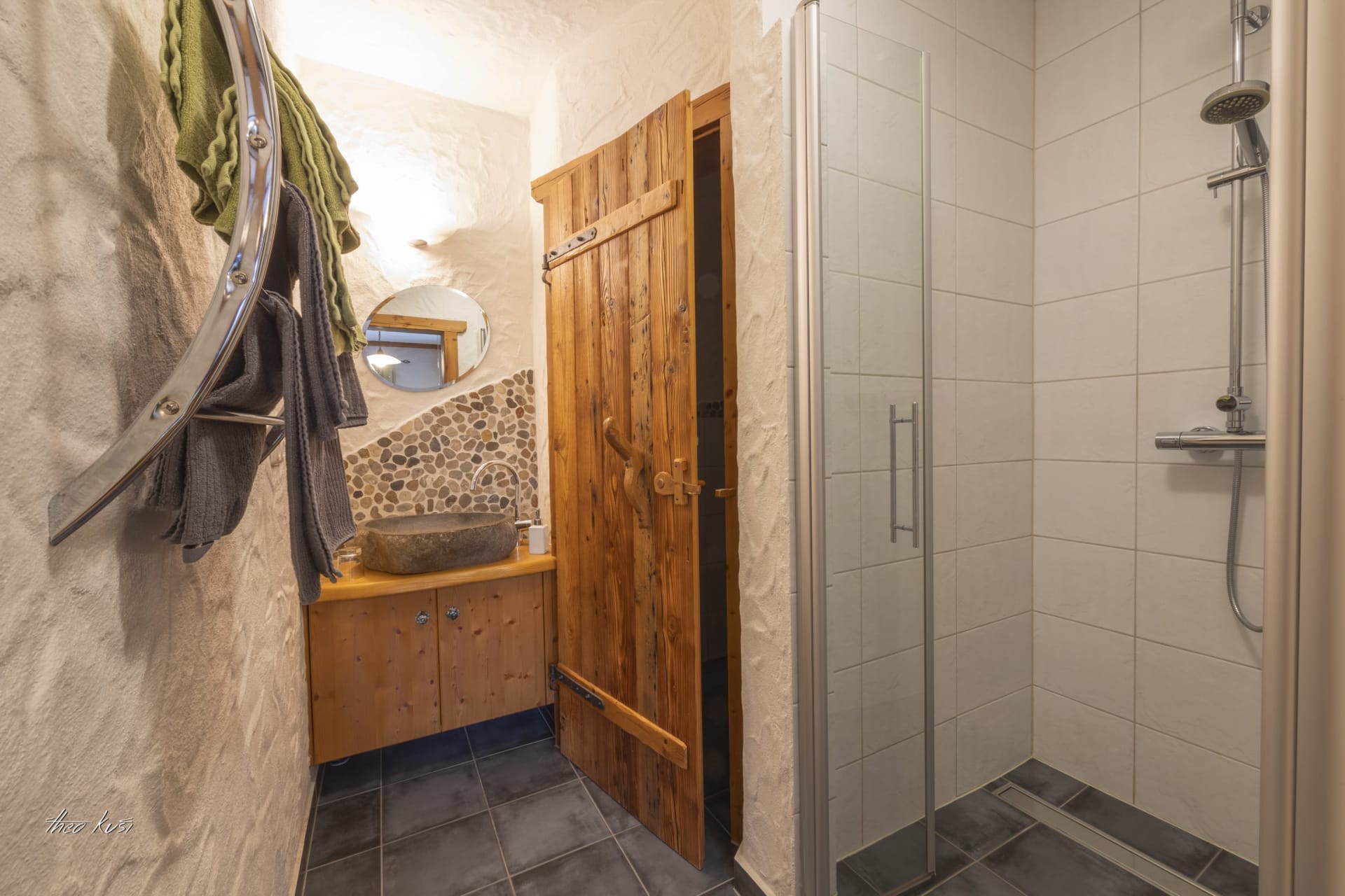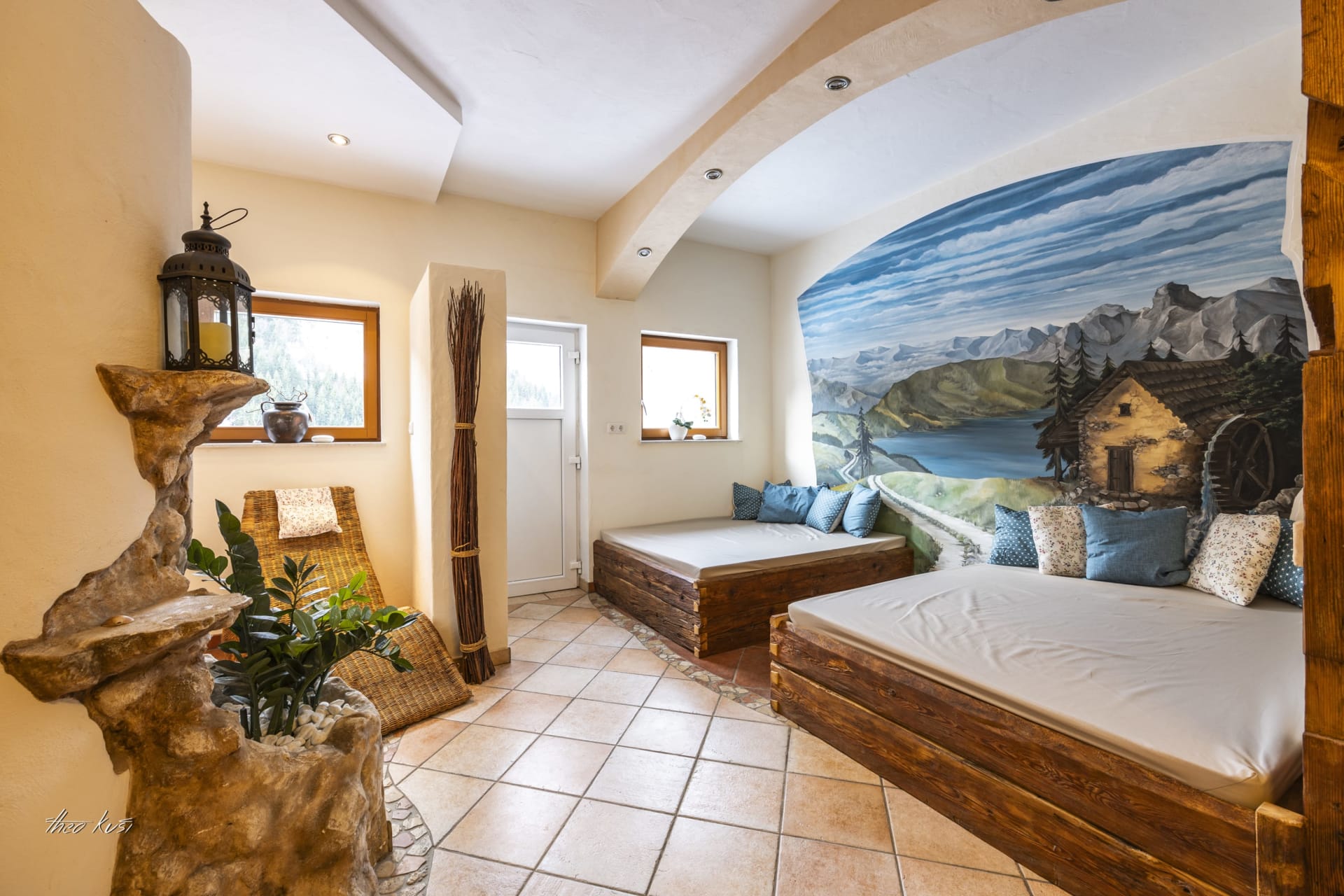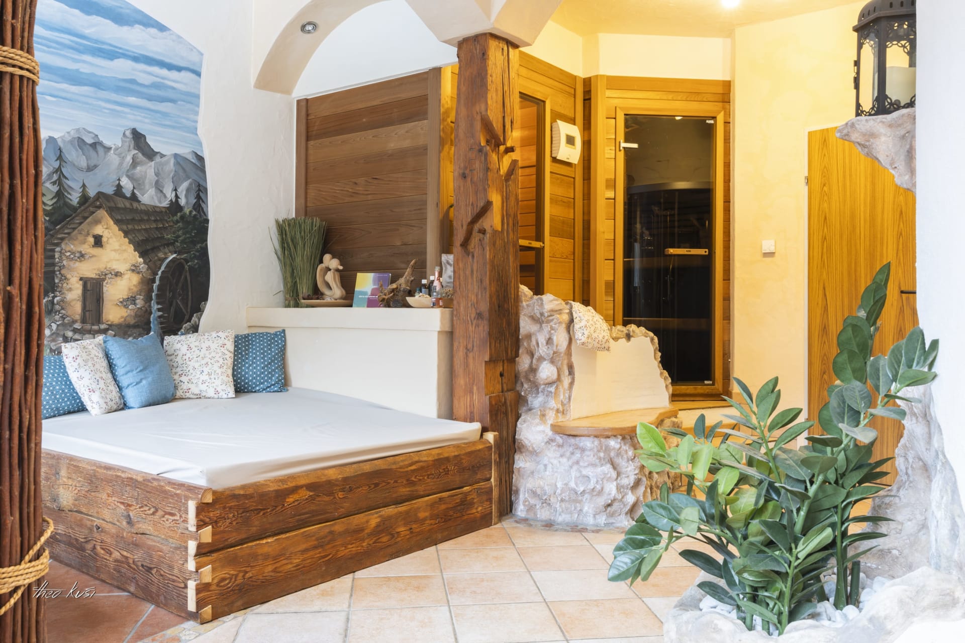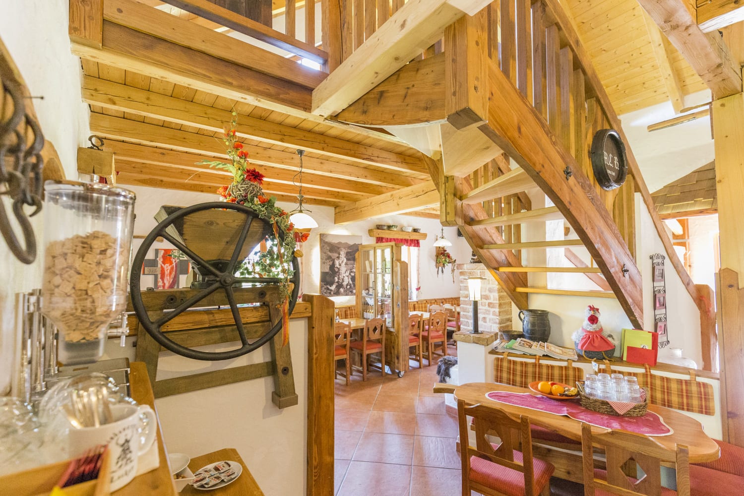 Unser Zottelzimmer bietet Platz für 2 Personen. Das liebevoll eingerichtete Zimmer ist mit Altholzmöbel und Holzfußboden ausgestattet.
