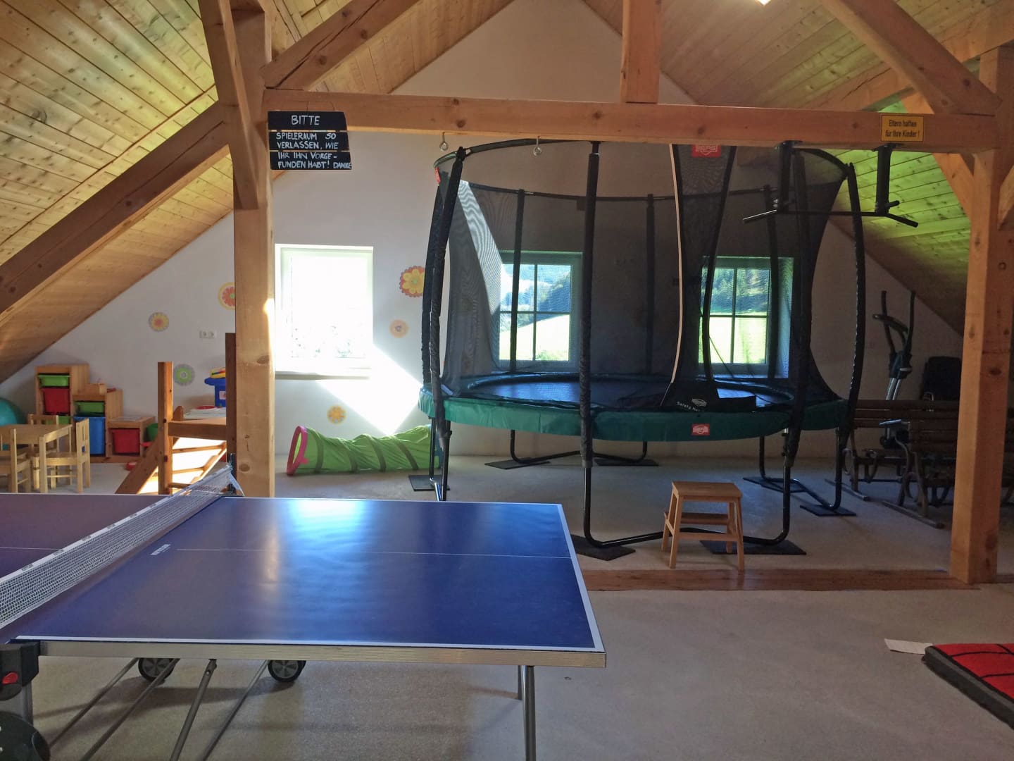* Spielebereich im Dachgeschoß mit Tischtennis, ein Trampolin...