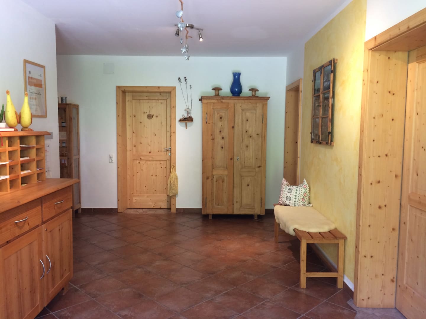 Im Ferienhaus integriert ist ein Stall mit Streicheltieren, welche durch einen Glasboden zweier Ferienwohnungen beobachtet werden können. Daher auch der Name Ferienstadl.