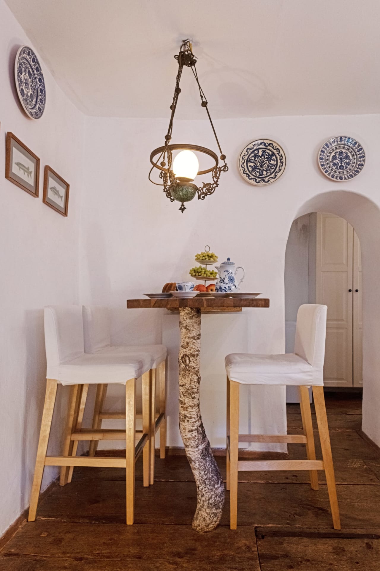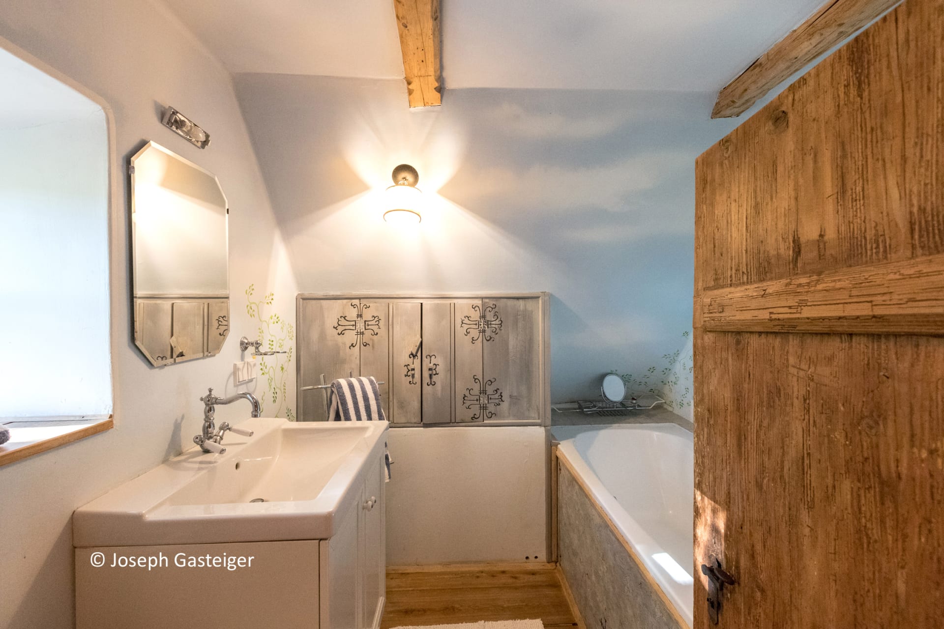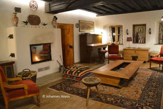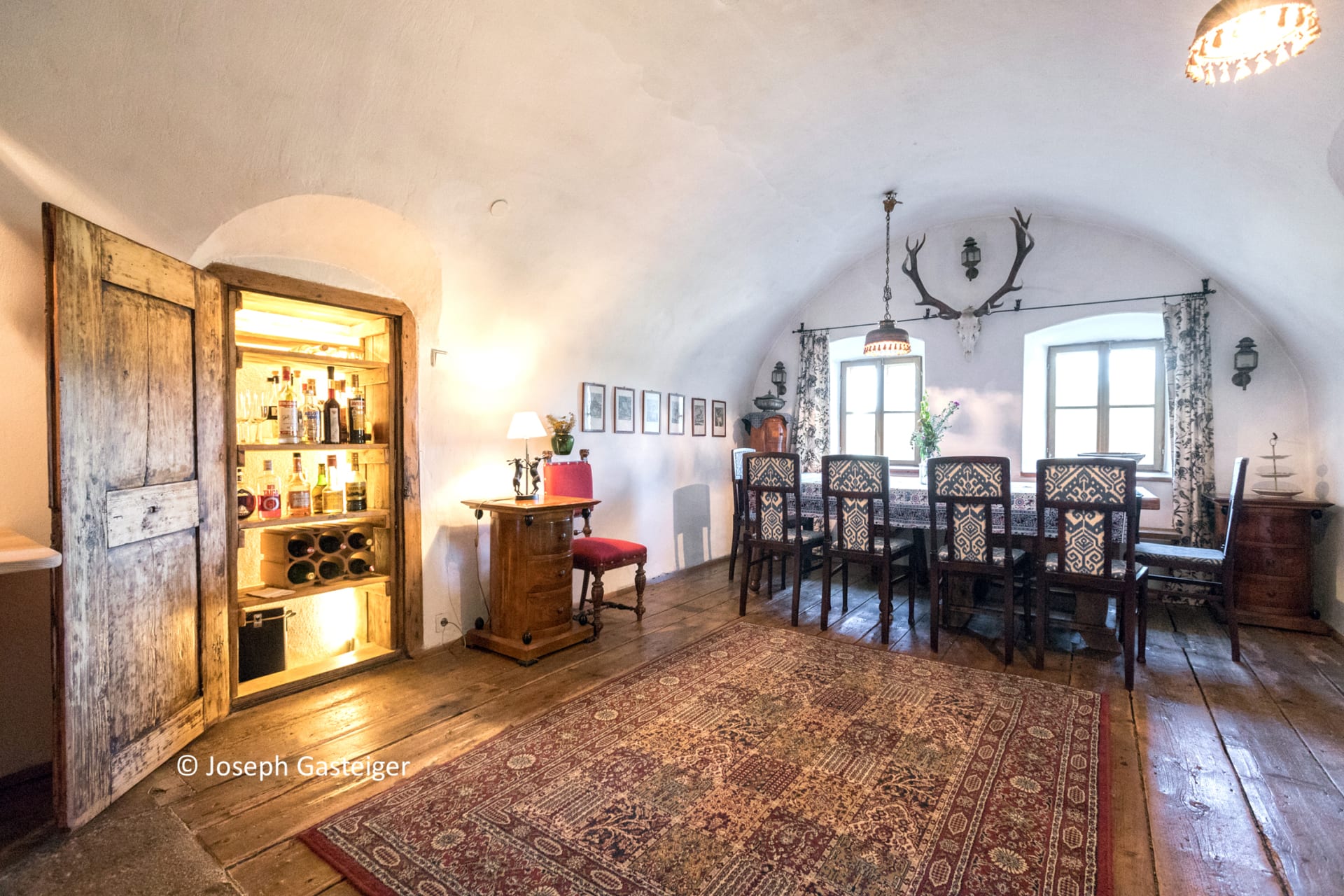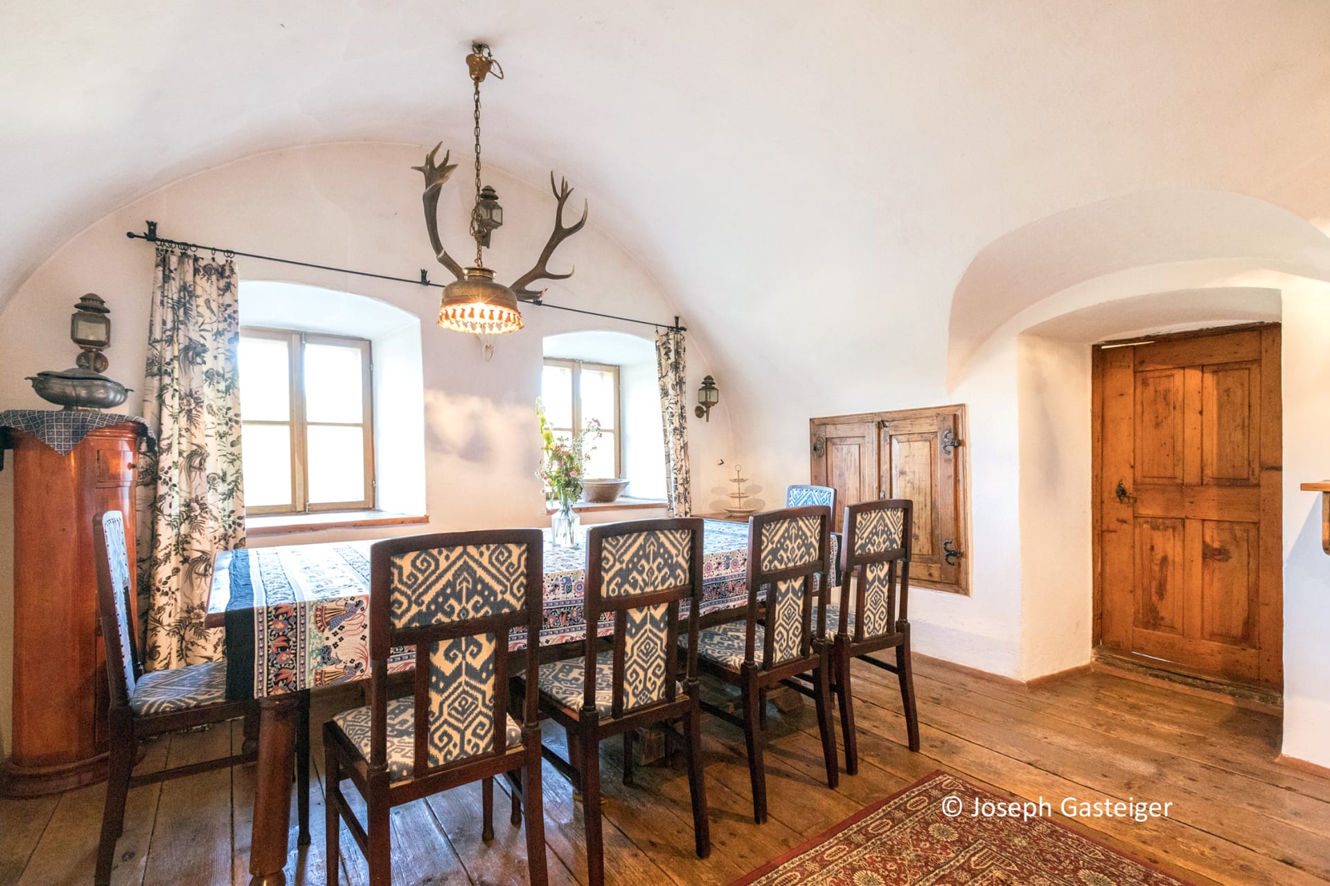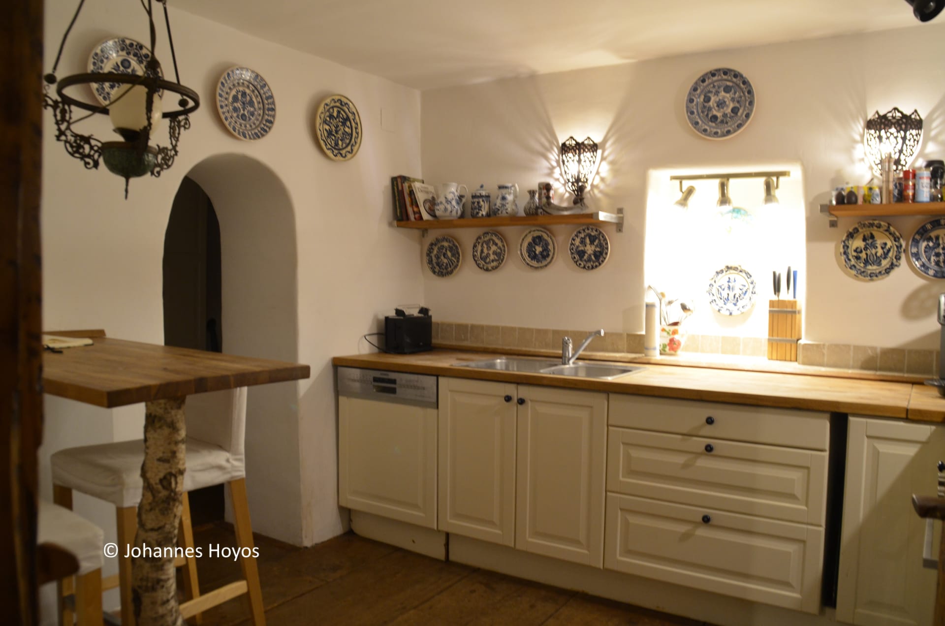 • eine traditionelle Bauernkuchl mit einem funktionierenden Holzofen. Sie dient als Speisezimmer und Aufenthaltsraum.