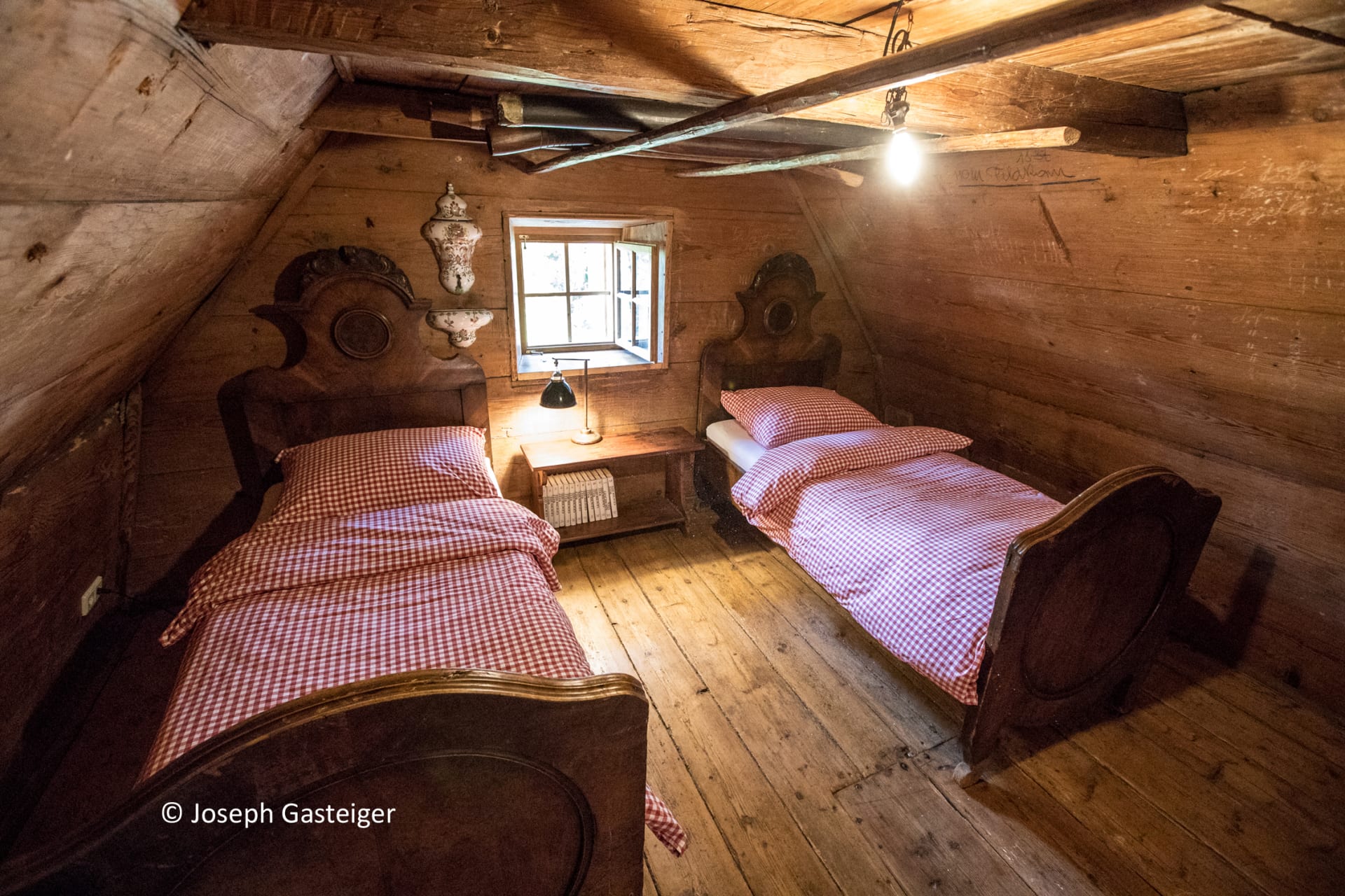 • ein originales Holzschlafzimmer aus dem 17ten Jahrhundert mit zwei Betten.