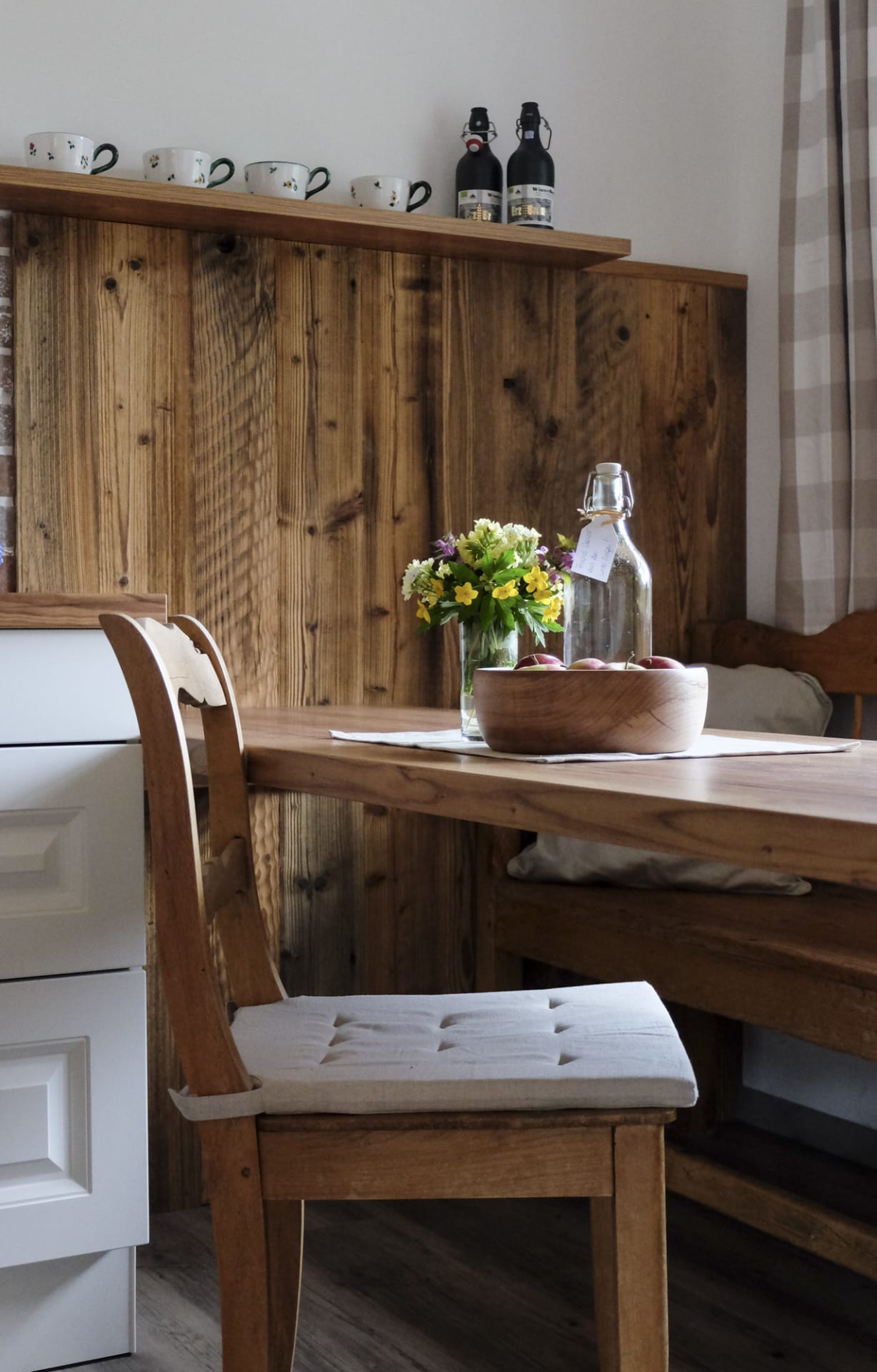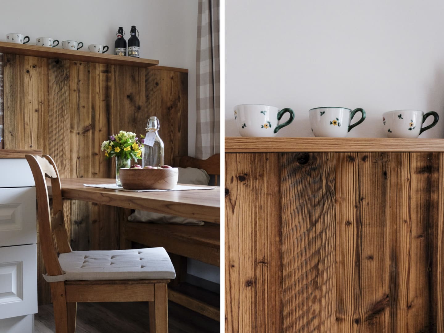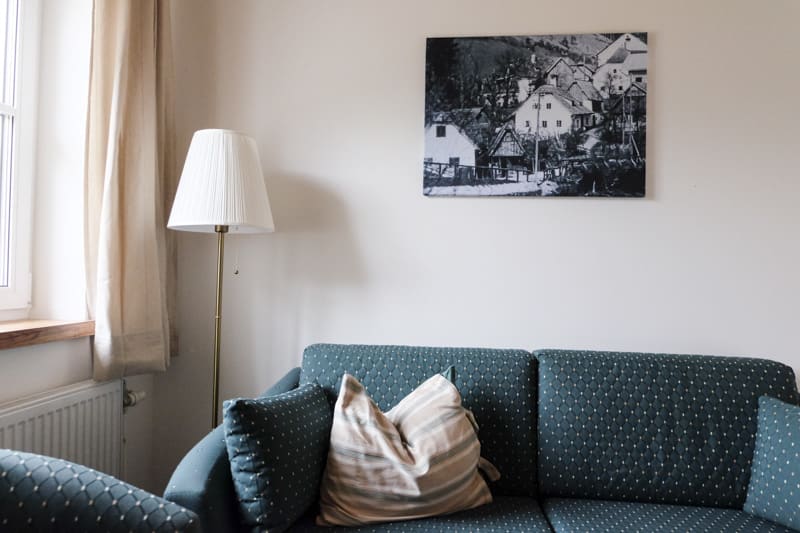 Bewusst wurde die Ferienwohnung mit traditionellen Materialien sowie Bildern, die an die „ Gute Alte Zeit“ erinnern, eingerichtet. Die gemütliche Atmosphäre und die naturbelassene Umgebung gibt Ihnen Zeit zu genießen und abzuschalten.