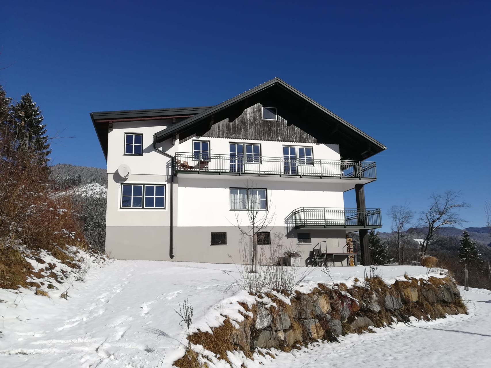 Das Apartment bietet genügend Platz für 4 Personen und hat eine „offene Bauweise“ Neben dem exklusiven Landhaus-Flair können Sie in der freistehenden Badewanne den traumhaften Ausblick auf die umliegende Bergwelt der Ybbstaler Alpen oder einen Film auf dem schwenkbaren Flat TV geniessen. In unserer geräumigen Küche haben Sie die Möglichkeit für Ihre Lieben köstliche Speisen zu bereiten. Der Schlafplatz ist durch halbhohe Wände getrennt und somit nicht einsehbar. Eine komfortable Ausziehcouch im Wohnbereich bietet bei Bedarf zwei zusätzliche Schlafplätze.