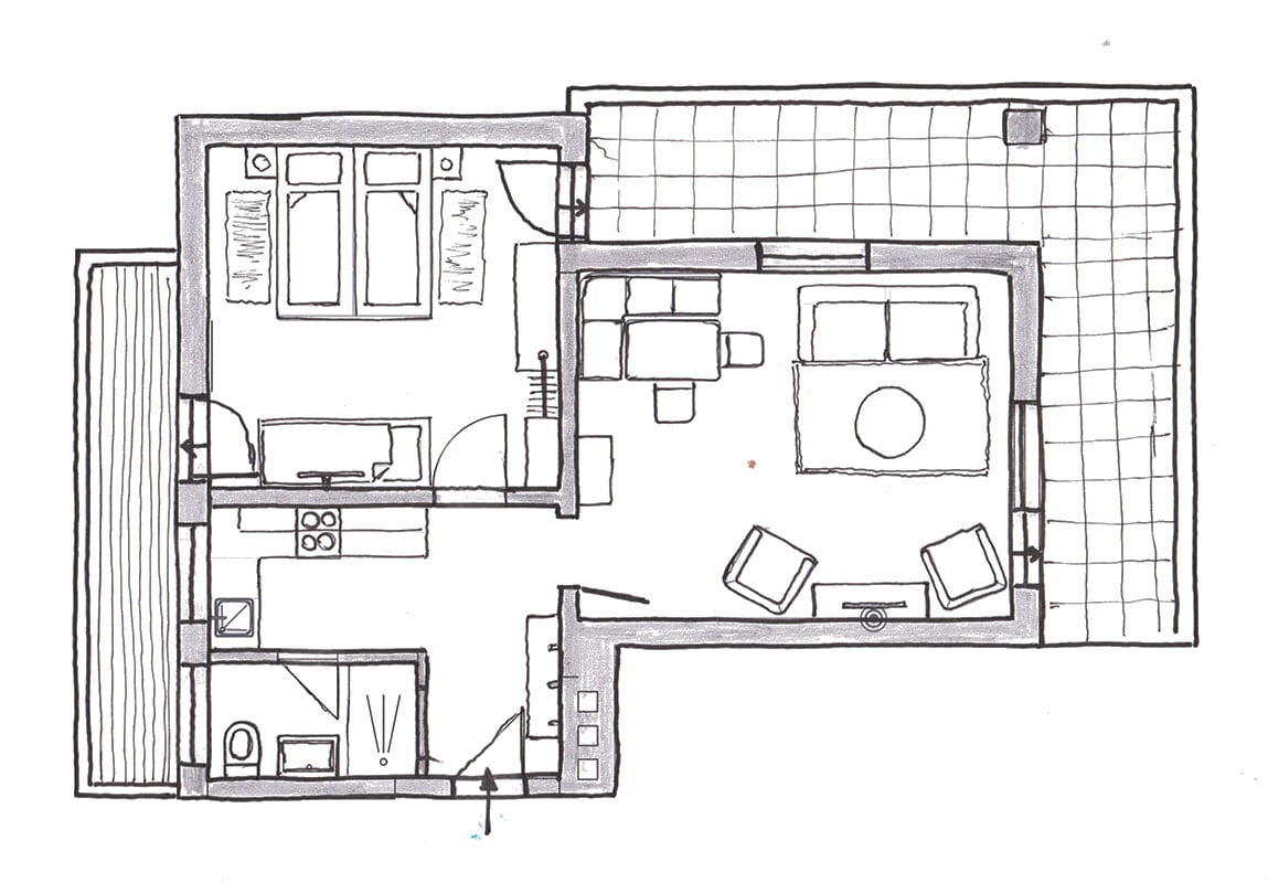Ein zusätzliches Schlafzimmer mit Balkon, welches direkt mit der Wohnung verbunden ist, steht ab der 3 Person zur Verfügung.