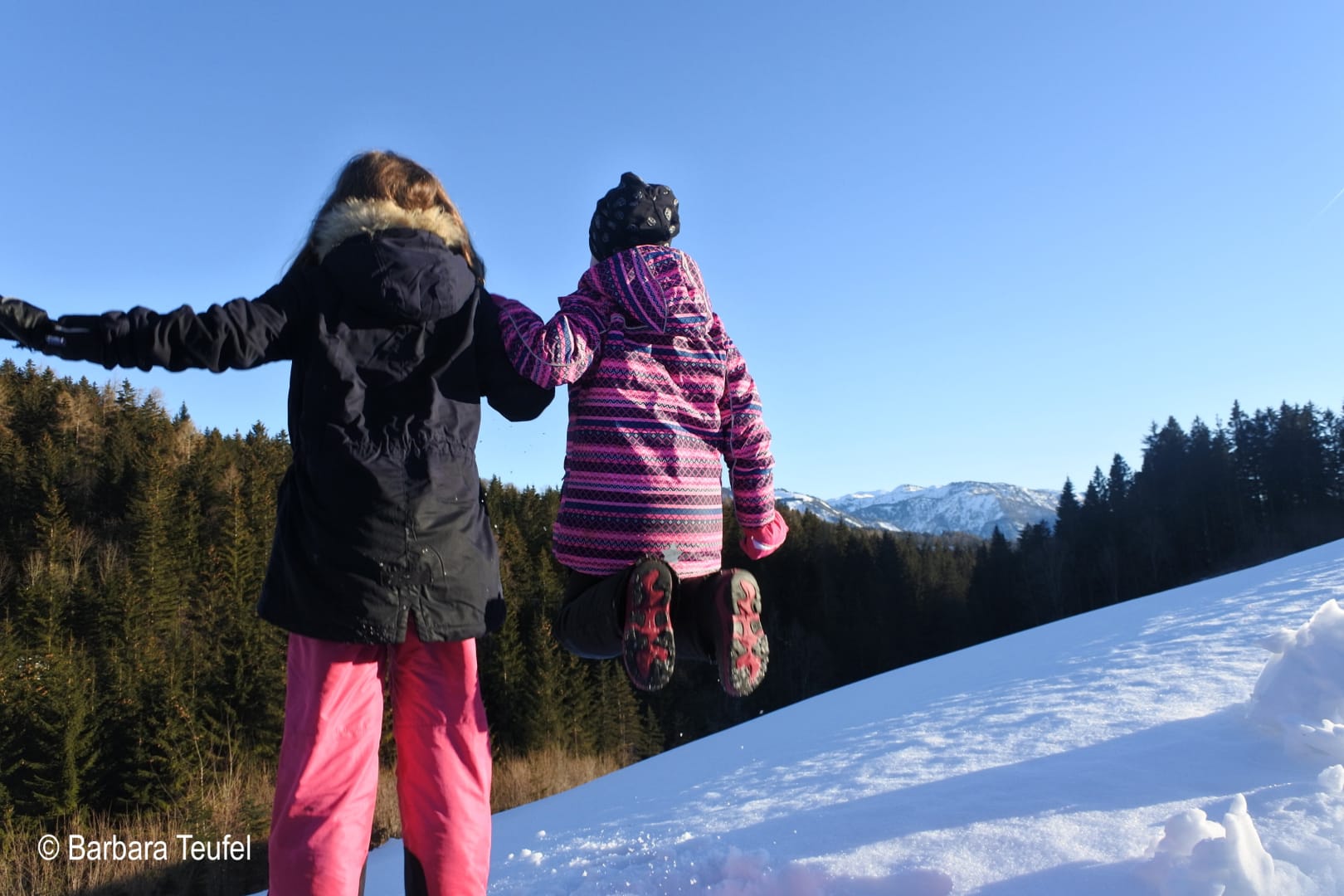 Auch auf unserem Biohof ist für Spaß im Schnee gesorgt. Bob fahren, Schlitten fahren, Iglu bauen und Schneeengerl machen sind nur wenige Beispiele.