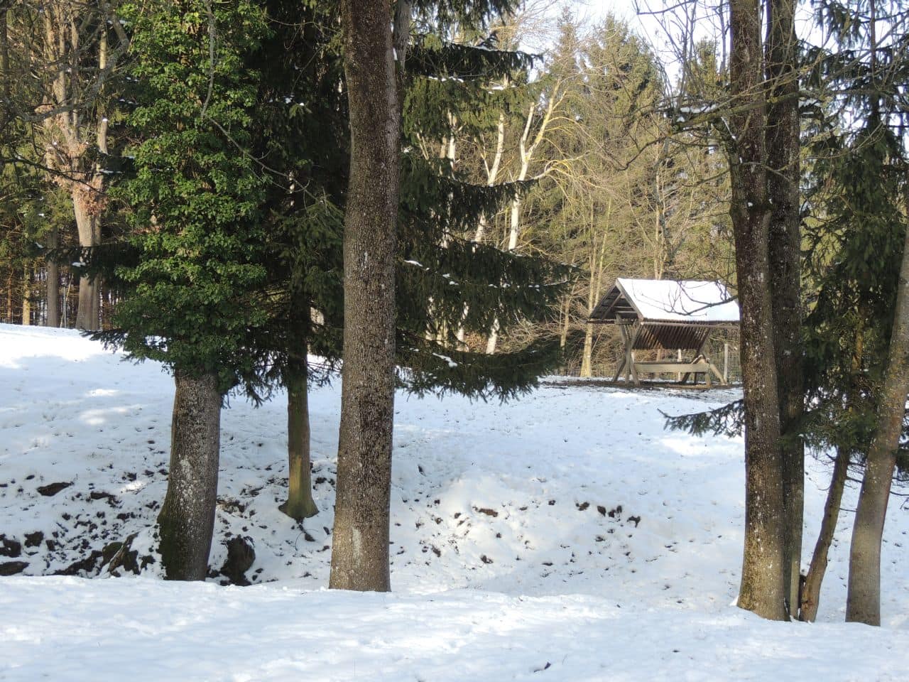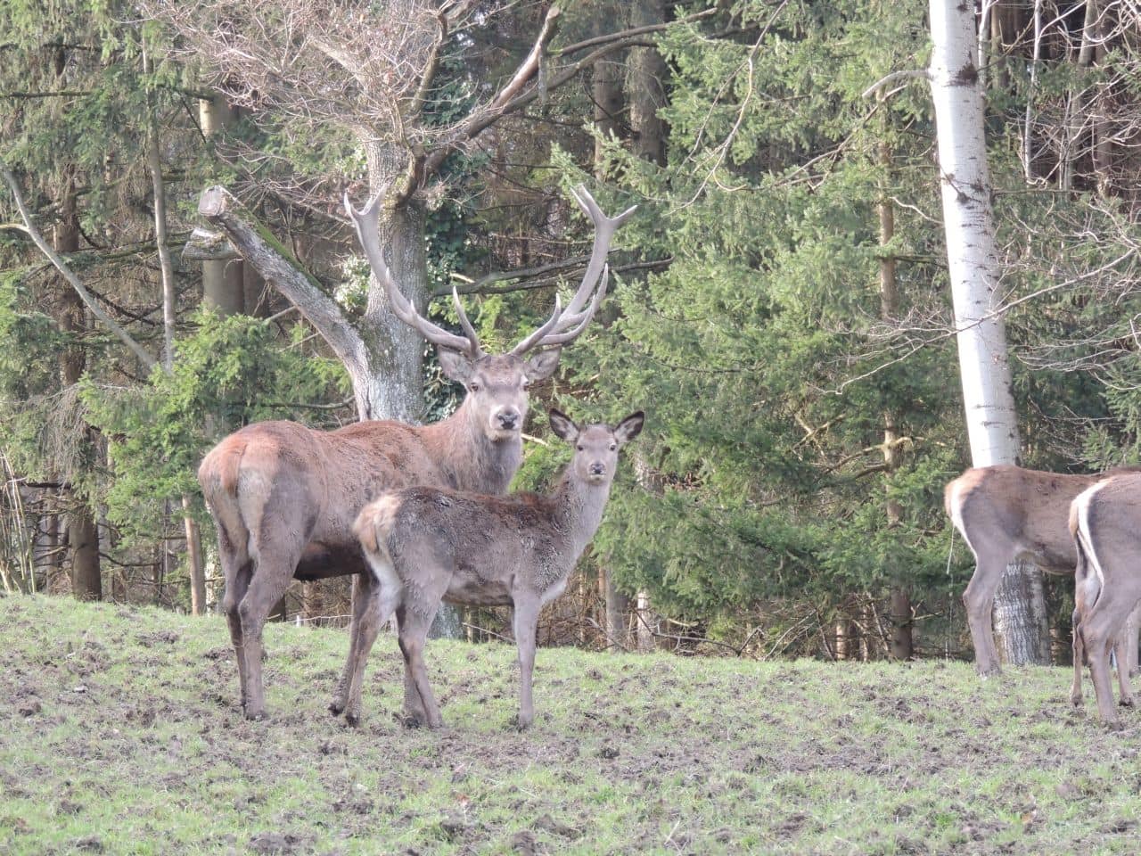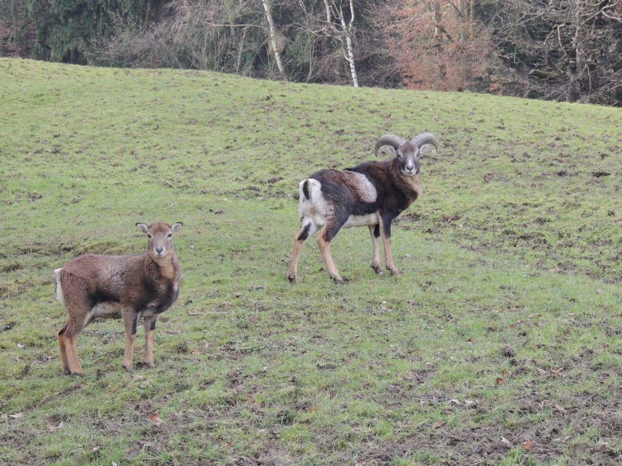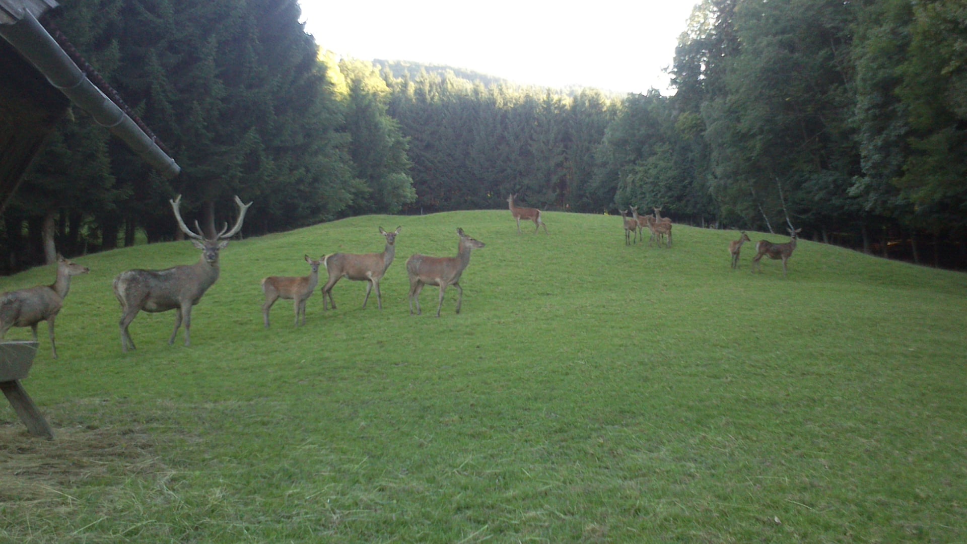 Im Wildgehege befinden sich 8 Rothirschen und 15 Mufflons.