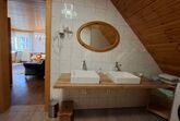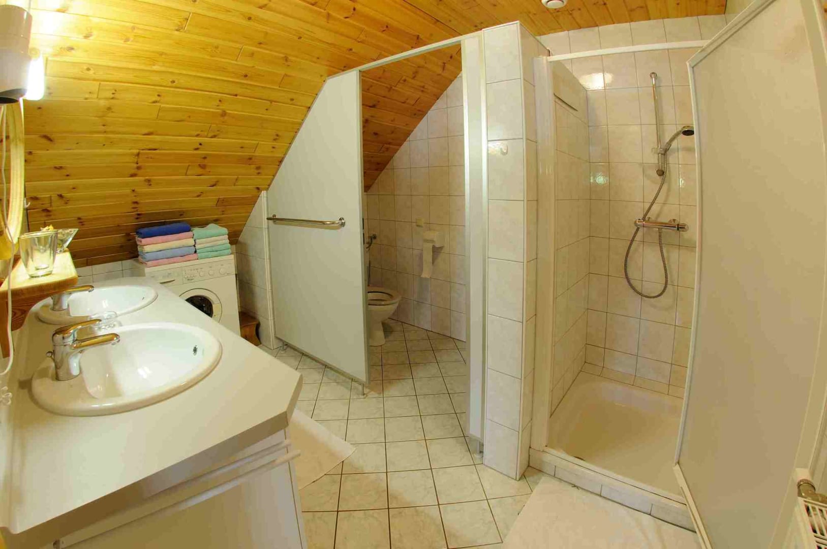 Das Badezimmer verfügt über eine Dusche, Doppelwaschbecken, Spiegel, Hand - und Badetücher. Das Wc ist extra abgeteilt WC-Papier ist inklusive.