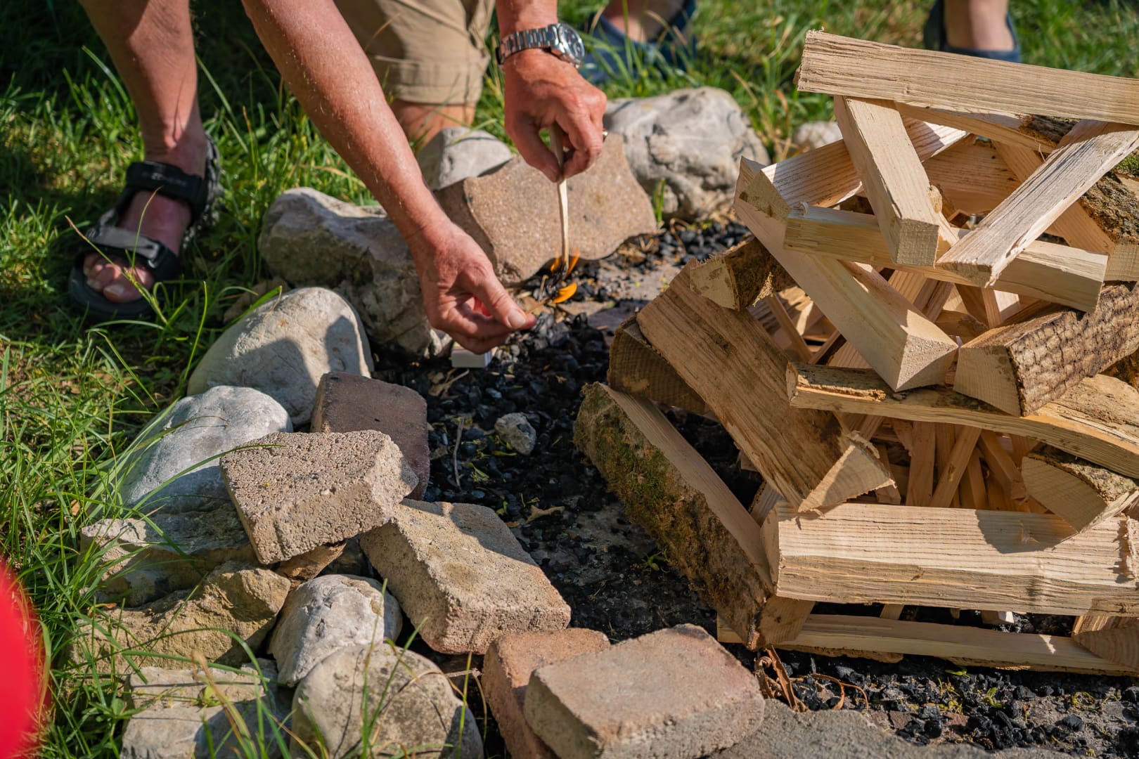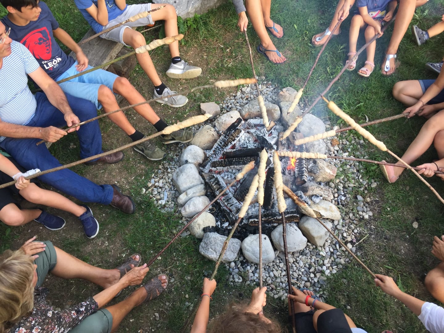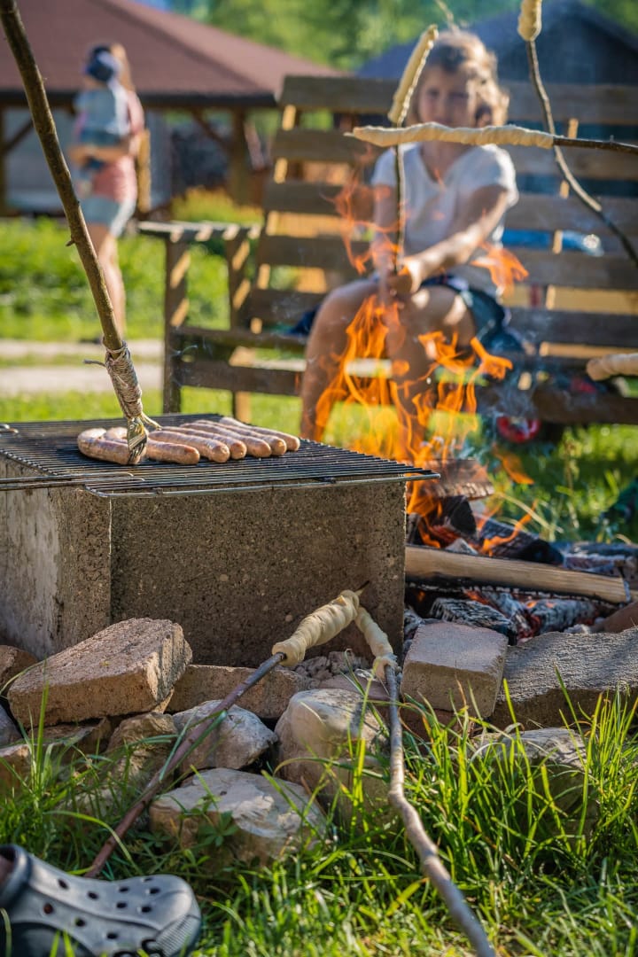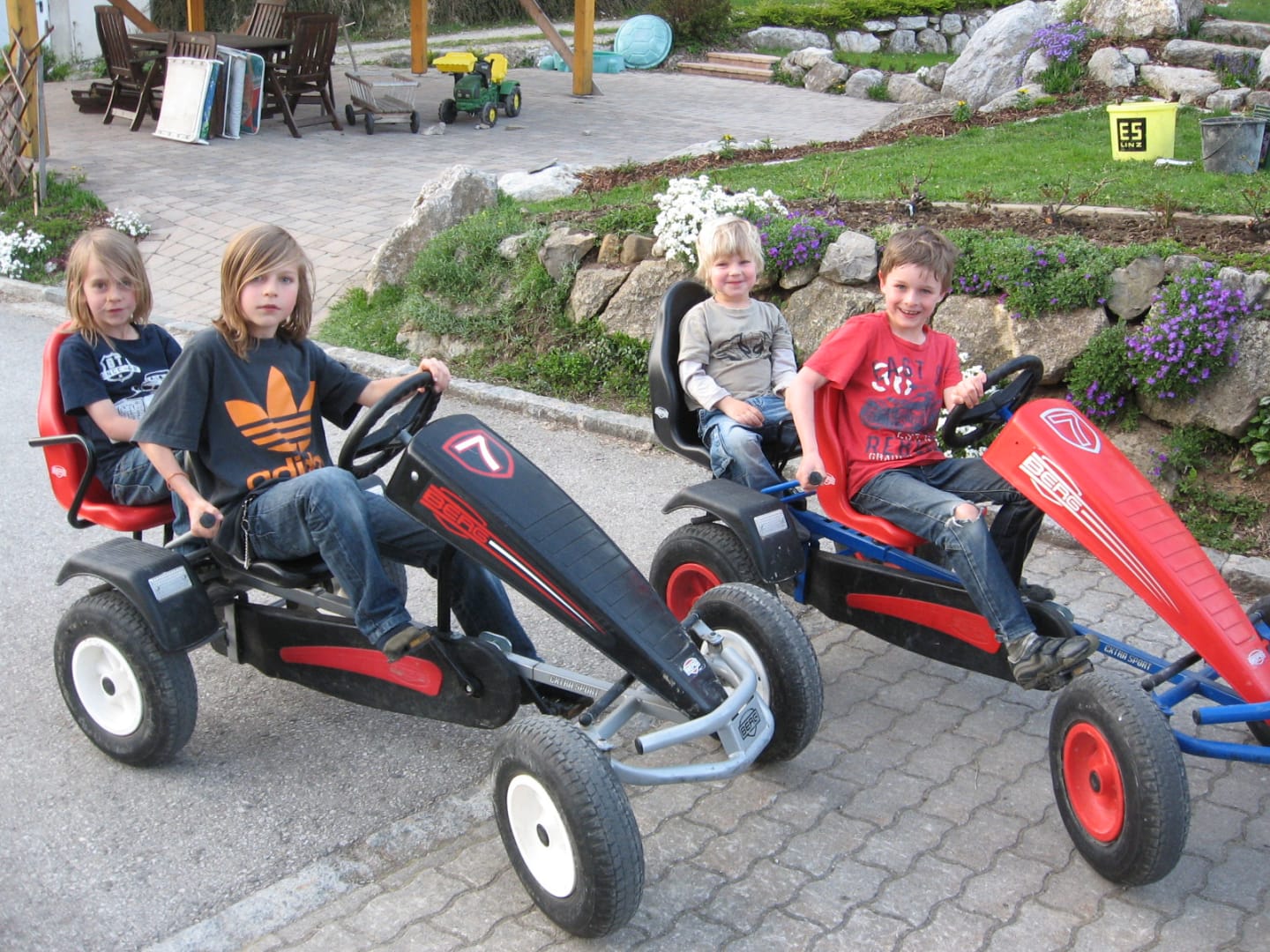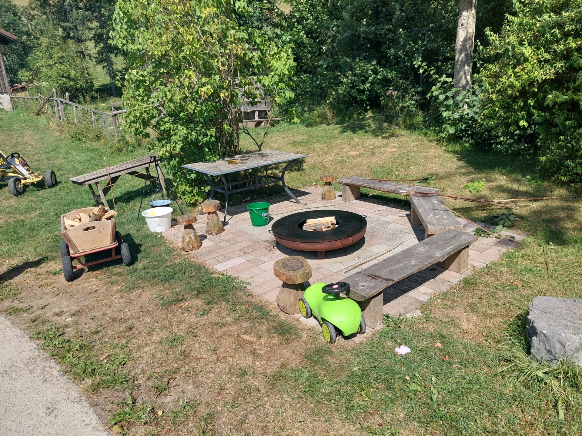 Auf die Kinder wartet ein Erlebnisspielplatz am kleinen Bach, wo sie im Schnee herumtollen können, Schneemänner bauen, eine Schneeballschlacht machen, und vieles mehr.