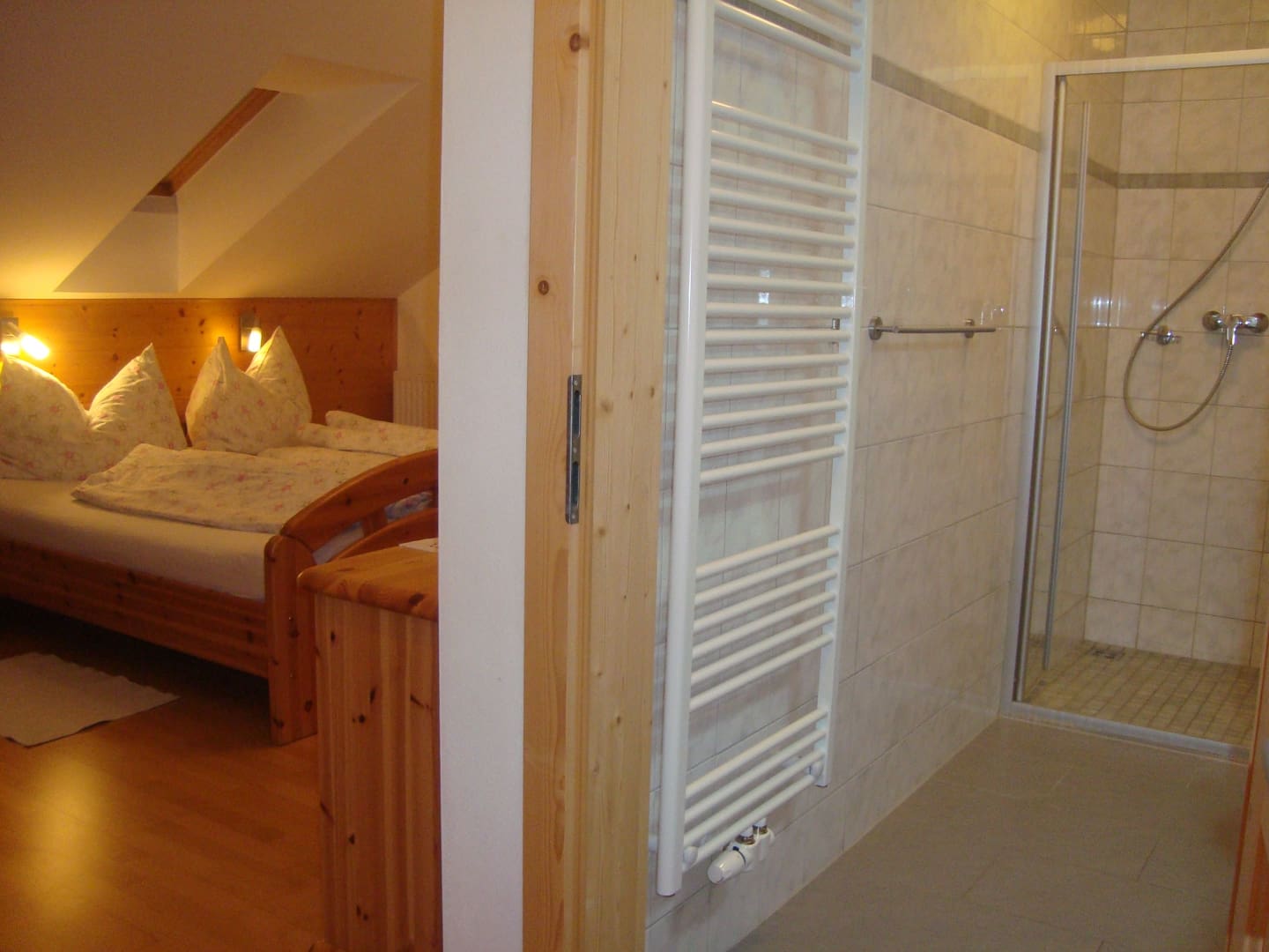 Drei getrennte Schlafzimmer mit jeweils 2 Betten sind in dieser Wohnung. Die Zimmer verfügen über ein eigenes Badezimmer mit Dusche und WC. Hand - Badetücher, Bettwäsche sowie WC-Papier sind vorhanden. In einem Zimmer steht ein Gitterbett zu Verfügung.