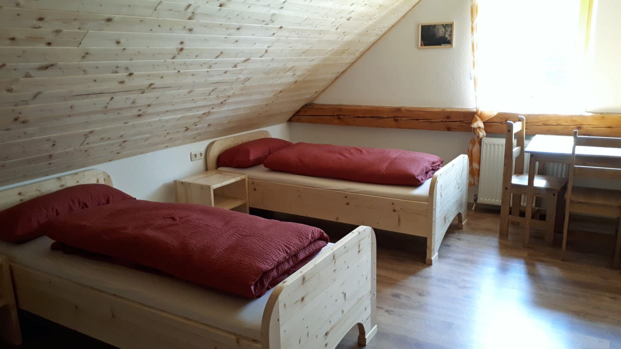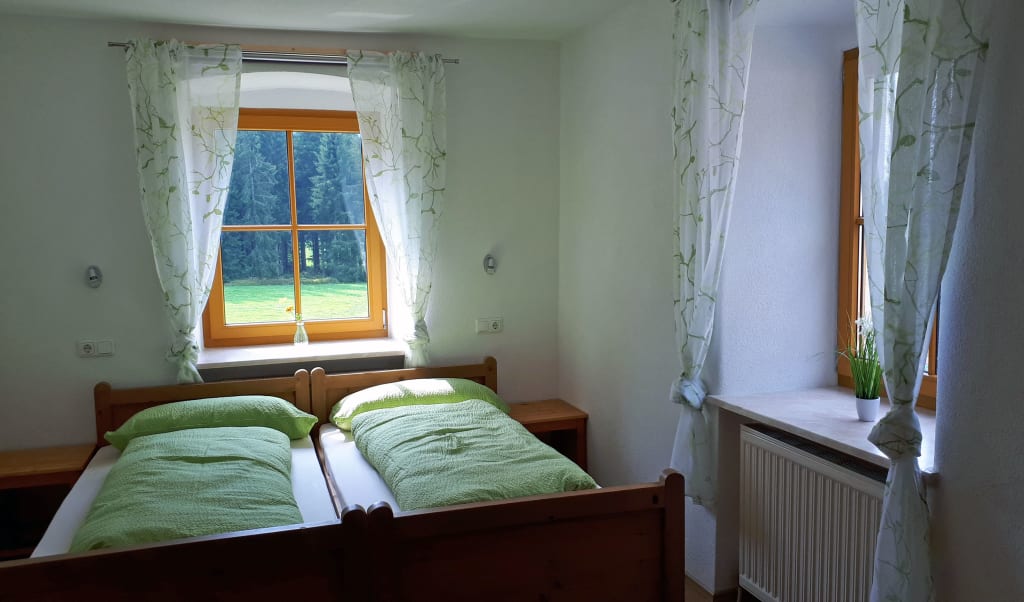 1 Zimmer mit 1 Doppelbett, 2 Zimmer mit wahlweise mit 2 Einzelbetten oder 1 Doppelbett und 1 Gitterbett