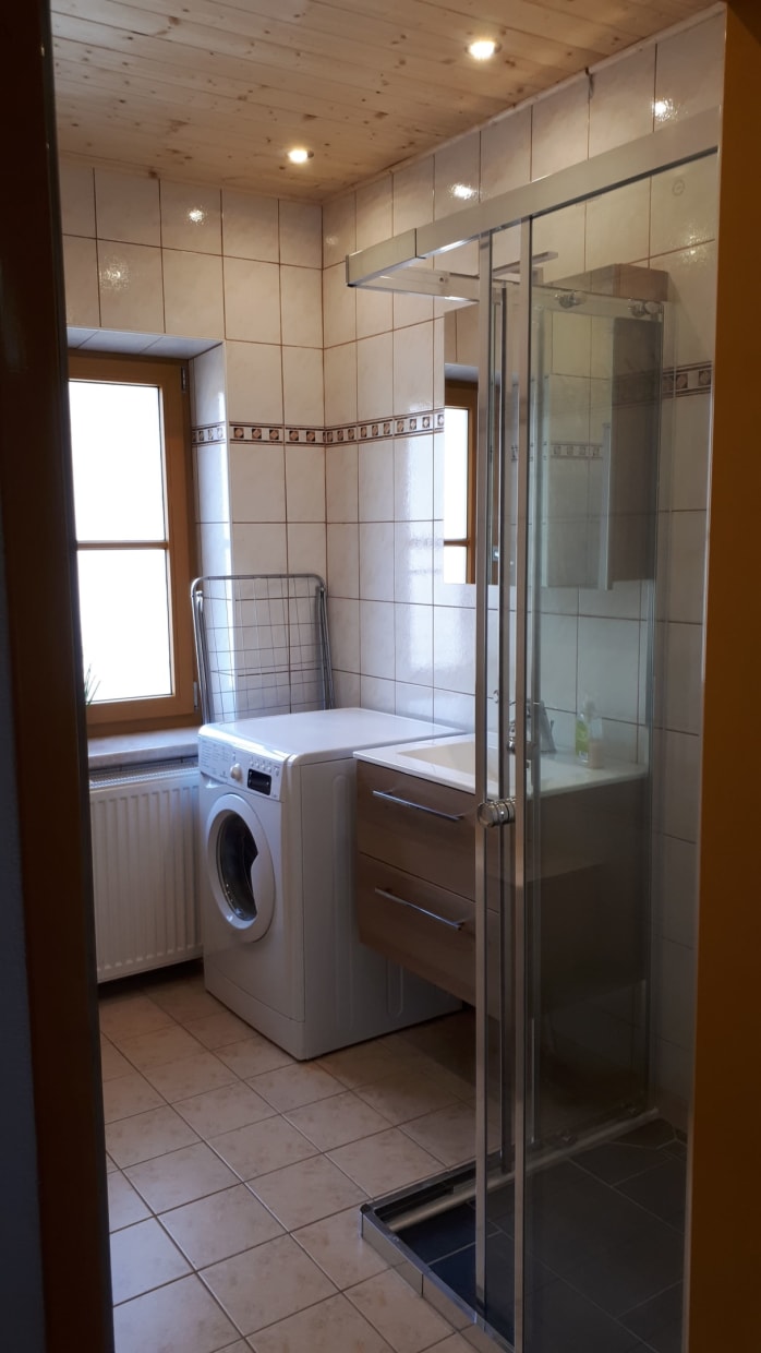 Bad mit Dusche, Haarföhn und Waschmaschine, WC im EG und OG, Bettwäsche und Handtücher inkludiert.