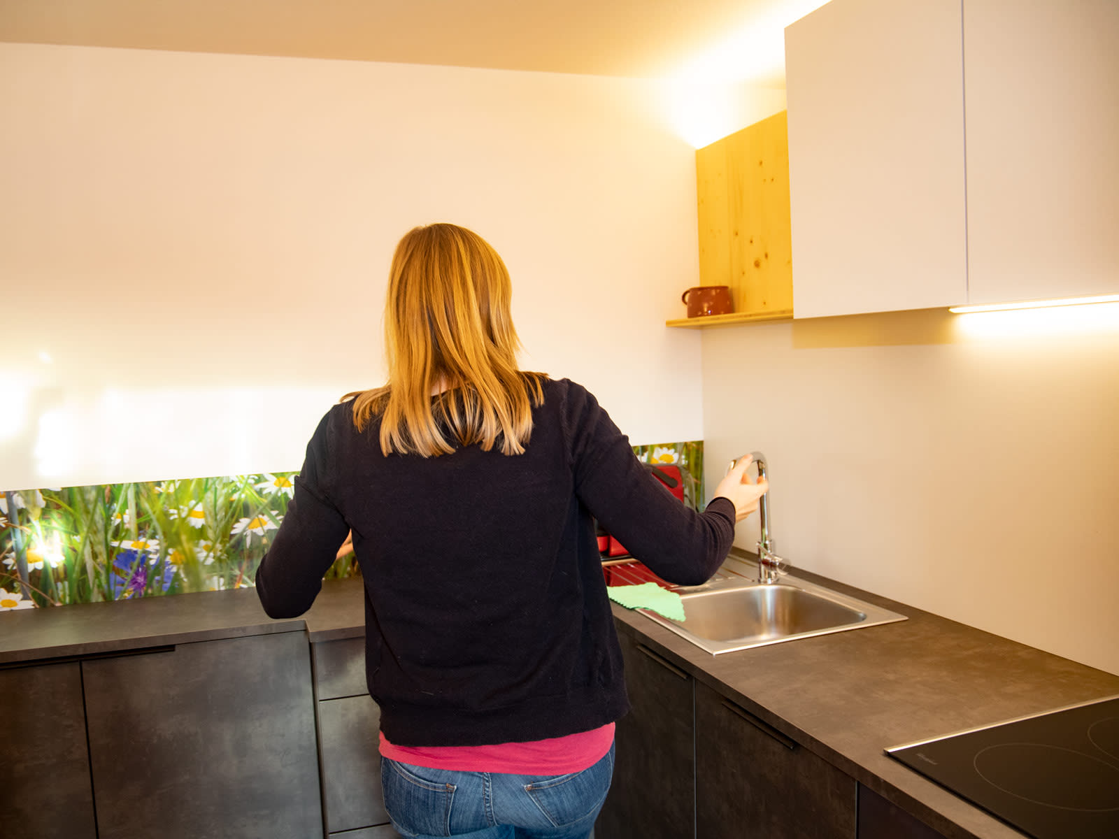 Die Wohneinheit ist in einer Ebene, Zentralheizung (Wärmepumpe), komplett ausgestattete Küche (Kühlschrank, Spülmaschine, Herd, Backrohr, Wasserkocher, Kaffeemaschine, Eierkocher, Küchenutensilien). Wohn-/Schlafzimmer mit Doppelbett, Couch, Essbereich, Kasten, Safe, Kofferbock, Nachttischlampen mit USB-Anschluss. Haartrockner, Wäscheständer, Babybett, Bettwäsche, Duschtücher und Handtücher sind vorhanden. Flachbild-TV, Radio, CD Player, Bluetooth Player, kostenfreies WLAN, Bücher, Kinderspielzeug. Garten mit Liegewiese, Gartenmöbel, Sonnenschirm. Haustiere sind im DUO erlaubt. Nichtraucherwohnung. Blick in Garten, ins Grüne, zur Kirche und Richtung Naherholungsgebiet. Die Gastgeber sind zwei Häuser weiter zuhause.