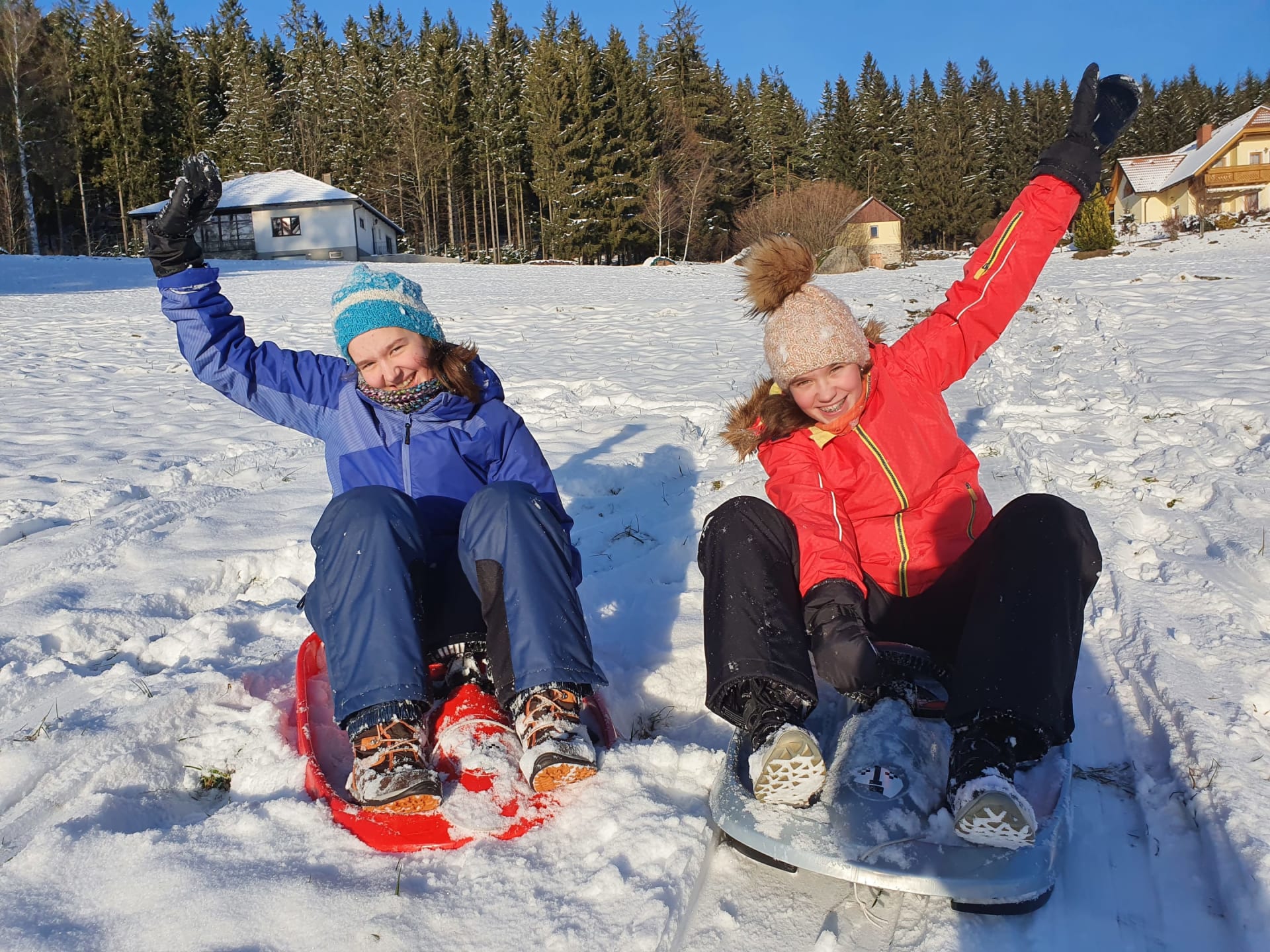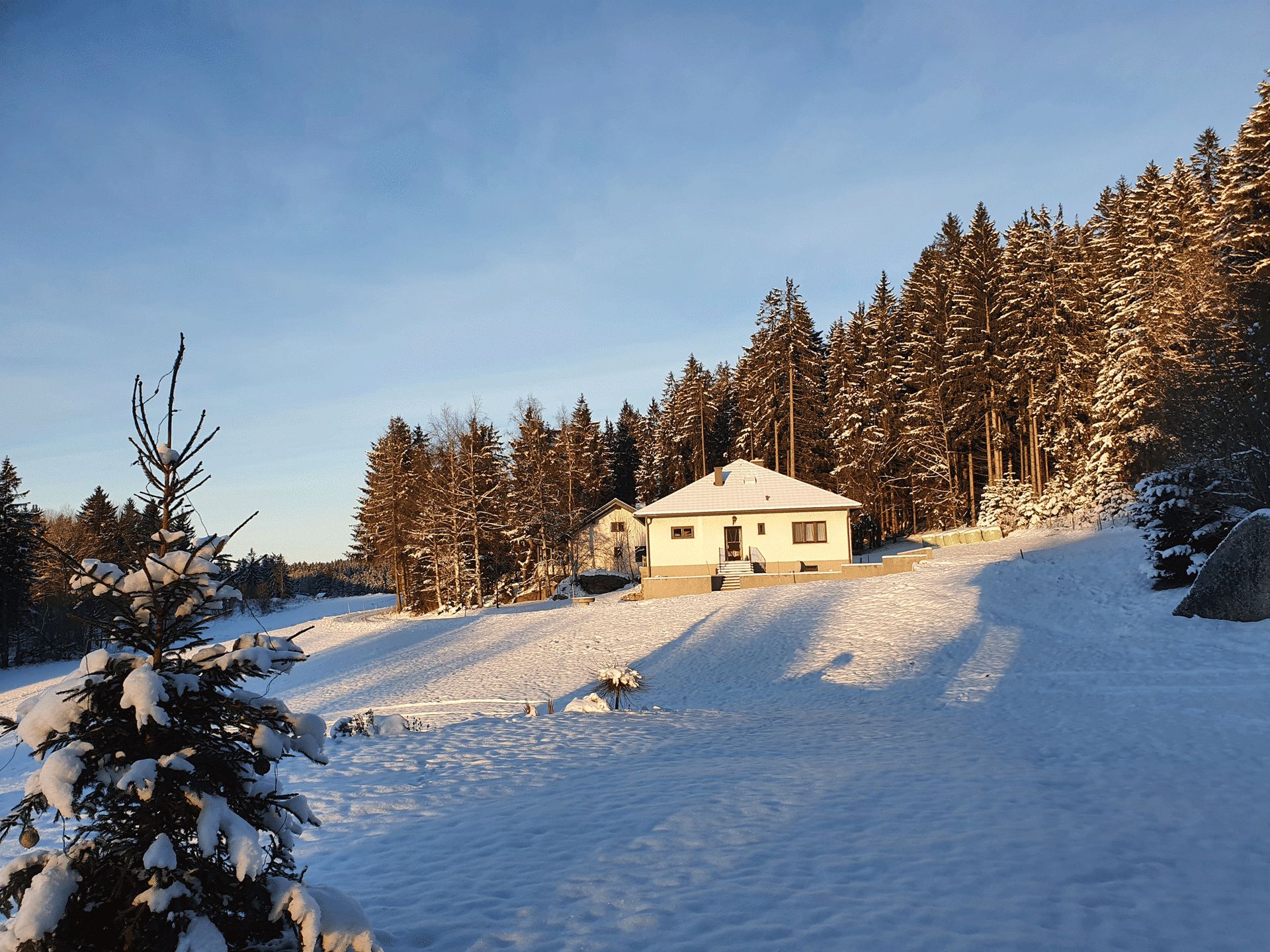 Im Winter führt direkt die Langlaufloipe vor dem Haus voebei. Für Kinder ideal zum Bob und Schlittenfahren.