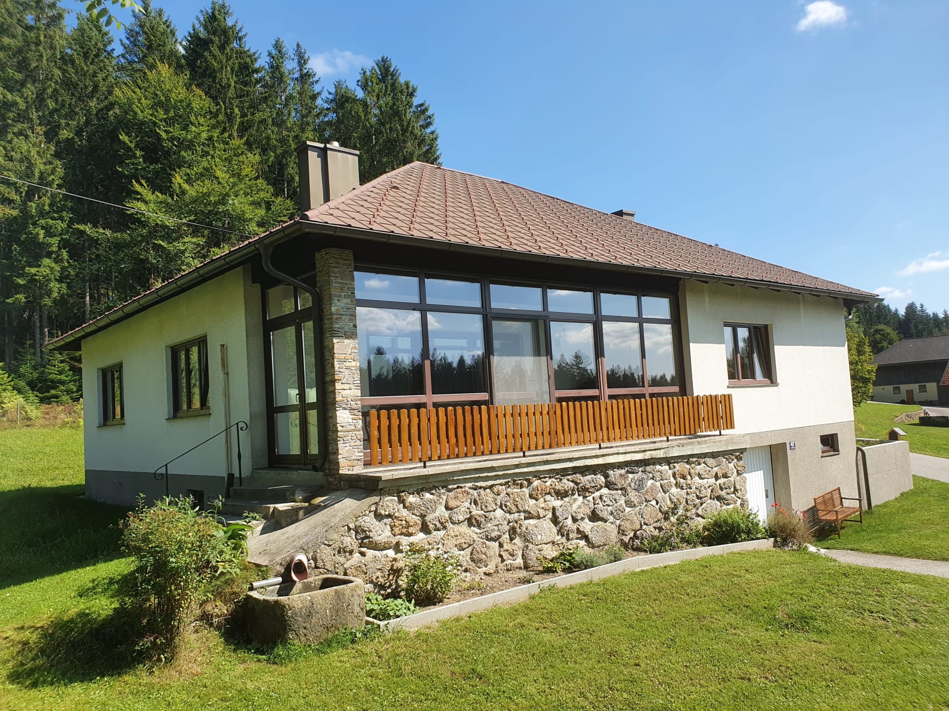 Unser Ferienhaus besteht aus einer vollausgestatteten Küche, einen großzügigen Wohnzimmer mit Wintergarten, 2 Doppelzimmern, Badezimmer und WC sind getrennt. Zusätzlich steht Ihnen ein Kellerstüberl zur Verfügung.