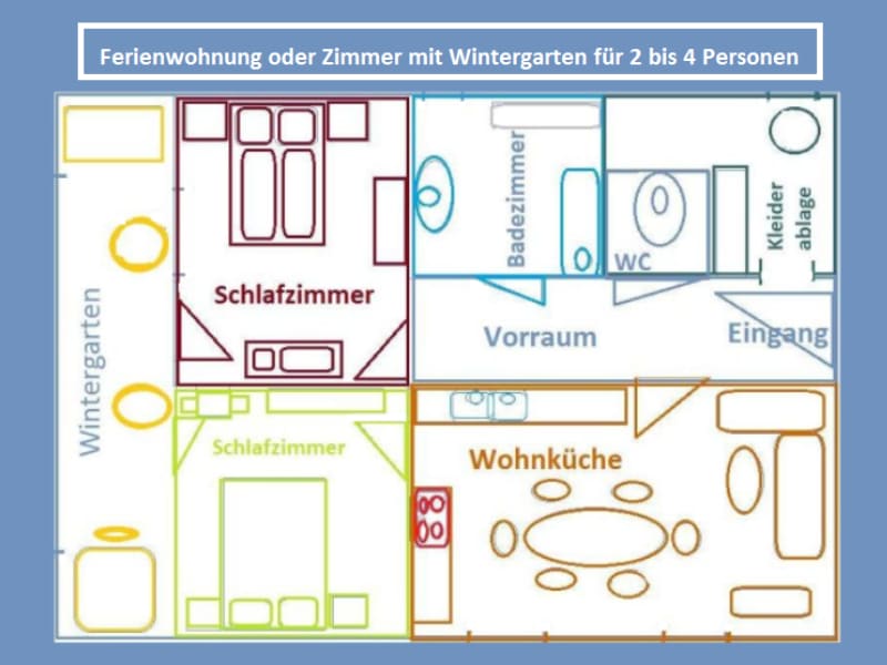 Exklusive Ferienwohnung mit Sternenblick Entdecken Sie unsere großzügige und äußerst komfortable Ferienwohnung (90 m²) für 2 bis 4 Gäste. Ideal für Familien oder Paare, die viel Platz und eine umfassende Ausstattung schätzen und sich wie zu Hause fühlen möchten. Die Wohnung bietet zwei separate Schlafzimmer, jedes ausgestattet mit einem Kingsize-Bett für erholsame Nächte. Ein gemütliches Schlafsofa im Wohnbereich bietet zusätzliche Flexibilität für Ihre Belegung. Genießen Sie den lichtdurchfluteten Wintergarten – ein echtes Highlight. Hier können Sie nicht nur entspannte Stunden verbringen, sondern auch durch das Panoramafenster den atemberaubenden Sternenhimmel bewundern – ein unvergessliches Erlebnis. Die vollständig ausgestattete Wohnküche lässt keine Wünsche offen und lädt zum gemeinsamen Kochen und Verweilen ein. Sie verfügt über einen 4-Plattenherd, Backofen, Mikrowelle mit Backfunktion, Kühlschrank, Kaffeemaschine, Wasserkocher, Eierkocher sowie ausreichend Geschirr, Kochutensilien und Reinigungsausstattung. Ein großer Esstisch bietet bequem Platz für 4-6 Personen. Ein Badezimmer mit Dusche und Sitzgelegenheit bei Ihrer Körperpflege sowie ein separates WC. Selbstverständlich sind frische Bettwäsche und Handtücher für Sie bereitgelegt und im Preis inbegriffen. Zur weiteren Ausstattung gehören ein Flat-Screen SAT-TV, Radio, ein Safe und kostenloses High-Speed WLAN. Die Wohnung befindet sich im Haupthaus im 1. Stock und bietet zudem Zugang zu unserem Garten. Für unsere kleinen Gäste stellen wir gerne ein Gitterbett und einen Hochstuhl bereit. Die gesamte Ferienwohnung ist eine Nichtraucherwohnung. #### Wichtige Informationen: * Strom wird nach Verbrauch abgerechnet (1 KW € 0,17). * Informationen zur Nächtigungstaxe € 1,60 /taxen. * Wir bitten um Ihr Verständnis, dass Haustiere in unserer Ferienwohnung nicht gestattet sind.