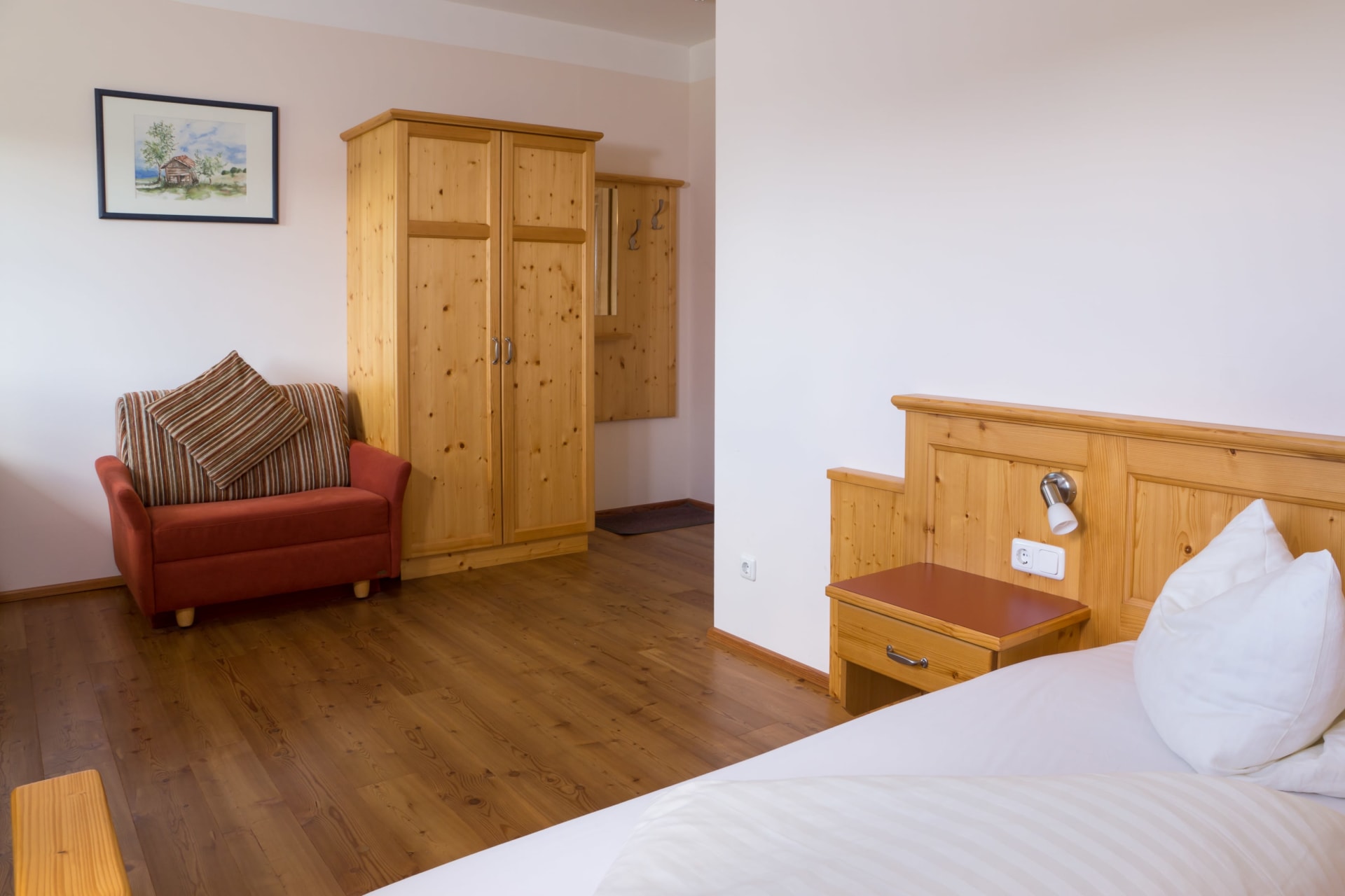 Unser Einzelzimmer liegt südseitig und ist besonders für Alleinreisende, Senioren, Geschäftsreisende und Singles geeignet.