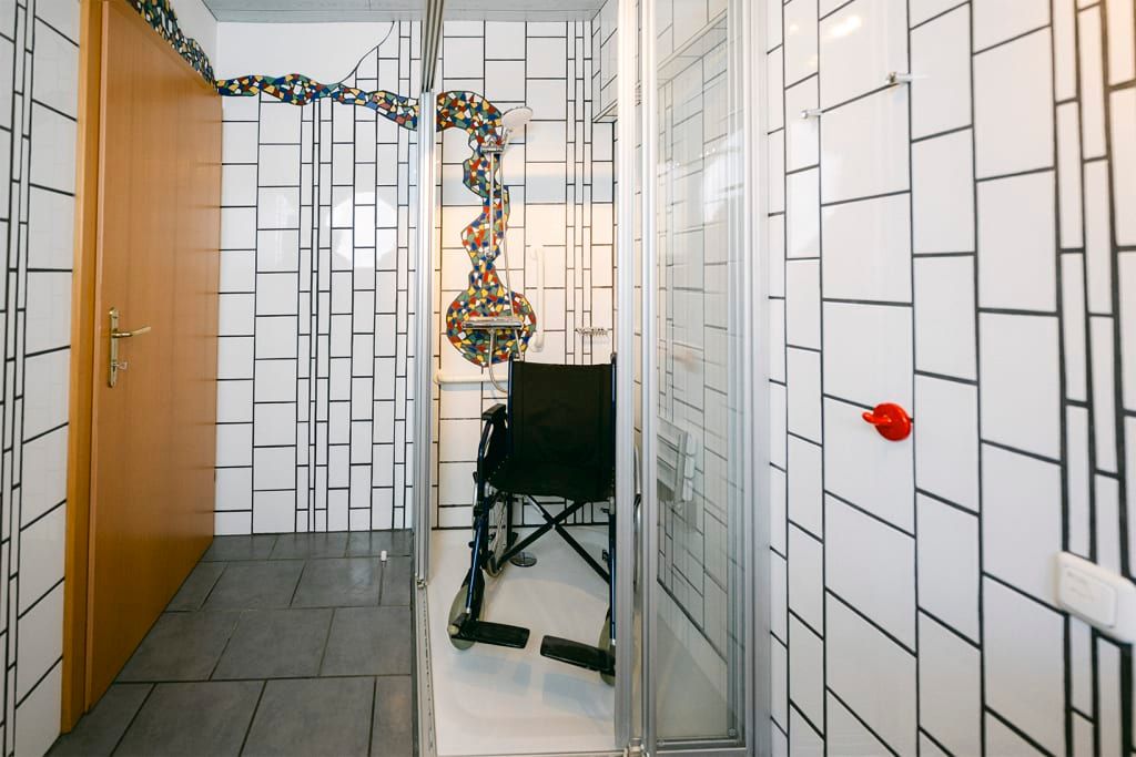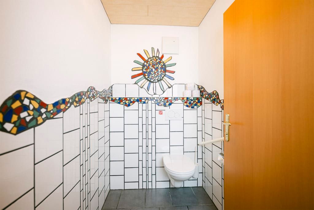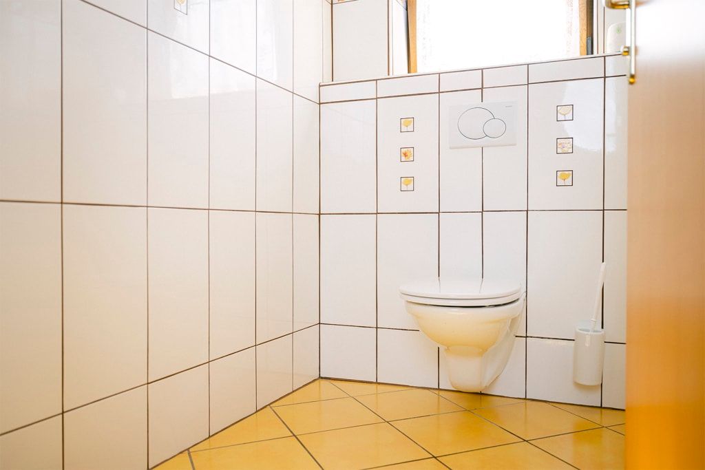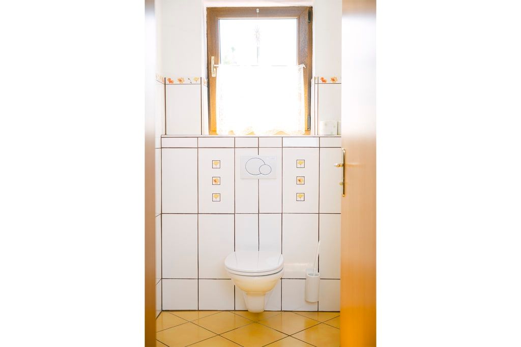 - ein modernes Badezimmer mit WC , ganz ohne Holz, aber dafür mit warmen Wasser!