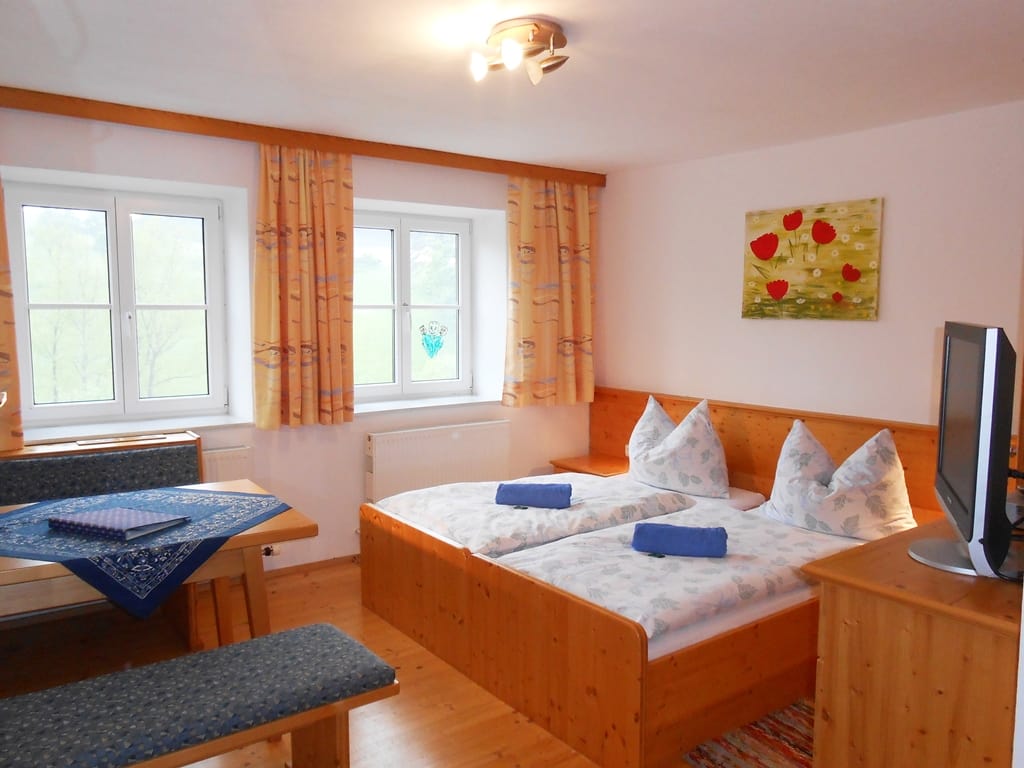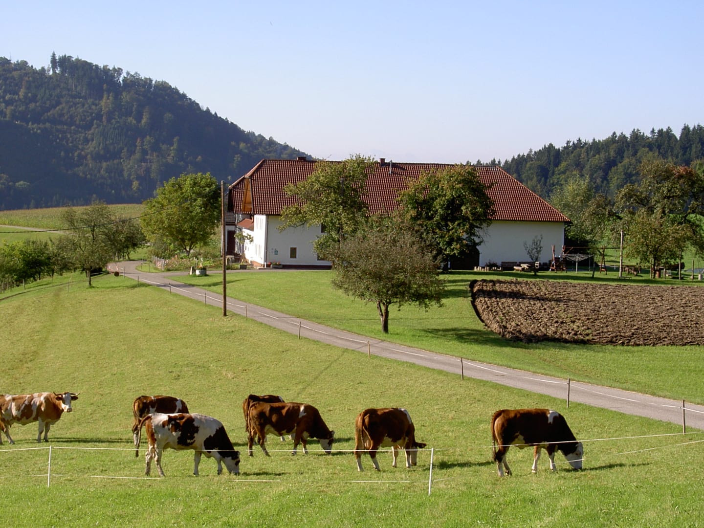 Die Hühner, Katzen, Hase, Schweine, und Kühe freuen sich auf Streicheleinheiten von Groß und Klein. Ob beim Grillen oder Lagerfeuer - wir setzen uns gerne mit unseren Gästen zusammen. Probieren Sie auch unsere hofeigenen Produkte: Holzofenbrot, Speck, Eier, Most und eine Kernlandjause. Die neu eingerichteten Zimmer mit Küche sind sehr komfortabel. Gitterbett, Kinderhochstuhl und Liegestühle sind vorhanden!