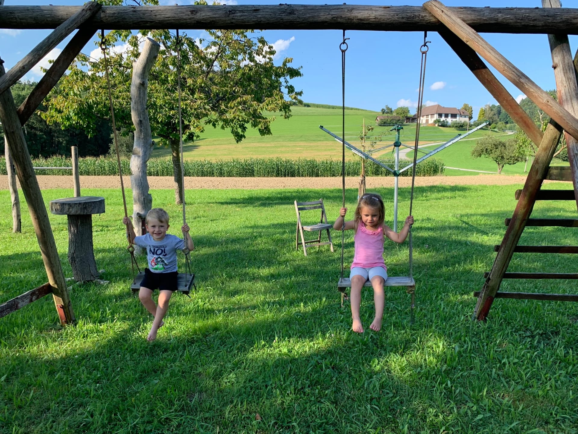 Die Hühner, Katzen, Hase, Schweine, und Kühe freuen sich auf Streicheleinheiten von Groß und Klein. Ob beim Grillen oder Lagerfeuer - wir setzen uns gerne mit unseren Gästen zusammen. Probieren Sie auch unsere hofeigenen Produkte: Holzofenbrot, Speck, Eier, Most und eine Kernlandjause. Die neu eingerichteten Zimmer mit Küche sind sehr komfortabel. Gitterbett, Kinderhochstuhl und Liegestühle sind vorhanden!