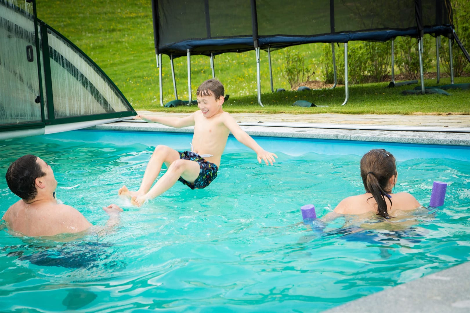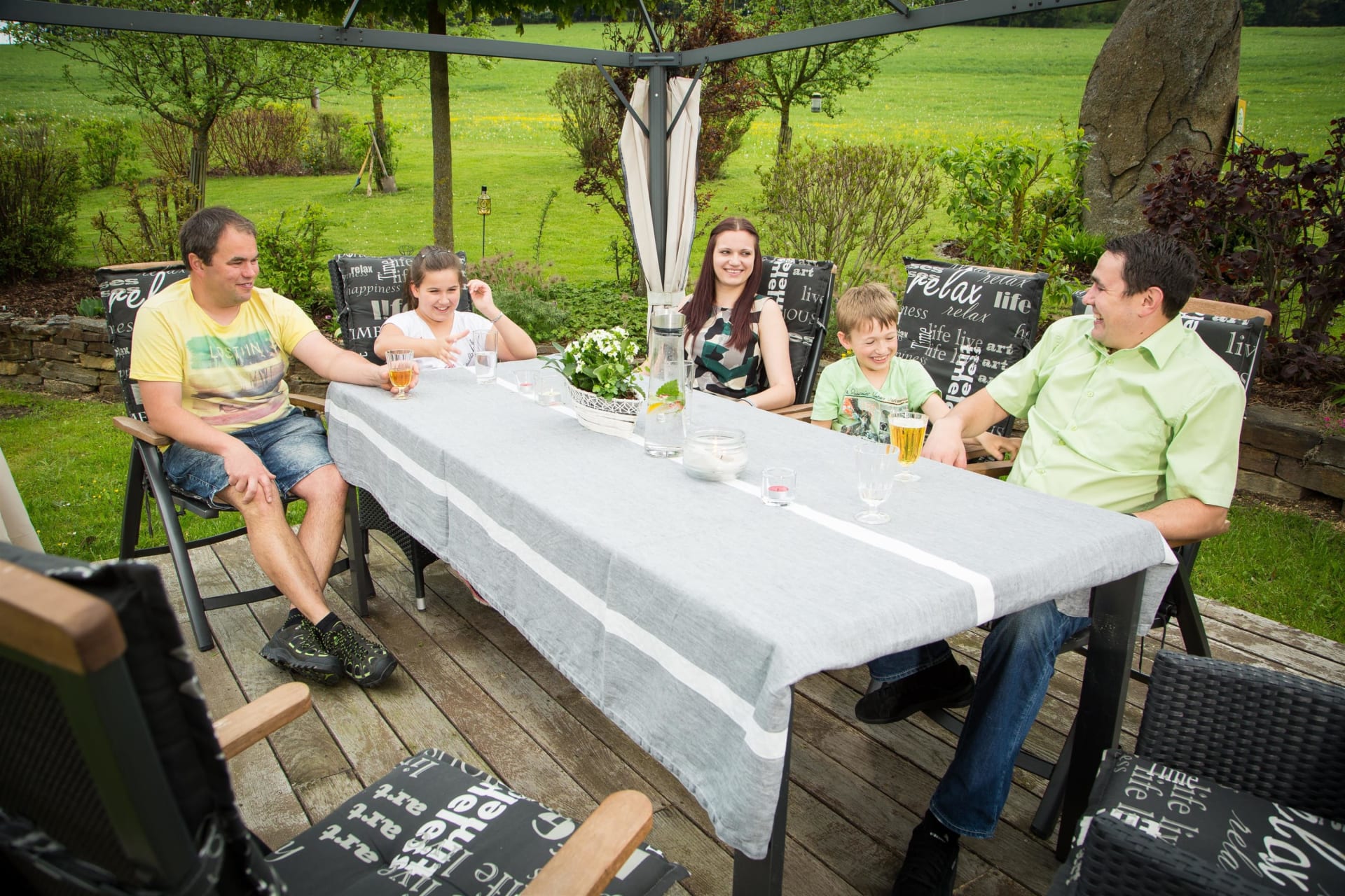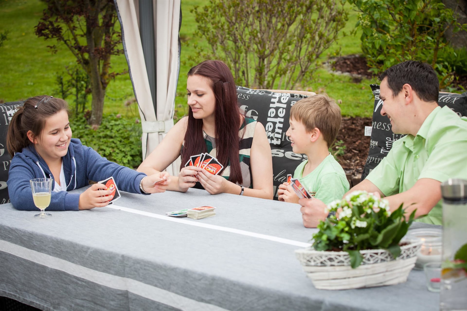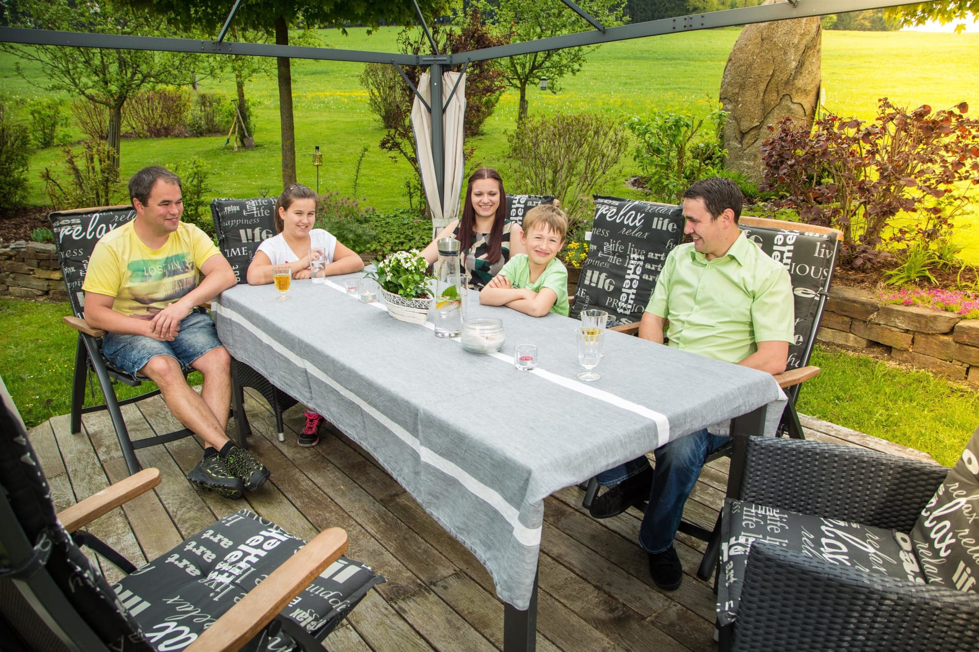Ruhe, Auszeit und Entspannung - das finden unsere Gäste im großzügigen und gemütlich gestalteten Garten mit überdachtem Pool - ein richtiger Wohlfühlbereich! Für unsere kleinen Gäste stehen dort auch Spielgeräte wie beispielsweise ein Trampolin uvm. zur Verfügung. Spaziergänge in die nahegelegenen Wälder bieten ebenfalls die Möglichkeit, den Alltag hinter sich zu lassen und nur den sanften Klängen der Natur zu lauschen.