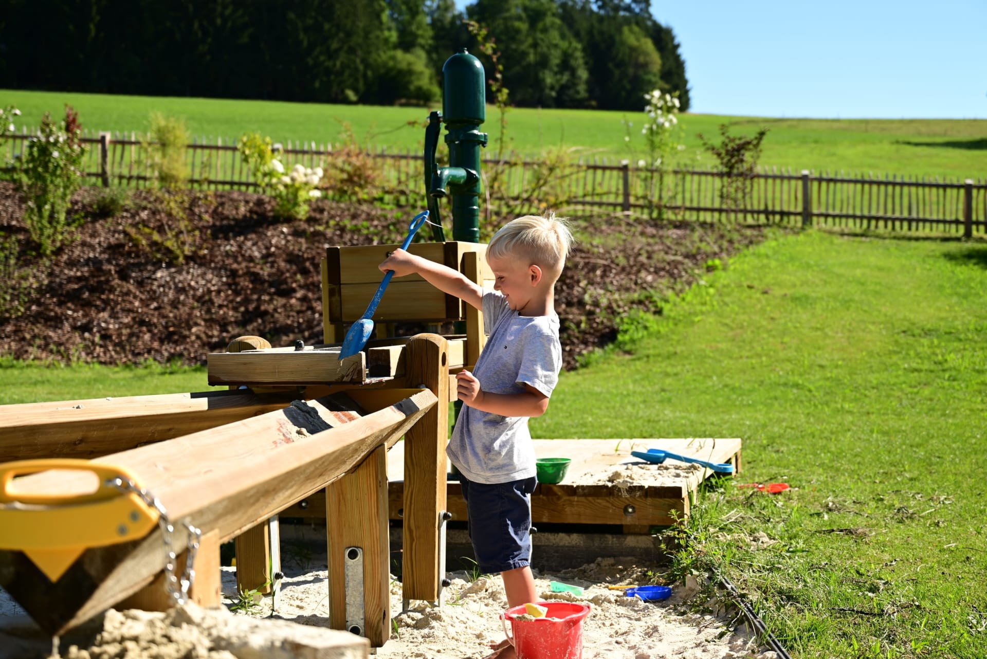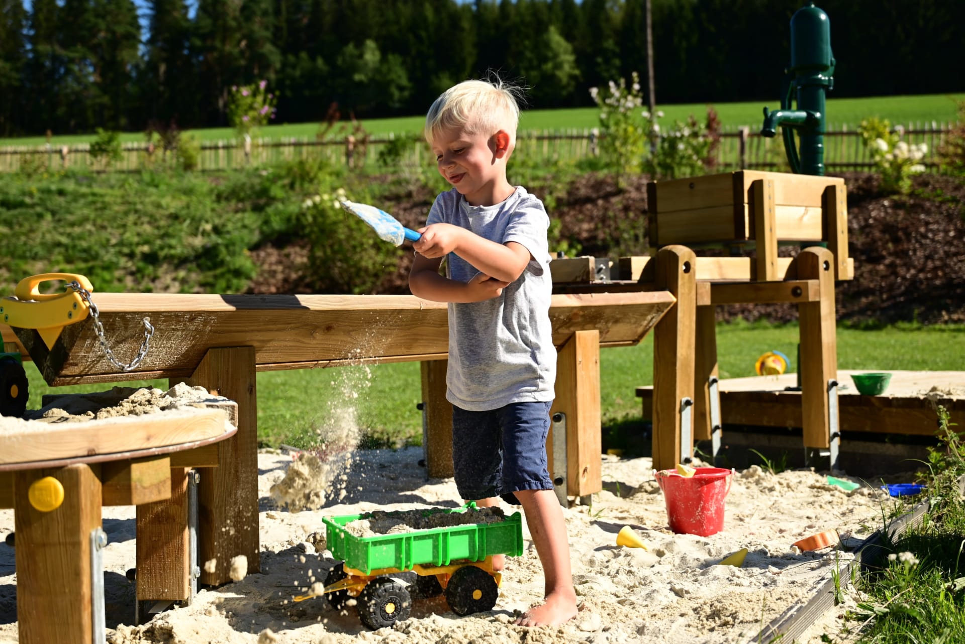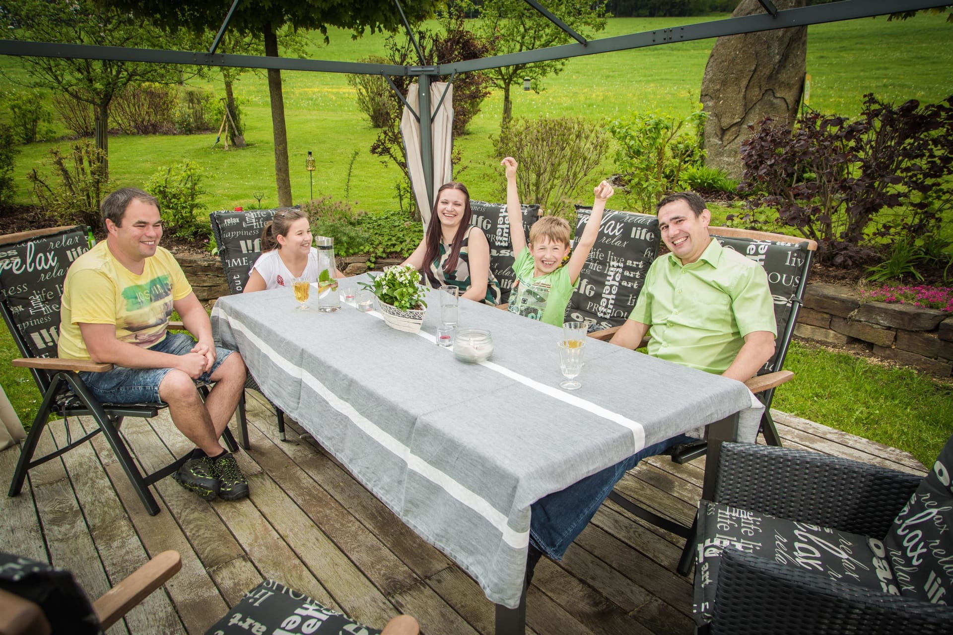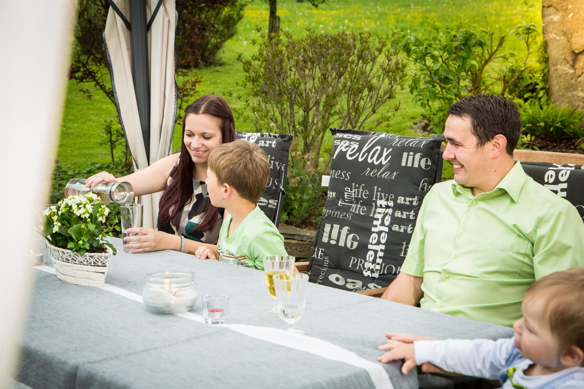 Ruhe, Auszeit und Entspannung - das finden unsere Gäste im großzügigen und gemütlich gestalteten Garten mit überdachtem Pool - ein richtiger Wohlfühlbereich! Für unsere kleinen Gäste stehen dort auch Spielgeräte wie beispielsweise ein Trampolin uvm. zur Verfügung. Spaziergänge in die nahegelegenen Wälder bieten ebenfalls die Möglichkeit, den Alltag hinter sich zu lassen und nur den sanften Klängen der Natur zu lauschen.