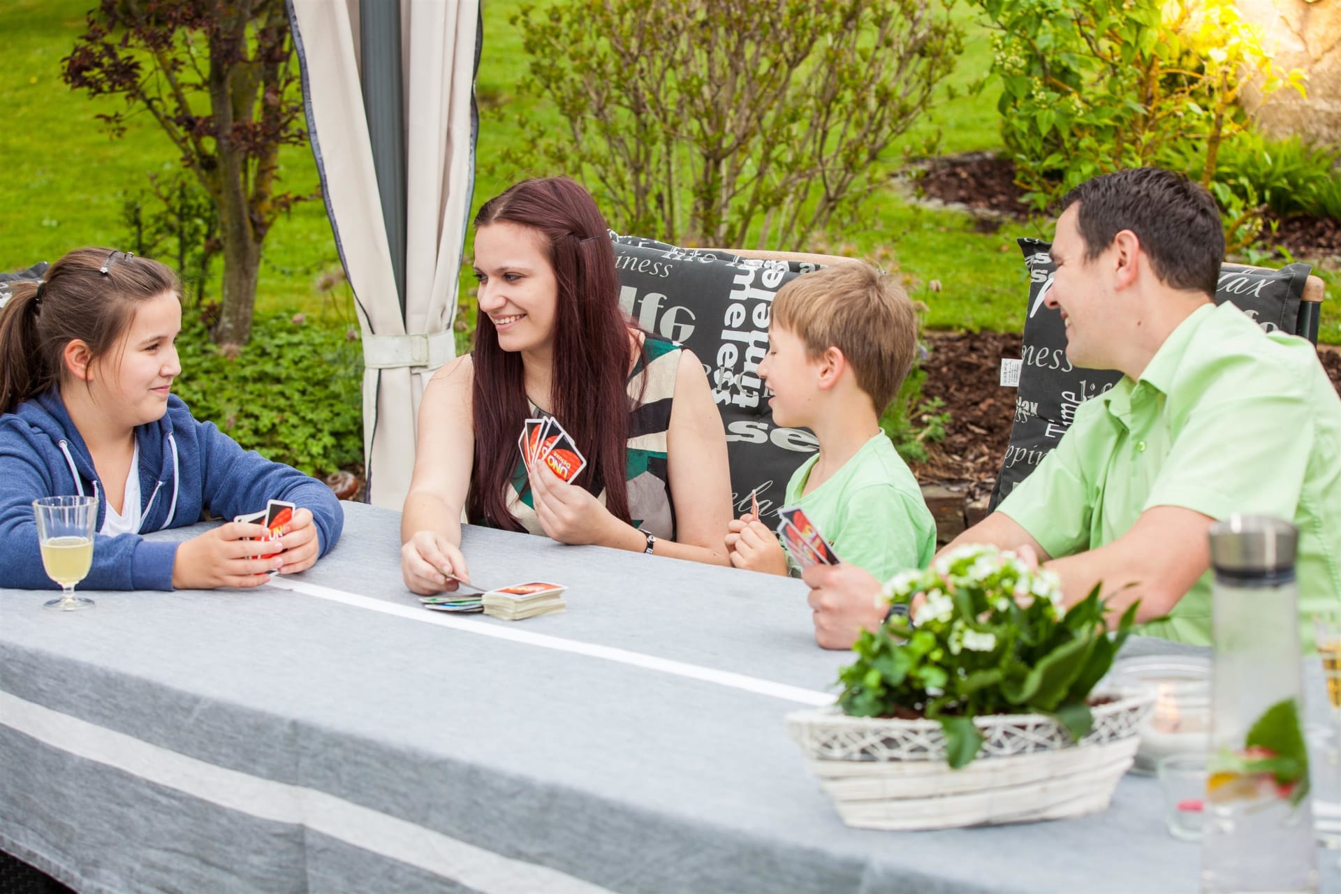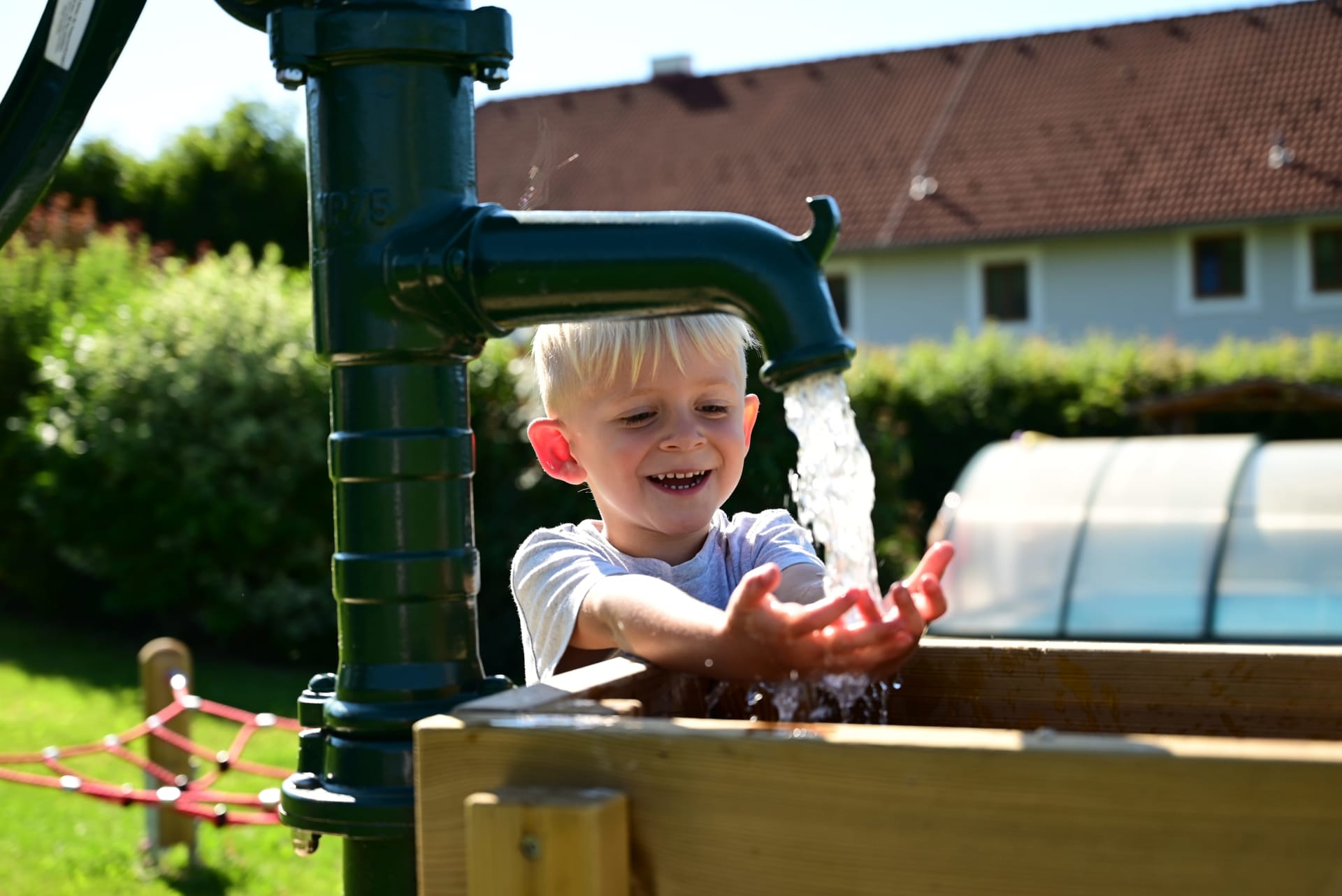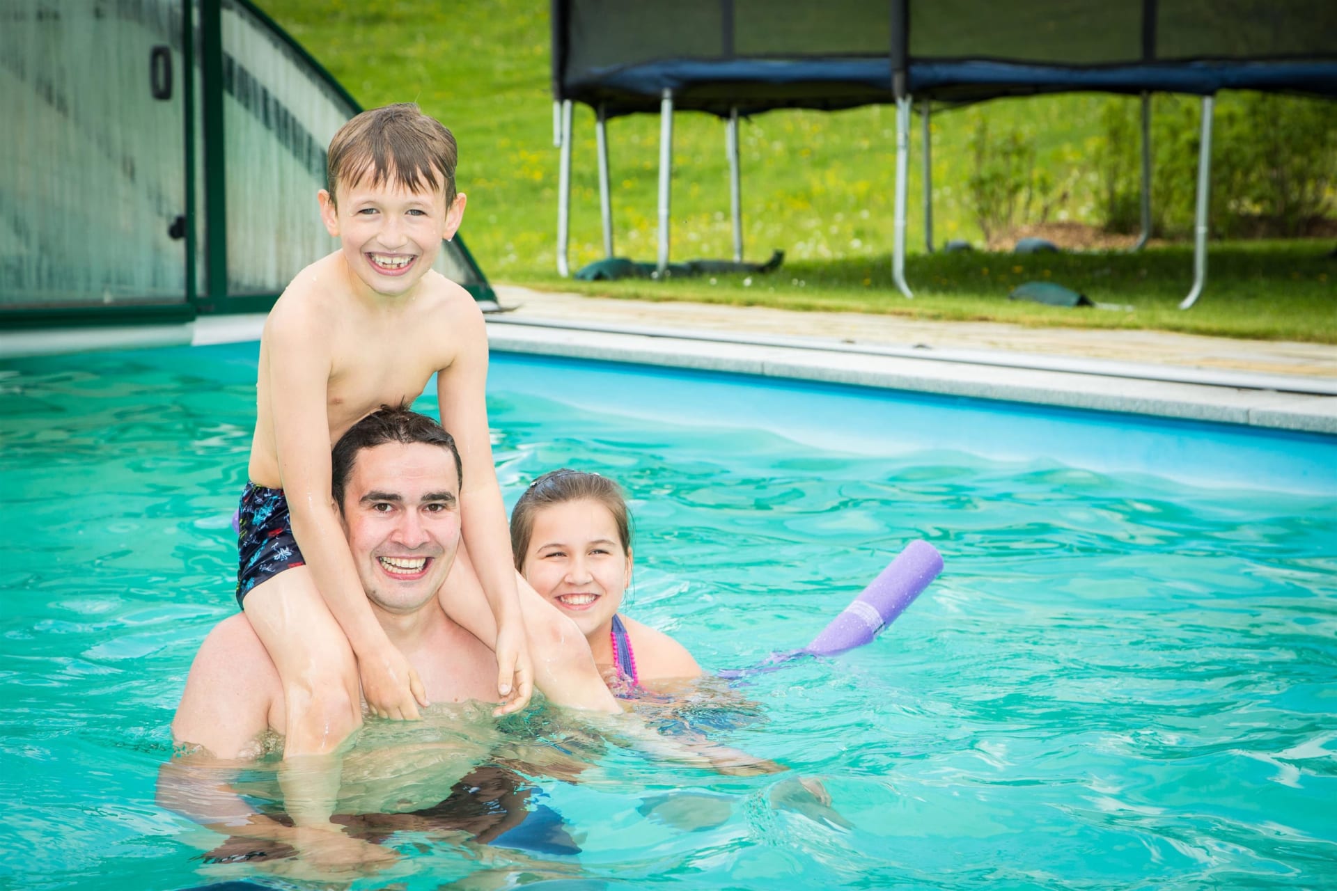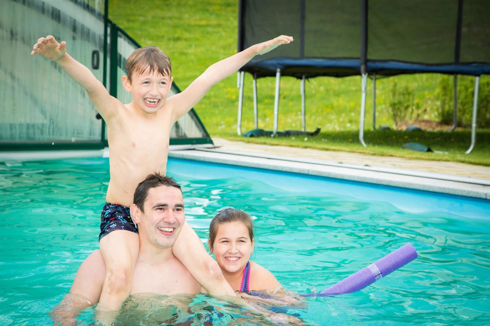 Ruhe, Auszeit und Entspannung - das finden unsere Gäste im großzügigen und gemütlich gestalteten Garten mit überdachtem Pool - ein richtiger Wohlfühlbereich! Für unsere kleinen Gäste stehen dort auch Spielgeräte wie beispielsweise ein Trampolin uvm. zur Verfügung. Spaziergänge in die nahegelegenen Wälder bieten ebenfalls die Möglichkeit, den Alltag hinter sich zu lassen und nur den sanften Klängen der Natur zu lauschen.
