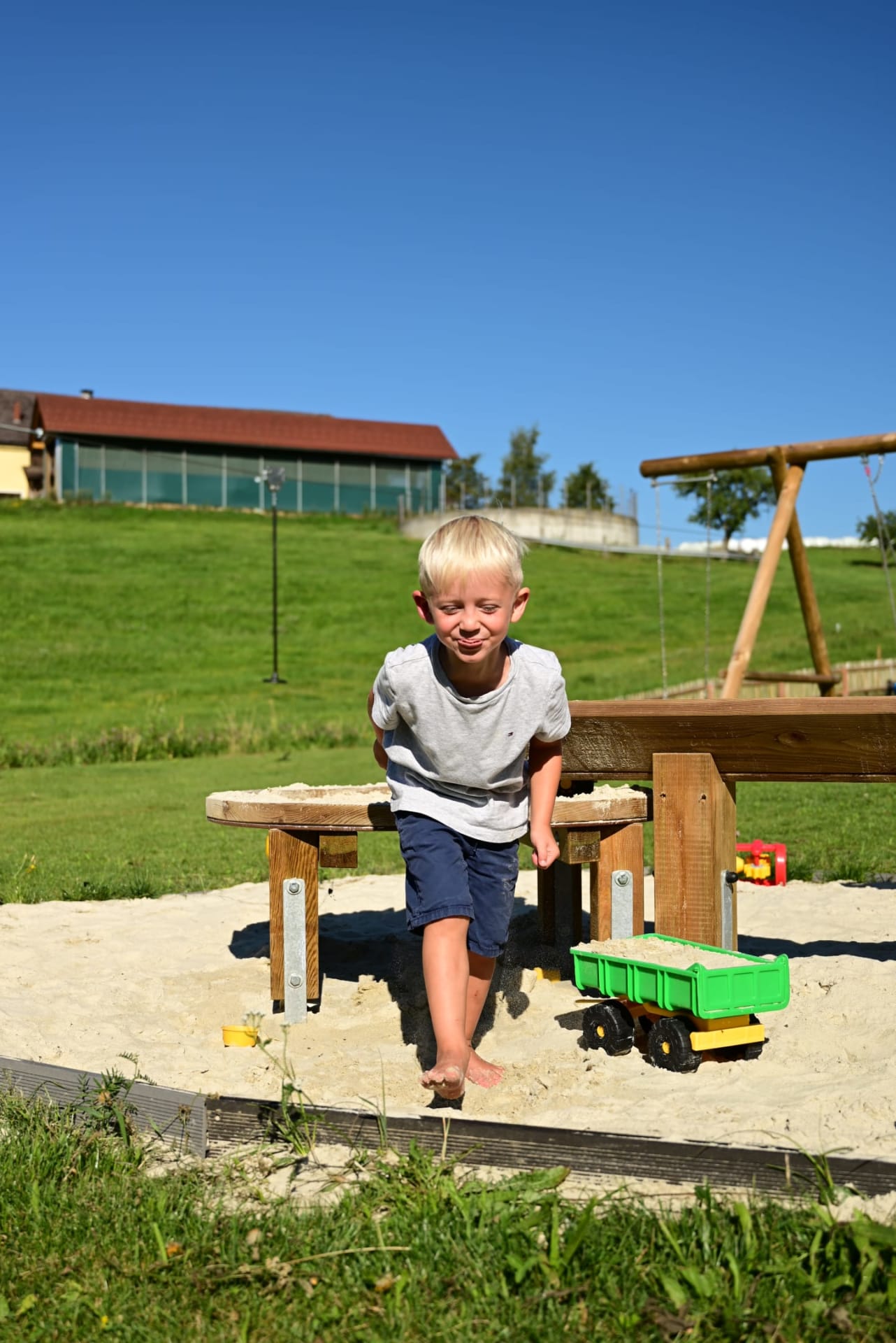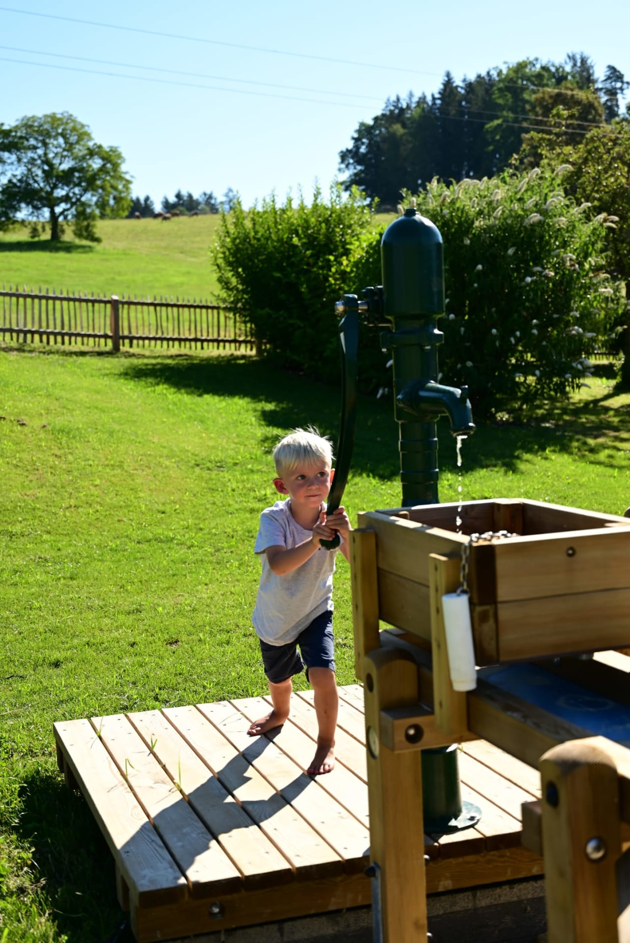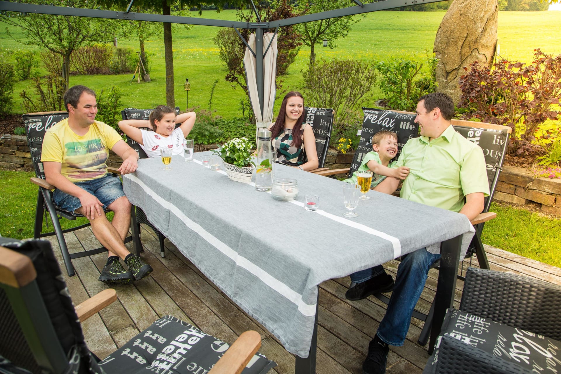 Ruhe, Auszeit und Entspannung - das finden unsere Gäste im großzügigen und gemütlich gestalteten Garten mit überdachtem Pool - ein richtiger Wohlfühlbereich! Für unsere kleinen Gäste stehen dort auch Spielgeräte wie beispielsweise ein Trampolin uvm. zur Verfügung. Spaziergänge in die nahegelegenen Wälder bieten ebenfalls die Möglichkeit, den Alltag hinter sich zu lassen und nur den sanften Klängen der Natur zu lauschen.