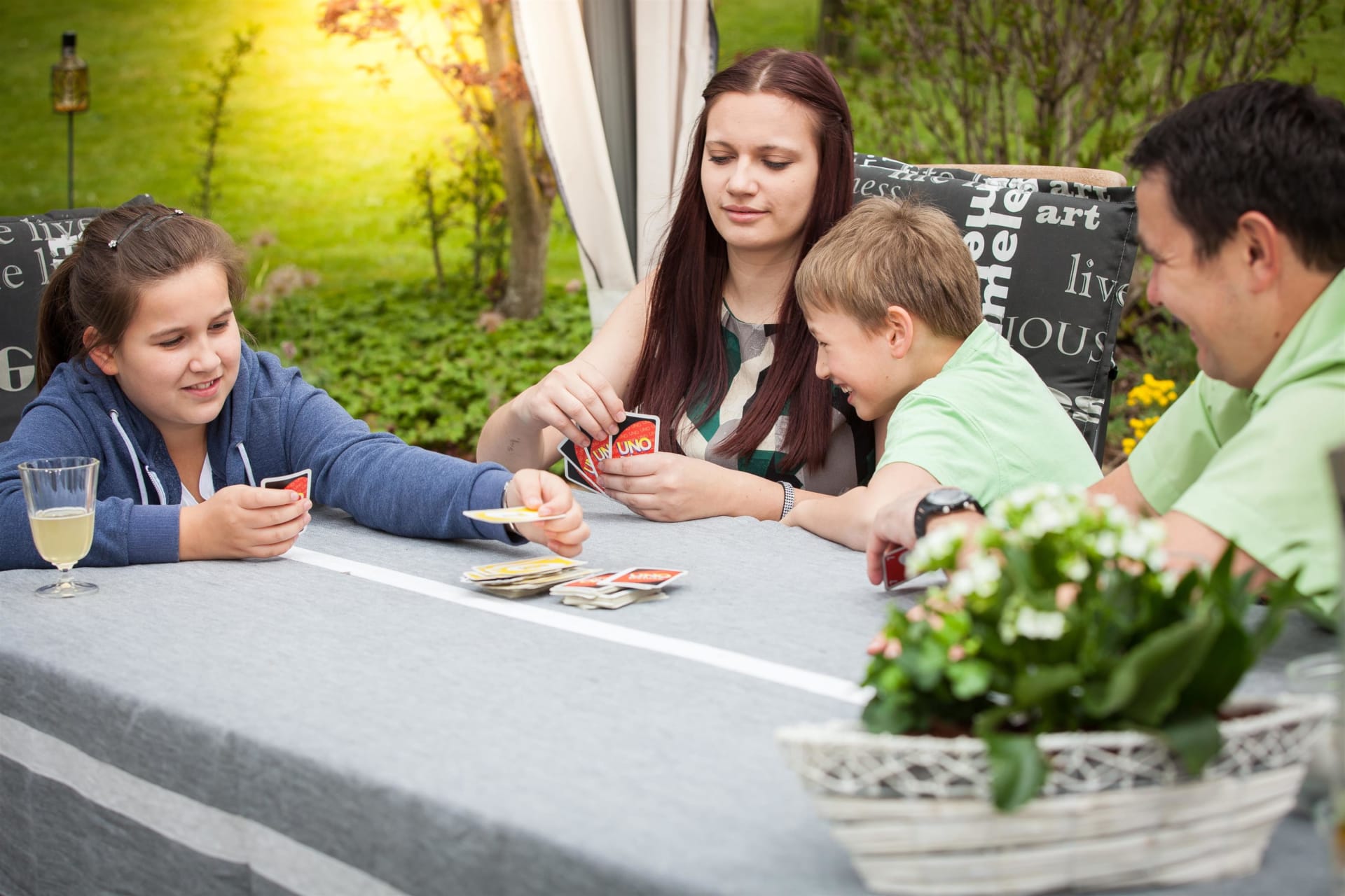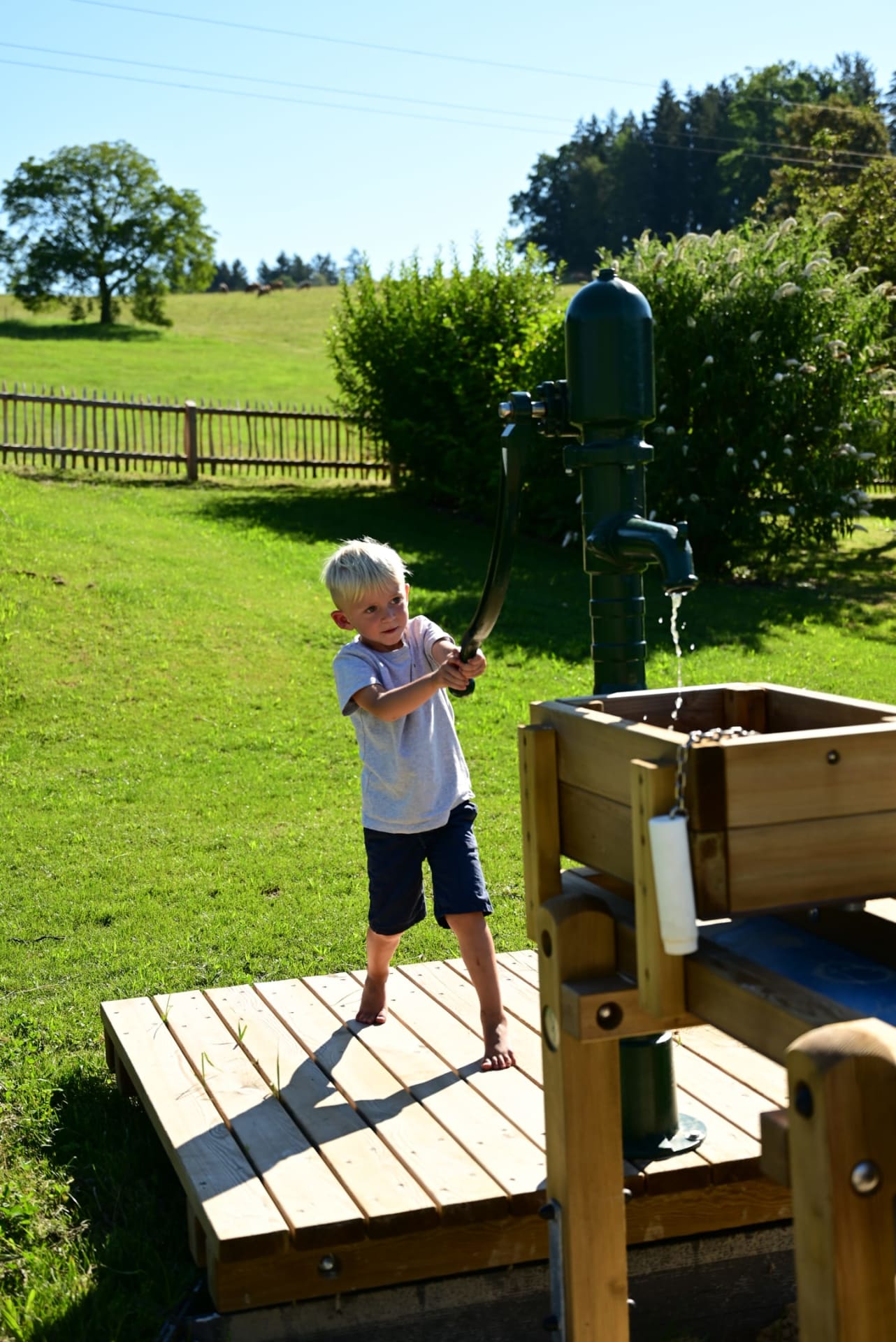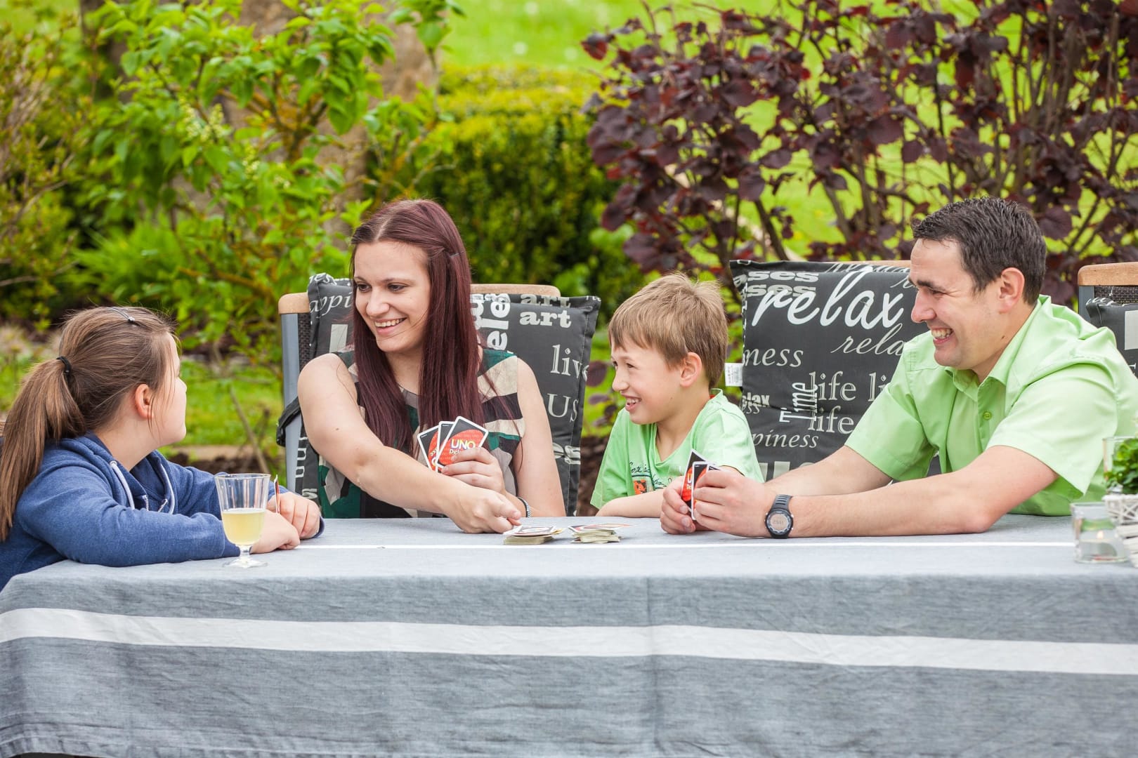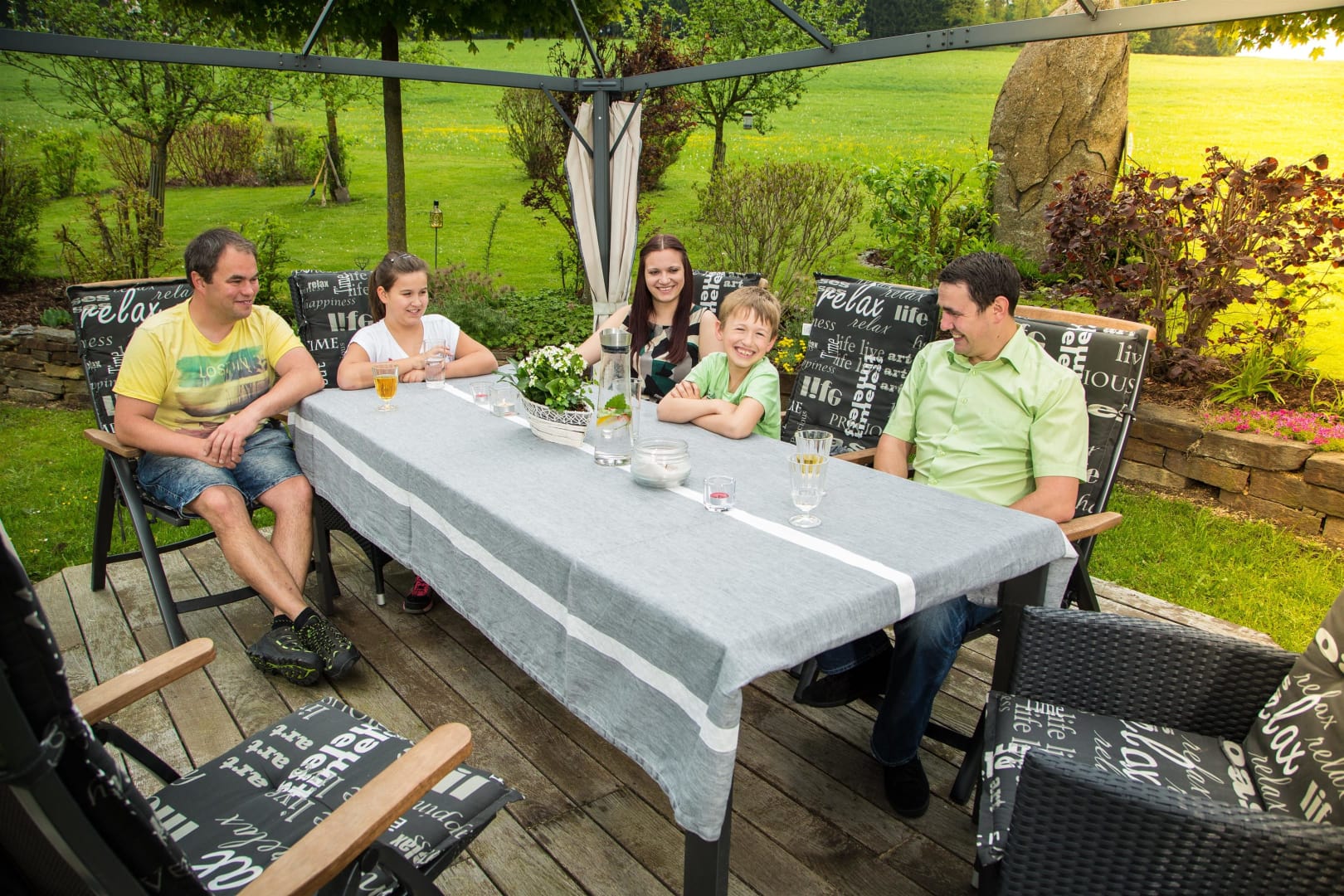 Ruhe, Auszeit und Entspannung - das finden unsere Gäste im großzügigen und gemütlich gestalteten Garten mit überdachtem Pool - ein richtiger Wohlfühlbereich! Für unsere kleinen Gäste stehen dort auch Spielgeräte wie beispielsweise ein Trampolin uvm. zur Verfügung. Spaziergänge in die nahegelegenen Wälder bieten ebenfalls die Möglichkeit, den Alltag hinter sich zu lassen und nur den sanften Klängen der Natur zu lauschen.
