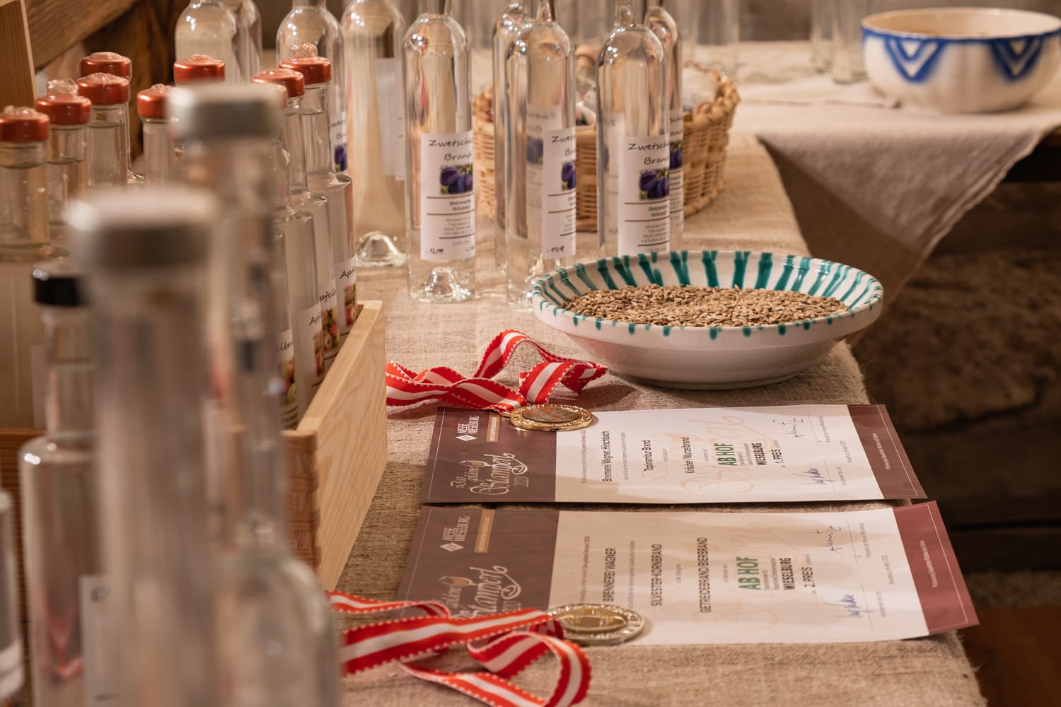 Auf unserem Bauernhof wartet gerne eine Schapsverkostung oder der Verkauf unserer Edelbrände auf Sie.