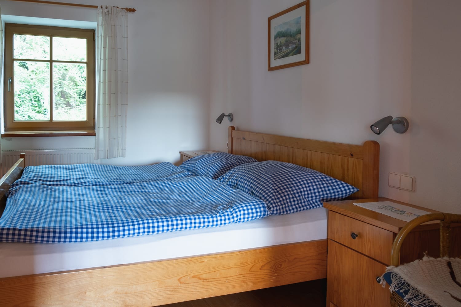 • 1 Schlafzimmer mit Doppelbett und Kinderbett