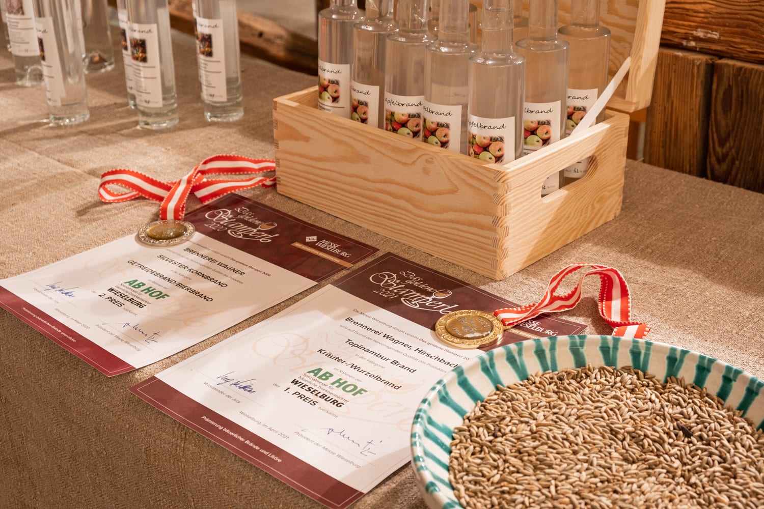 Auf unserem Bauernhof wartet gerne eine Schapsverkostung oder der Verkauf unserer Edelbrände auf Sie.