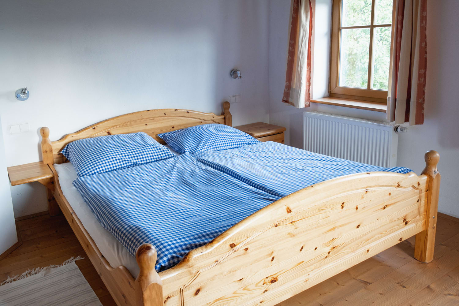 • Schlafzimmer mit Doppelbett und Kinderbett