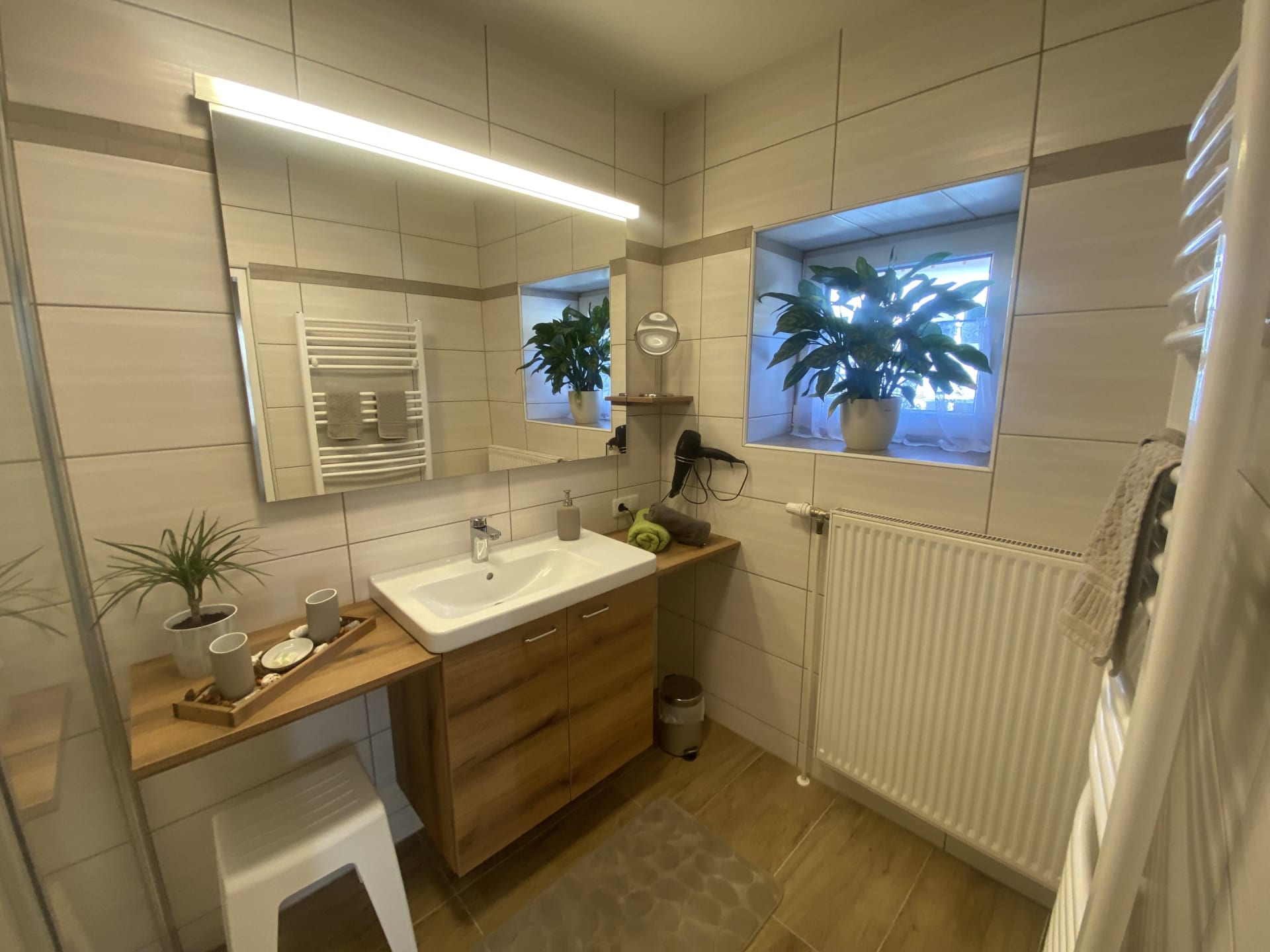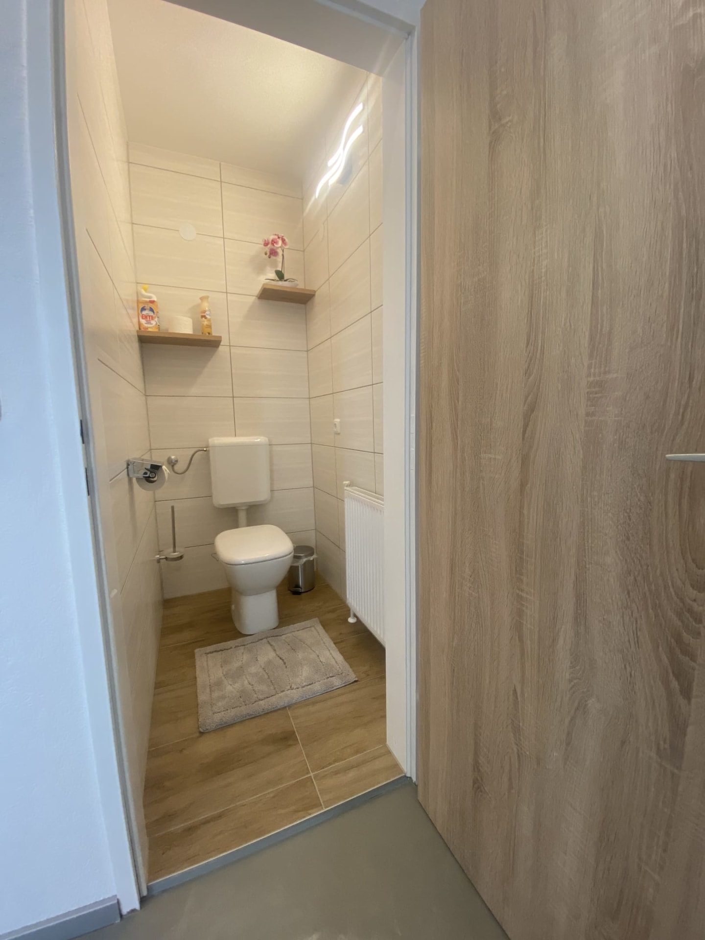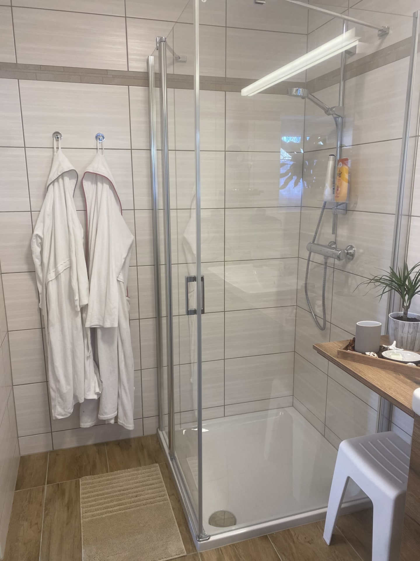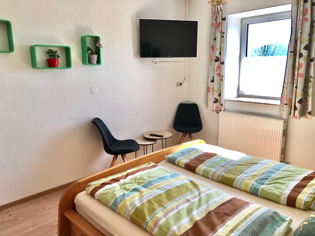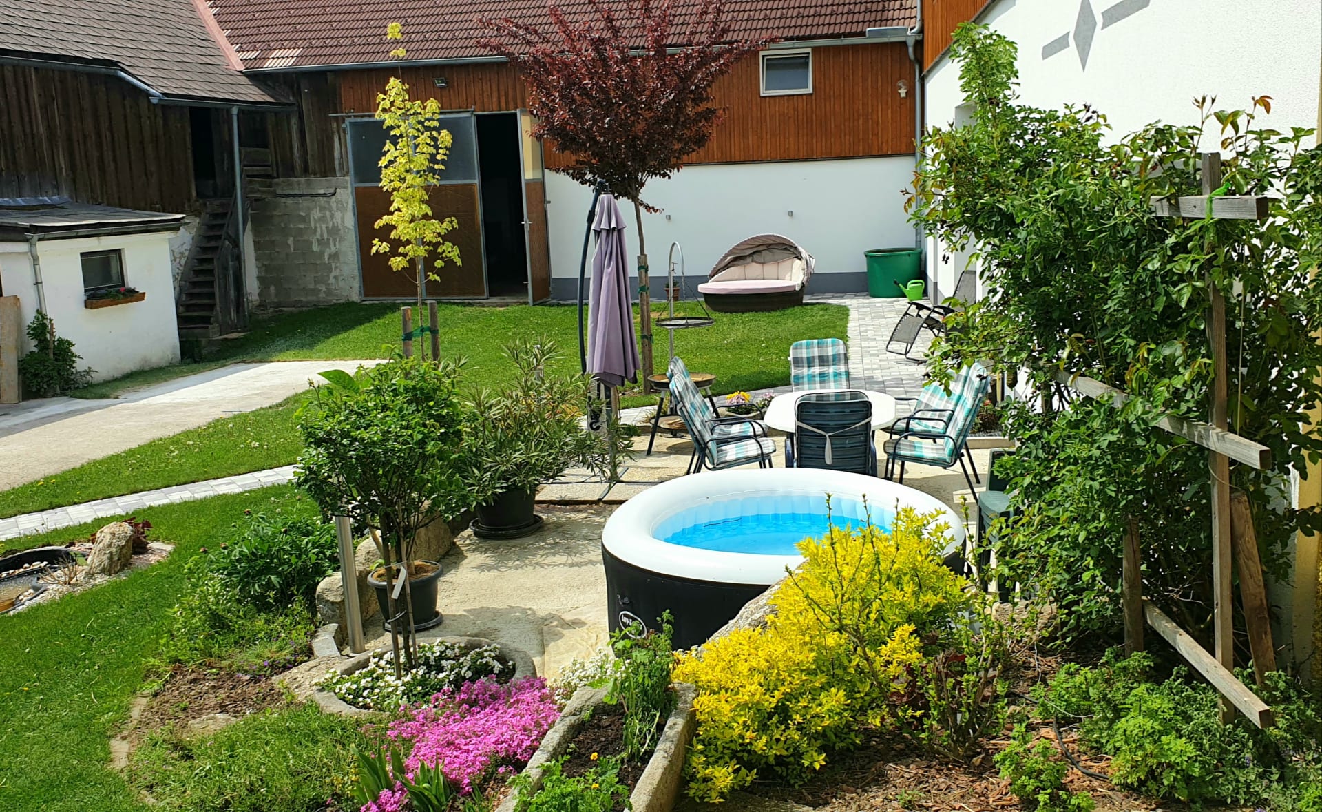 Wir bieten eine Ferienwohnung mit ca. 50 m² und eigenem Eingang. Dazu gehört eine komplett eingerichtete Küche, ein Schlafzimmer mit Doppelbett und Fernseher, WC, Bad und ein nettes Vorhaus. W-Lan ist auch dabei.